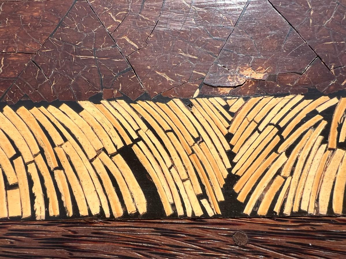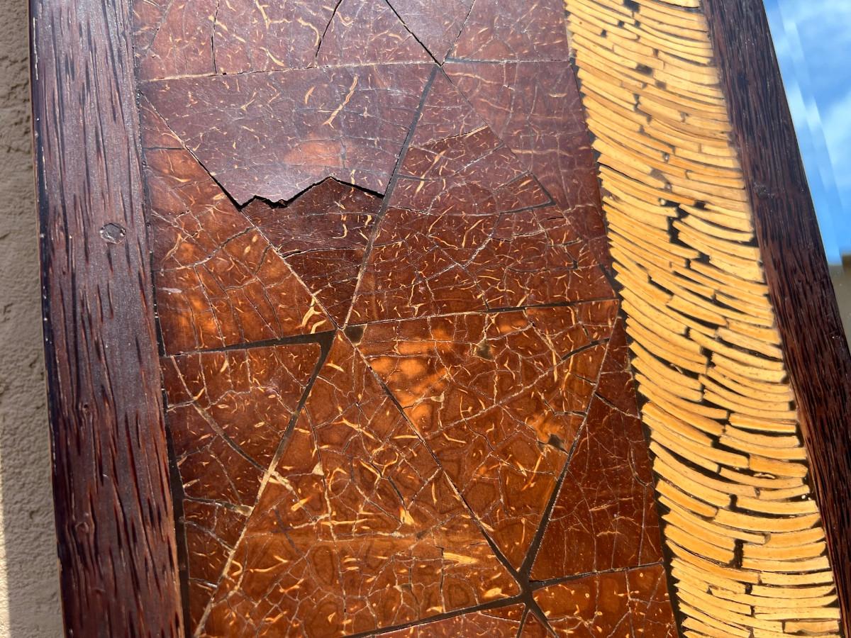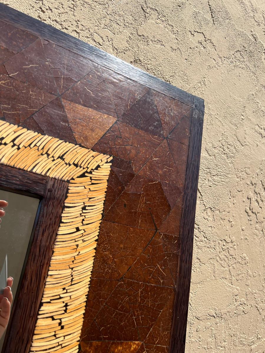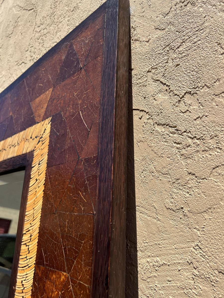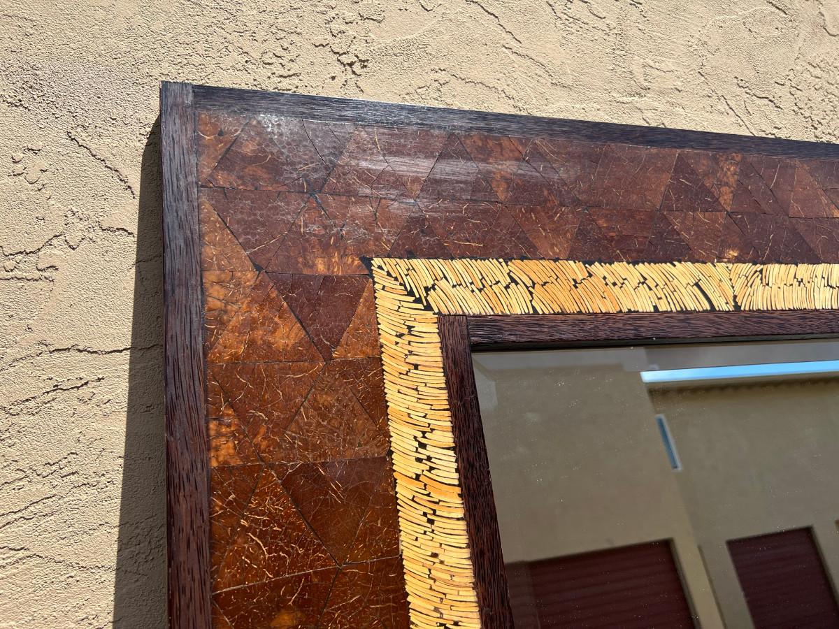 Rectangular mirror with interesting frame. 39" tall x 79" wide by 1" thick. Must bring help to load this item