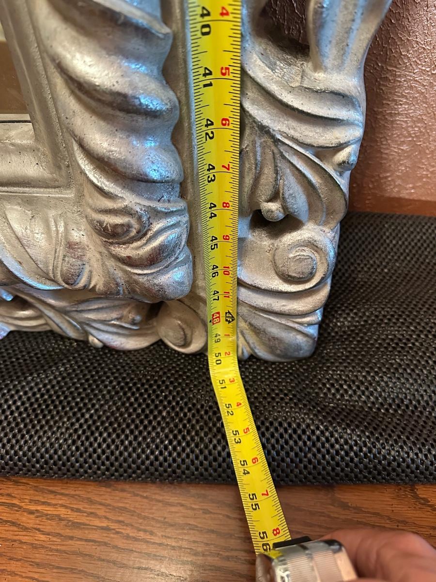 Large 5 foot mirror with ornate brushed silver frame