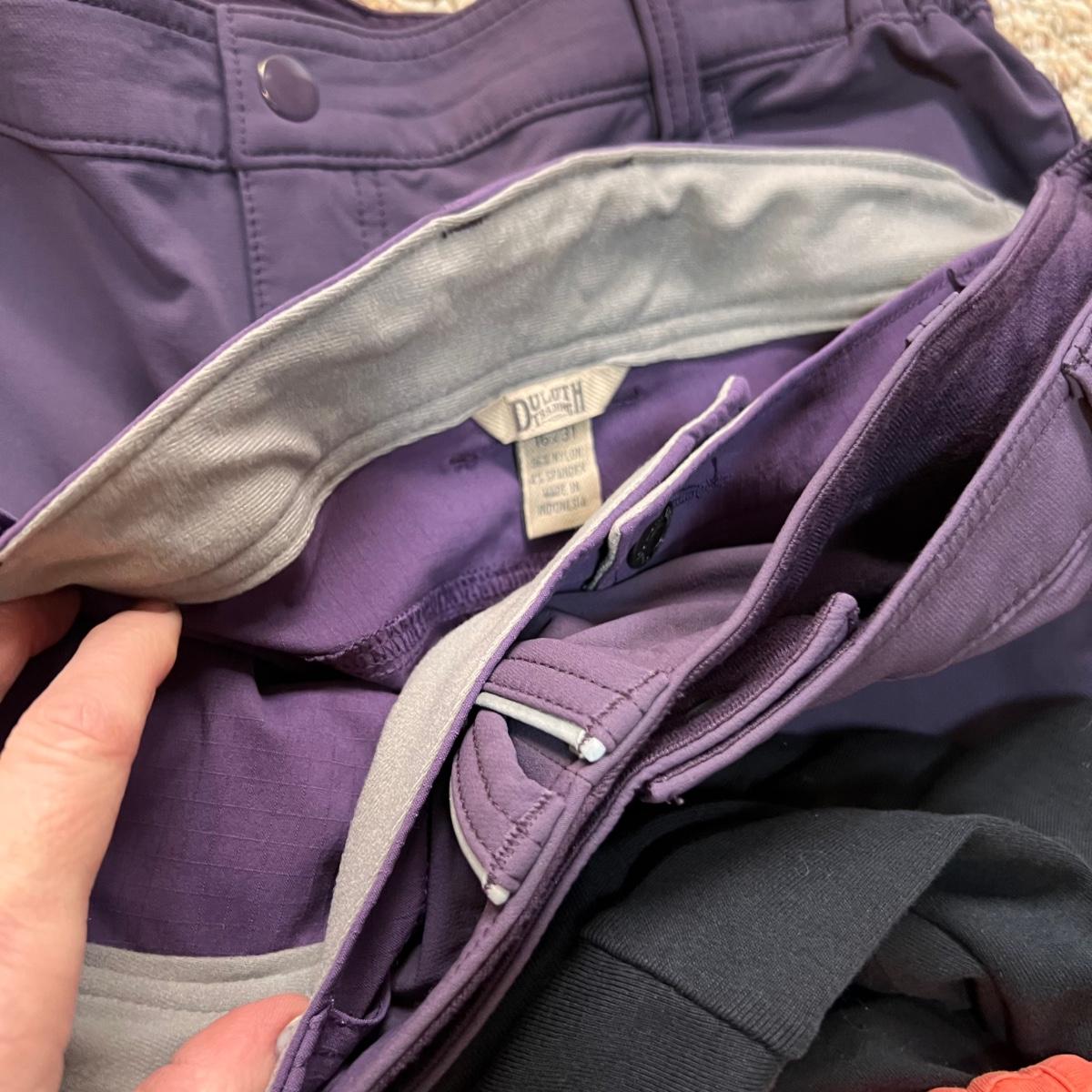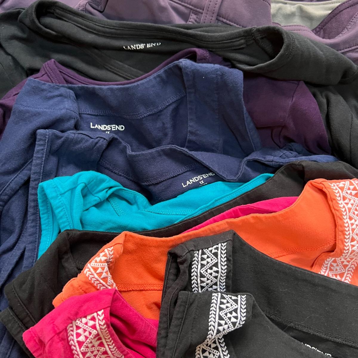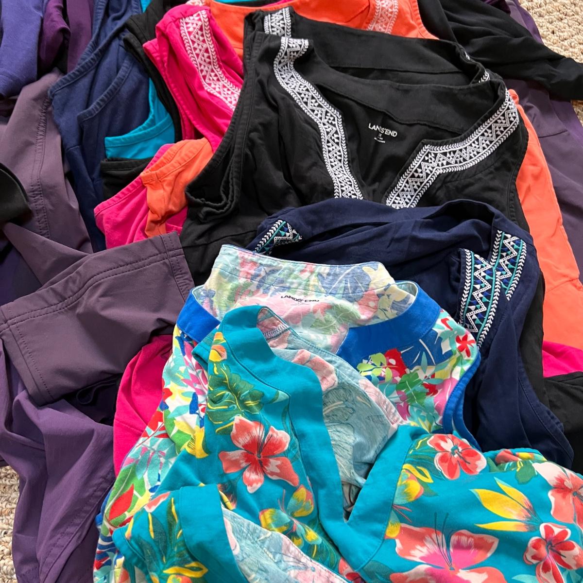 Mixed lot includes pants tops dresses Duluth Trading Lands End and other brands. In good gently worn condition.