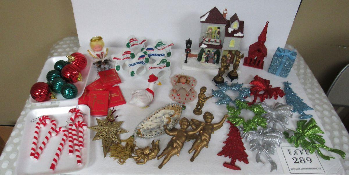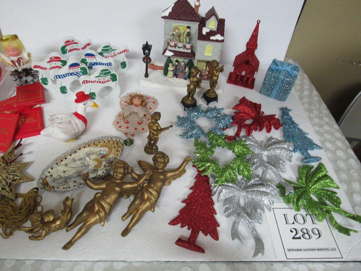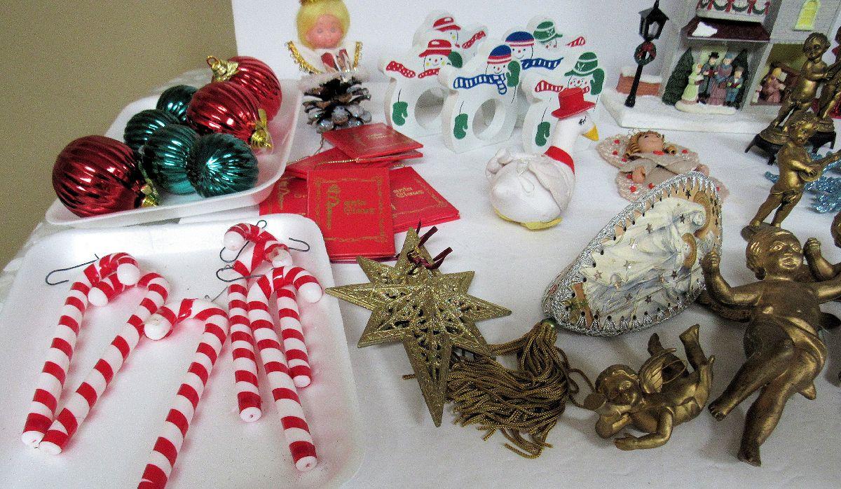 Napkin rings, ornaments, angels, lighted plaque. Good used shape. Shipping is available at shipping cost plus $5.00 handling fee on one box, $10.00 handling fee on two boxes, $15.00 handling fee on 3 boxes. Helps cover shipping materials and labor cost.
