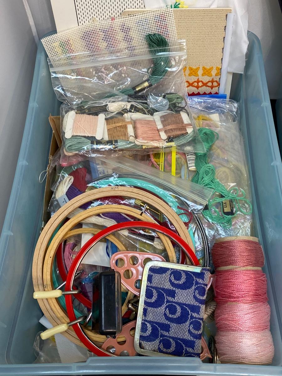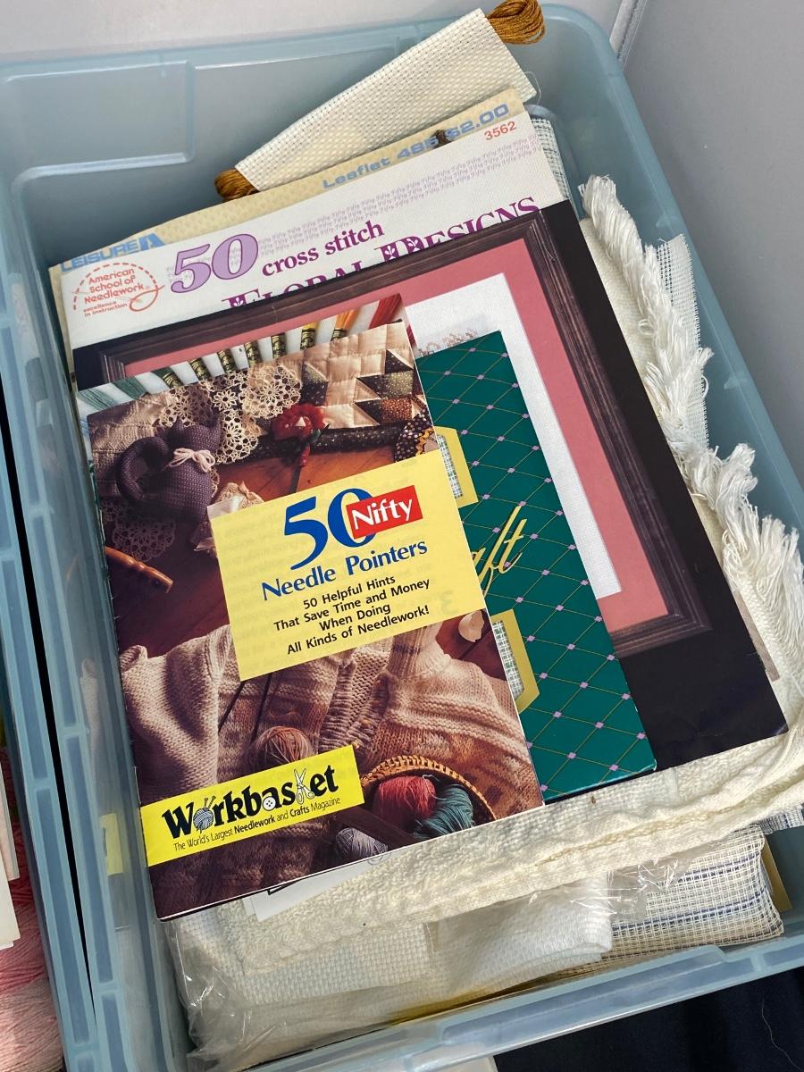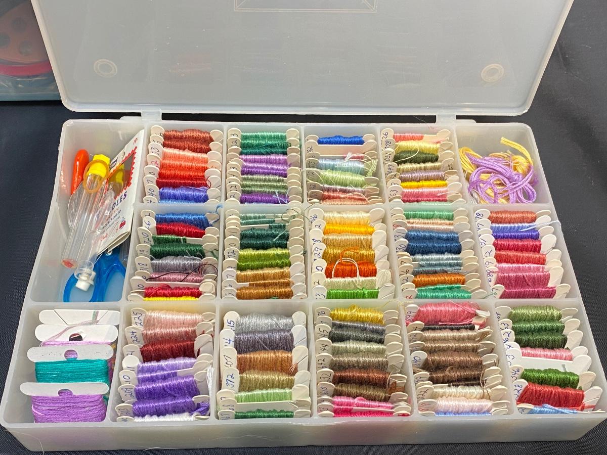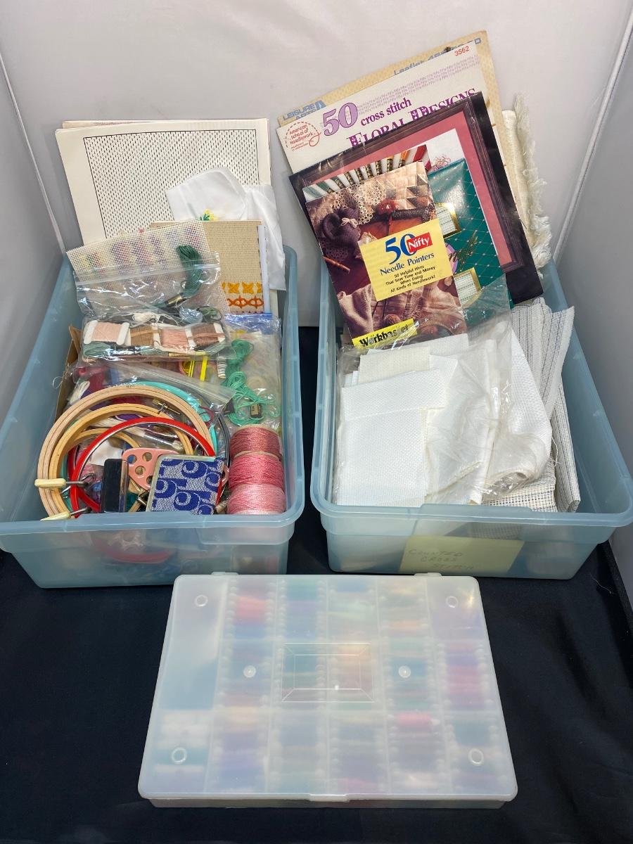 Large lot of cross stitch supplies and accessories. Everything shown included in lot. Good condition.