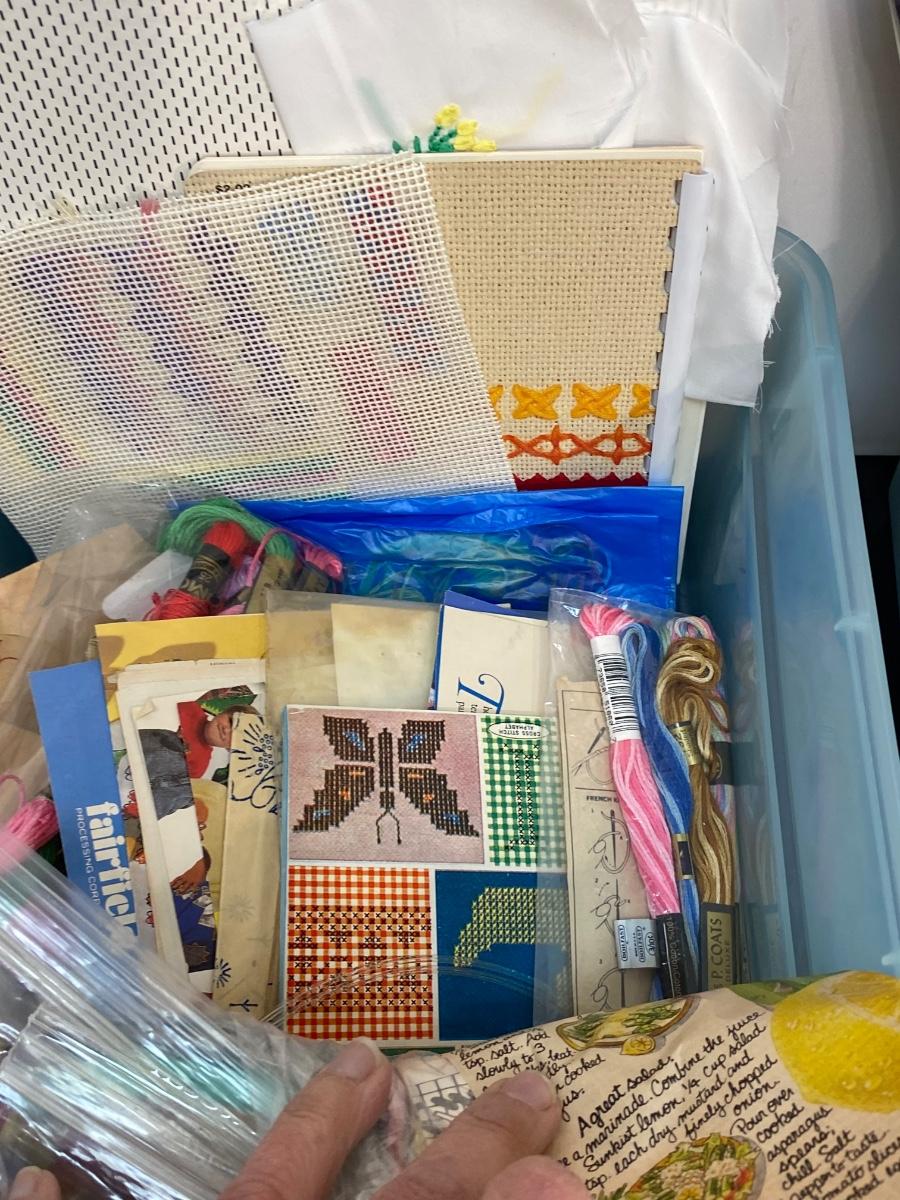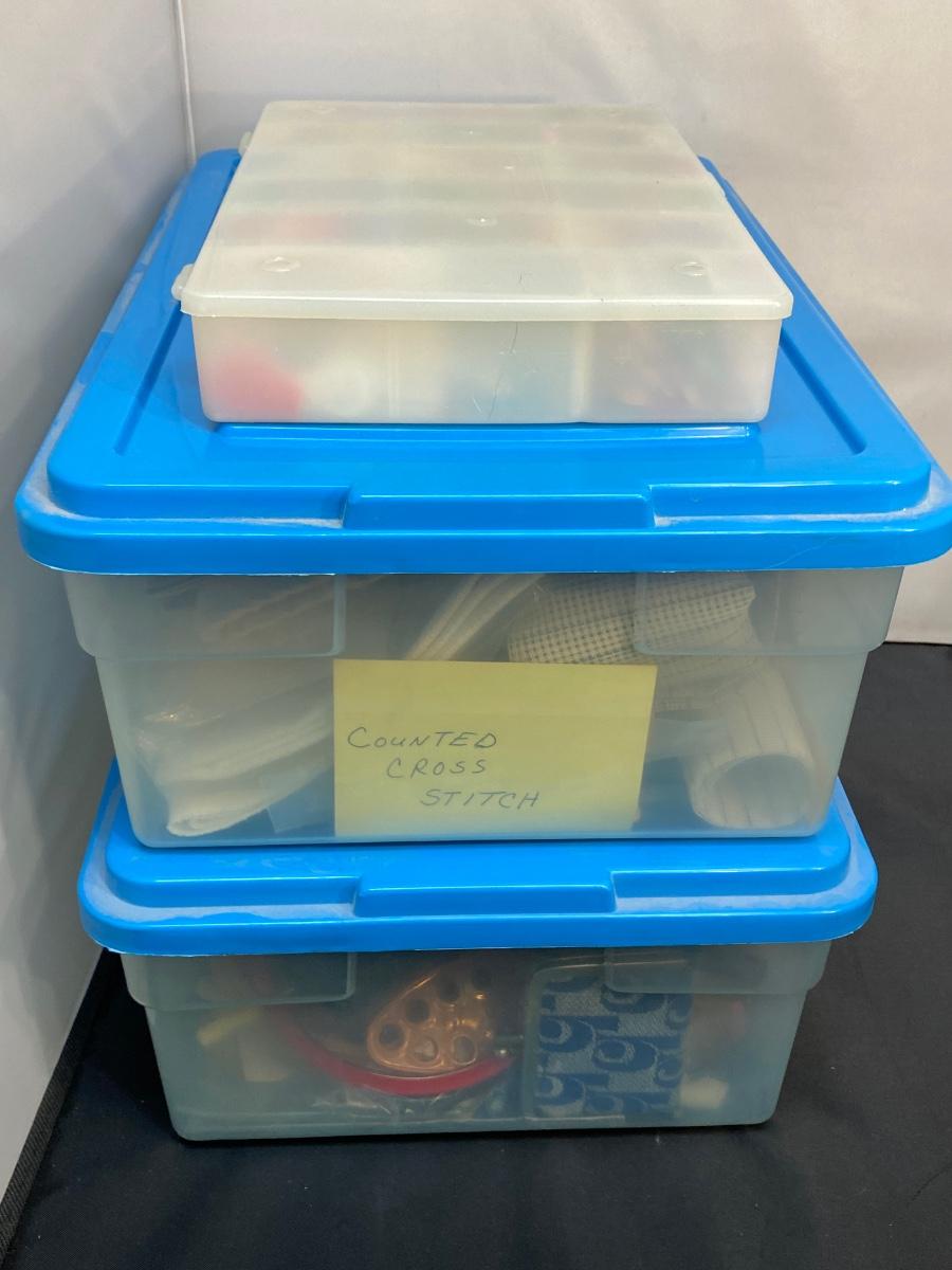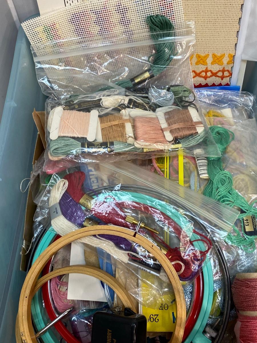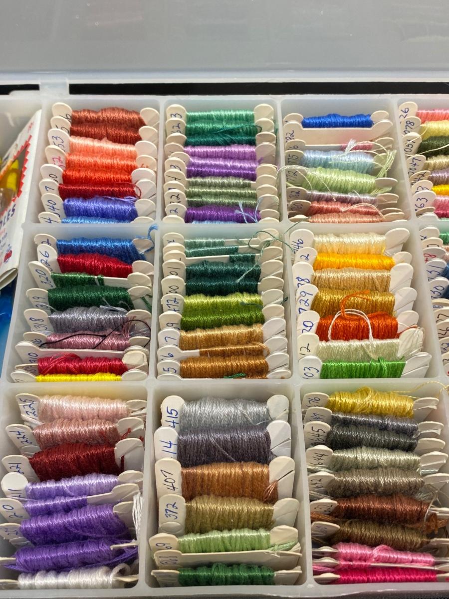 Large lot of cross stitch supplies and accessories. Everything shown included in lot. Good condition.