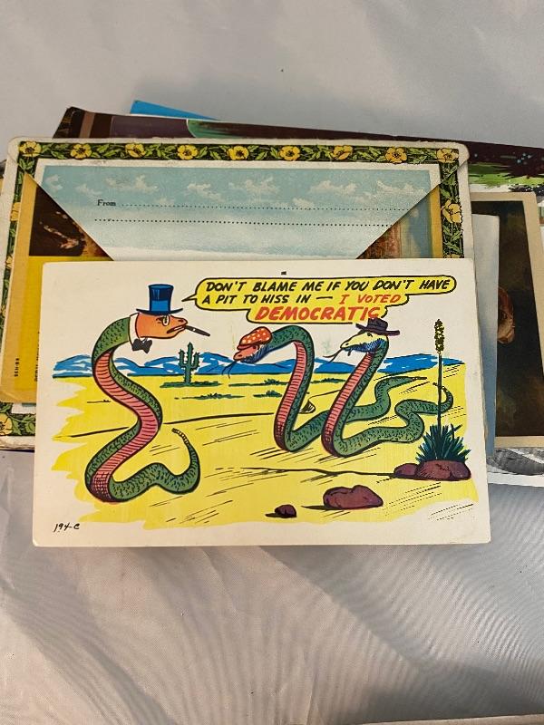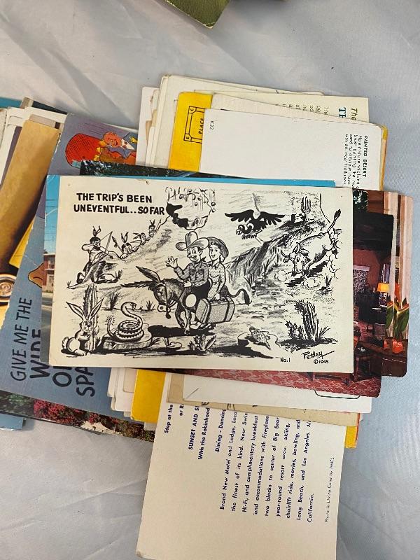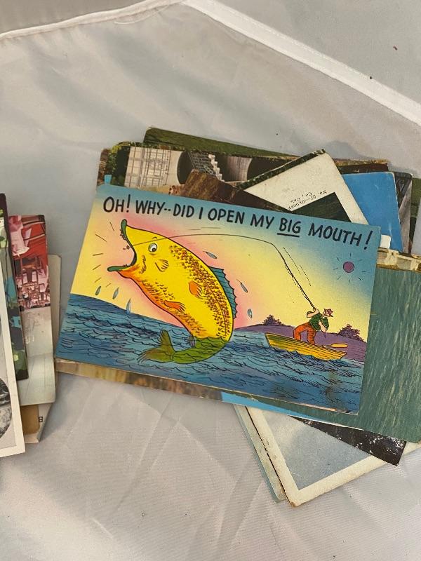 Mixed lot of Vintage Postcards. Some are written on, some are not. All kinds of styles and places.