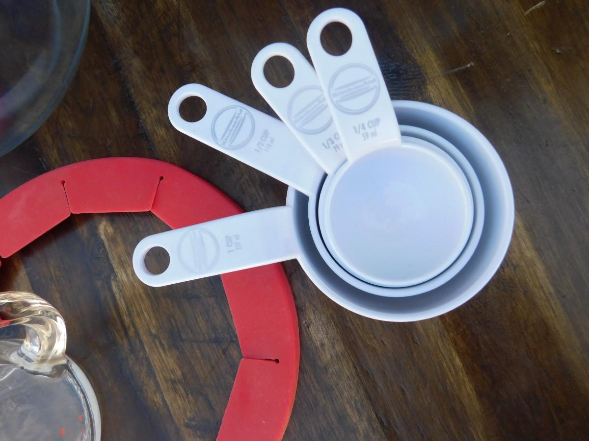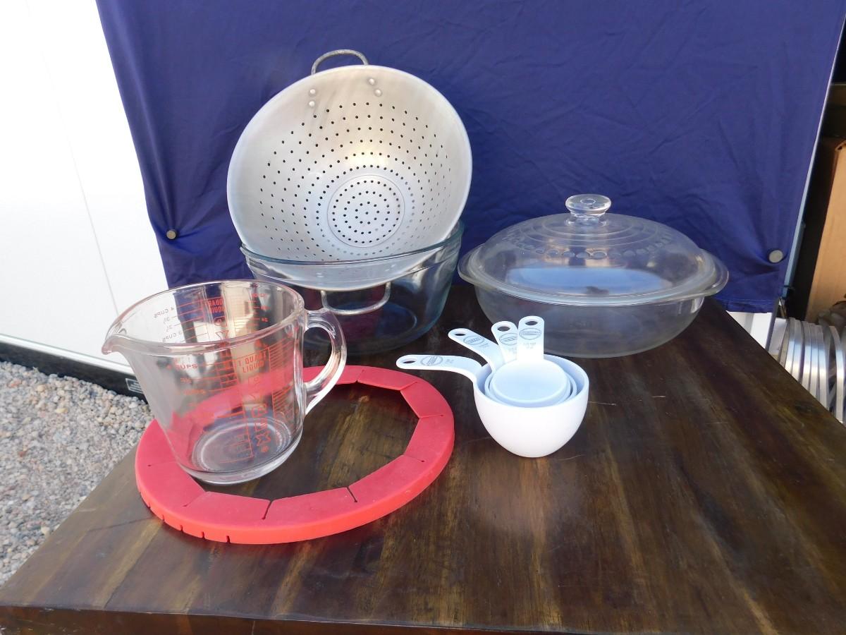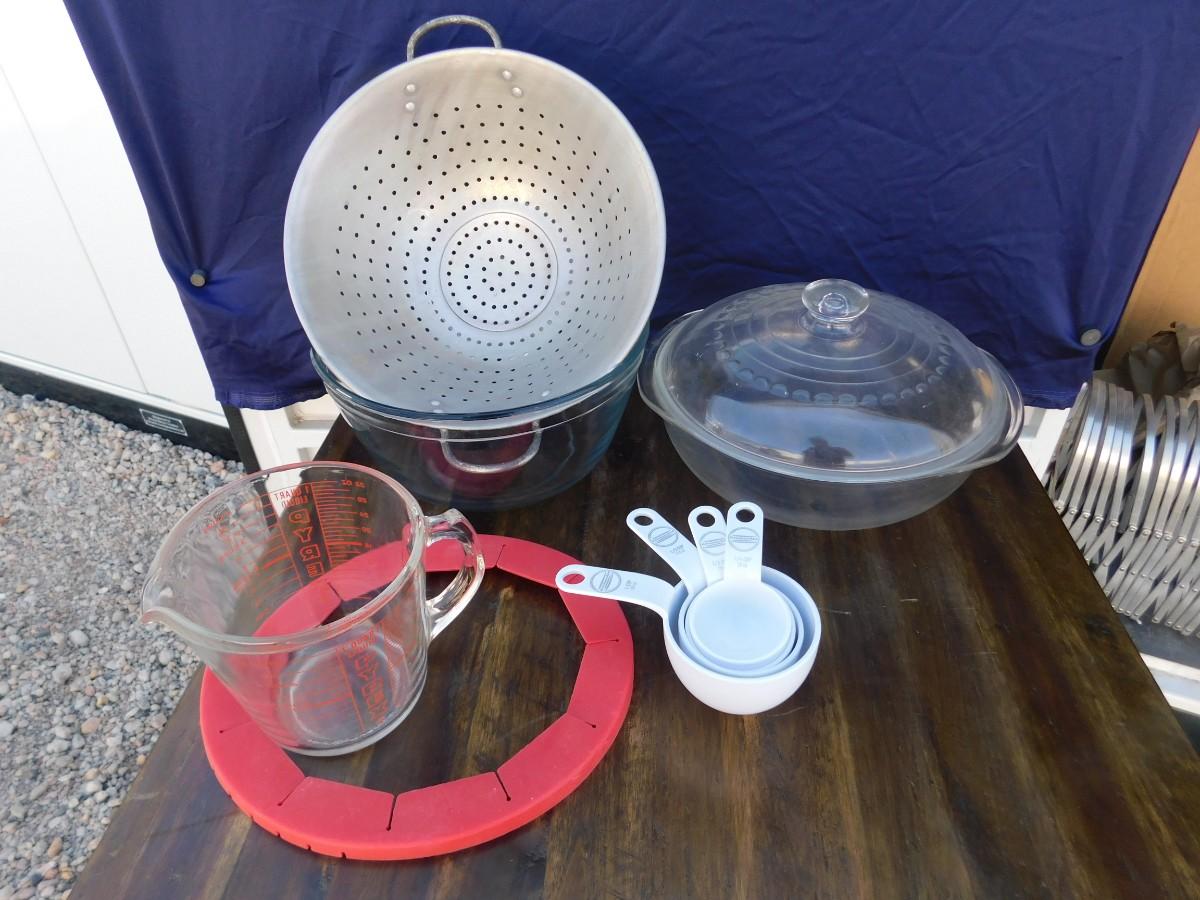 ˜ƒLARGE MIXING BOWL, SILICON PIE CRUST COVER, LIQUID MEASURING AND DRY CUPS, AND MORE