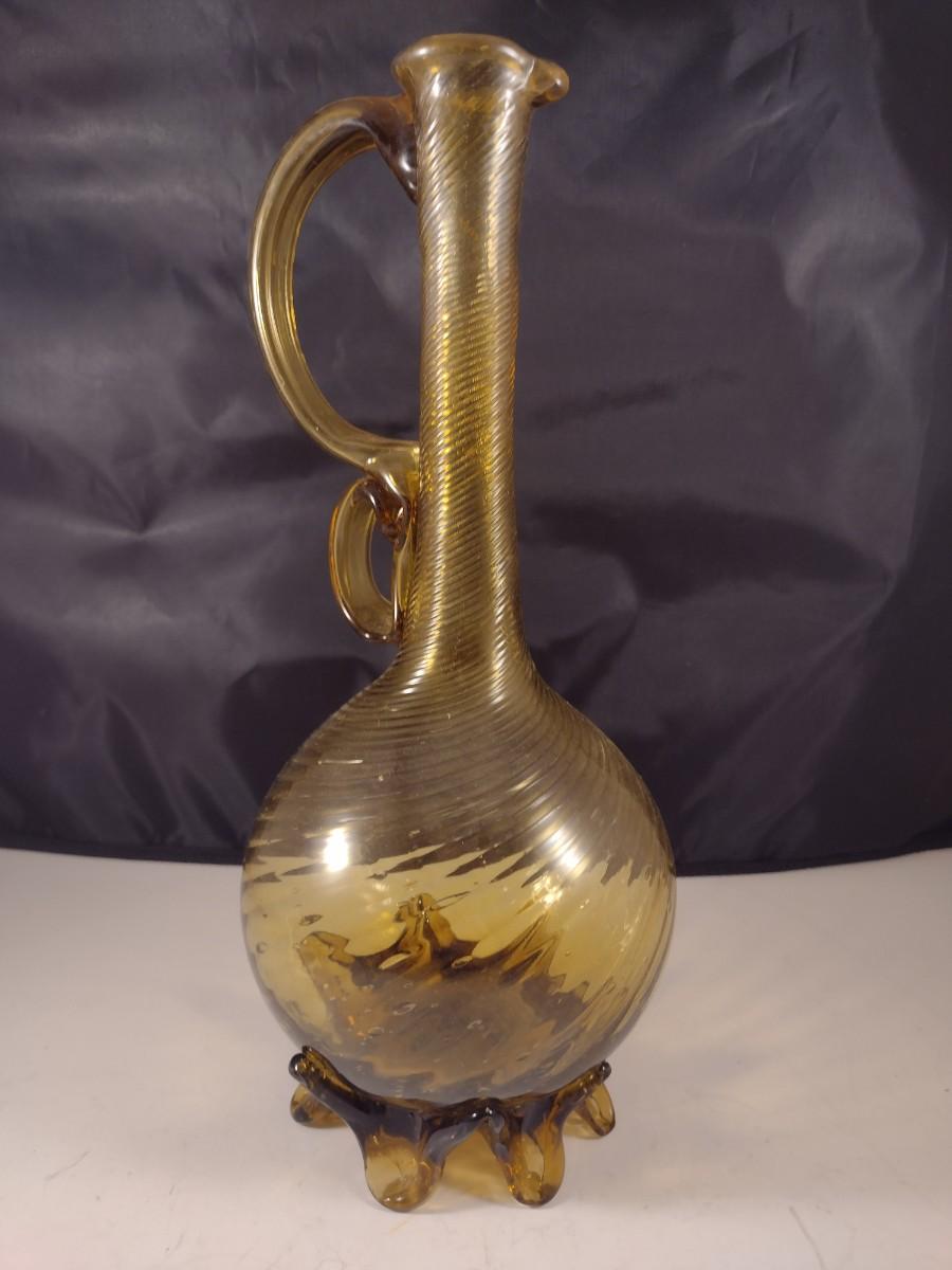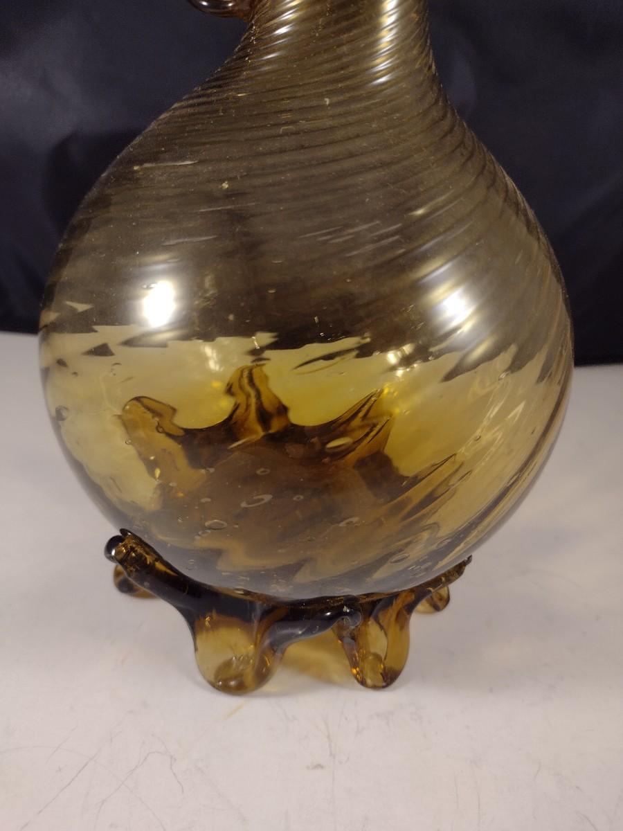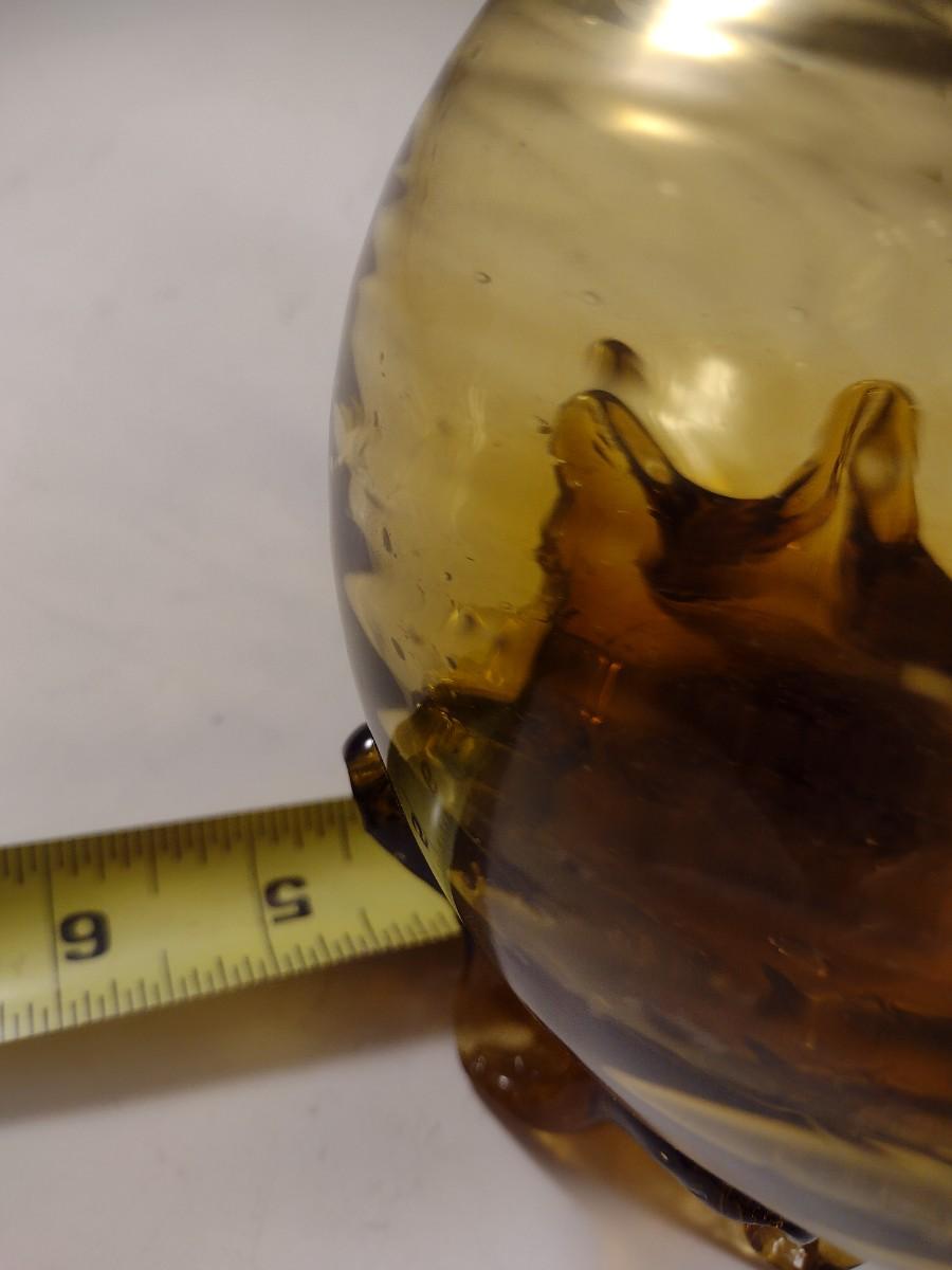 Large Mouth Blown Amber Swirl Glass Long Neck Footed Vessel California Artist