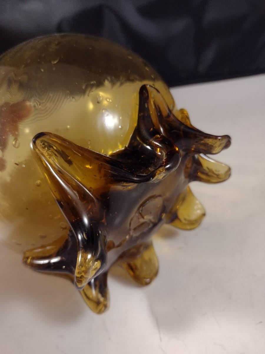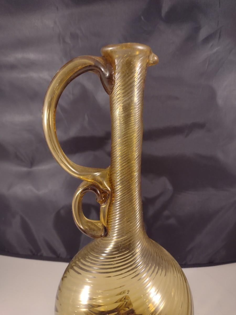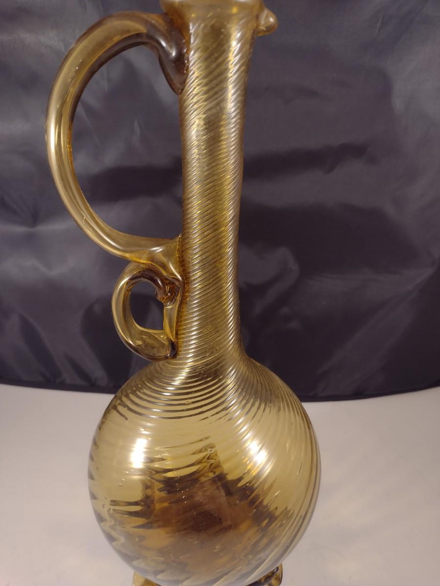 Large Mouth Blown Amber Swirl Glass Long Neck Footed Vessel California Artist