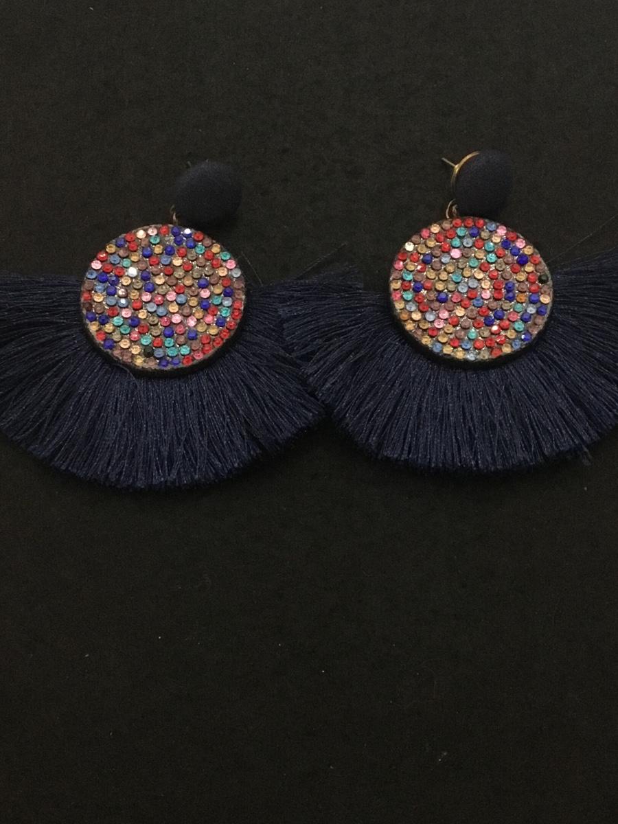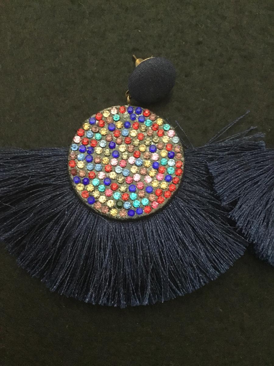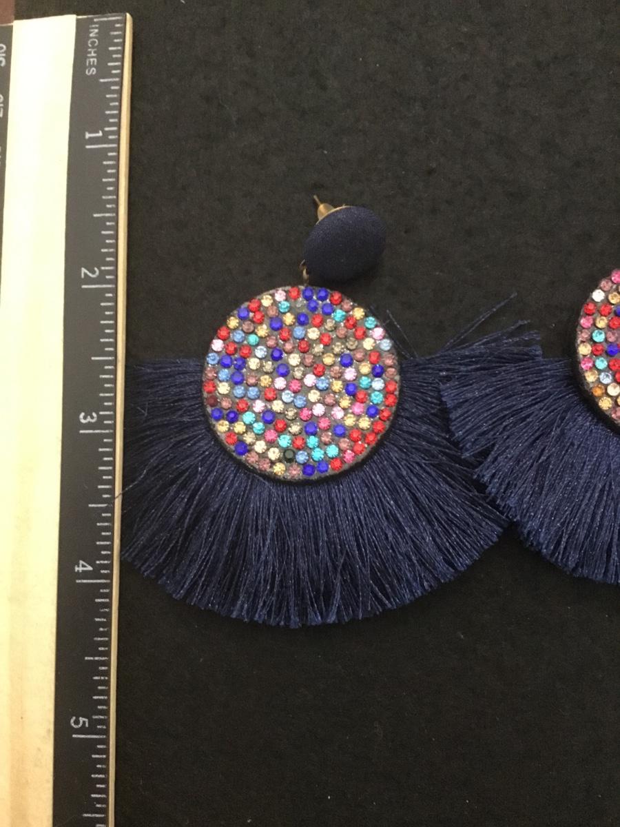 Large, multi colored rhinestone and tassel Fashion stud earrings