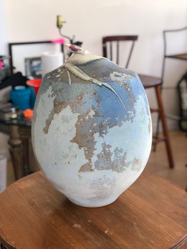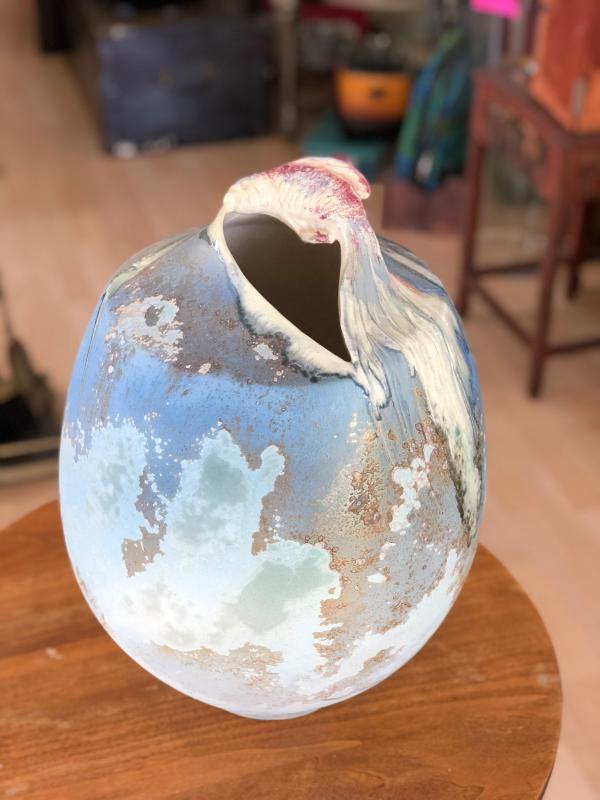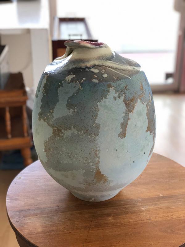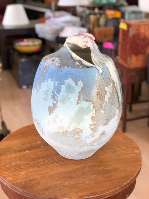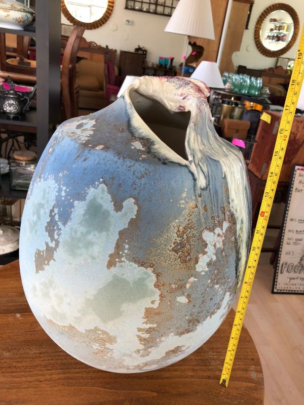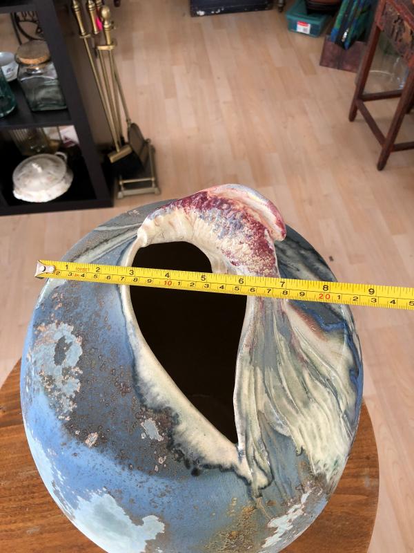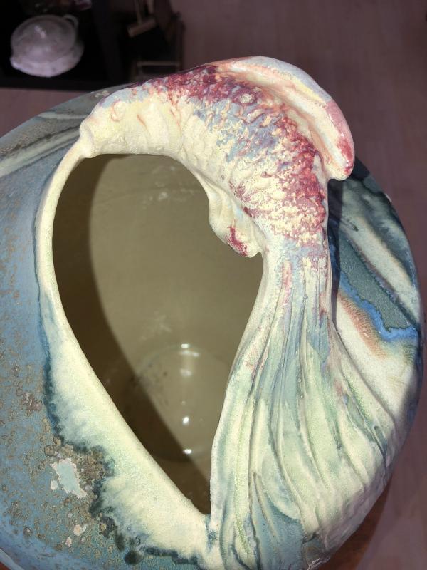 Large Multi-Colored Blue Vase with Fish at Top LOCAL PICK UP ONLY (Item 1024)