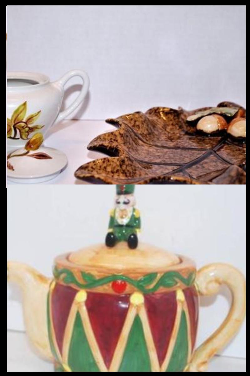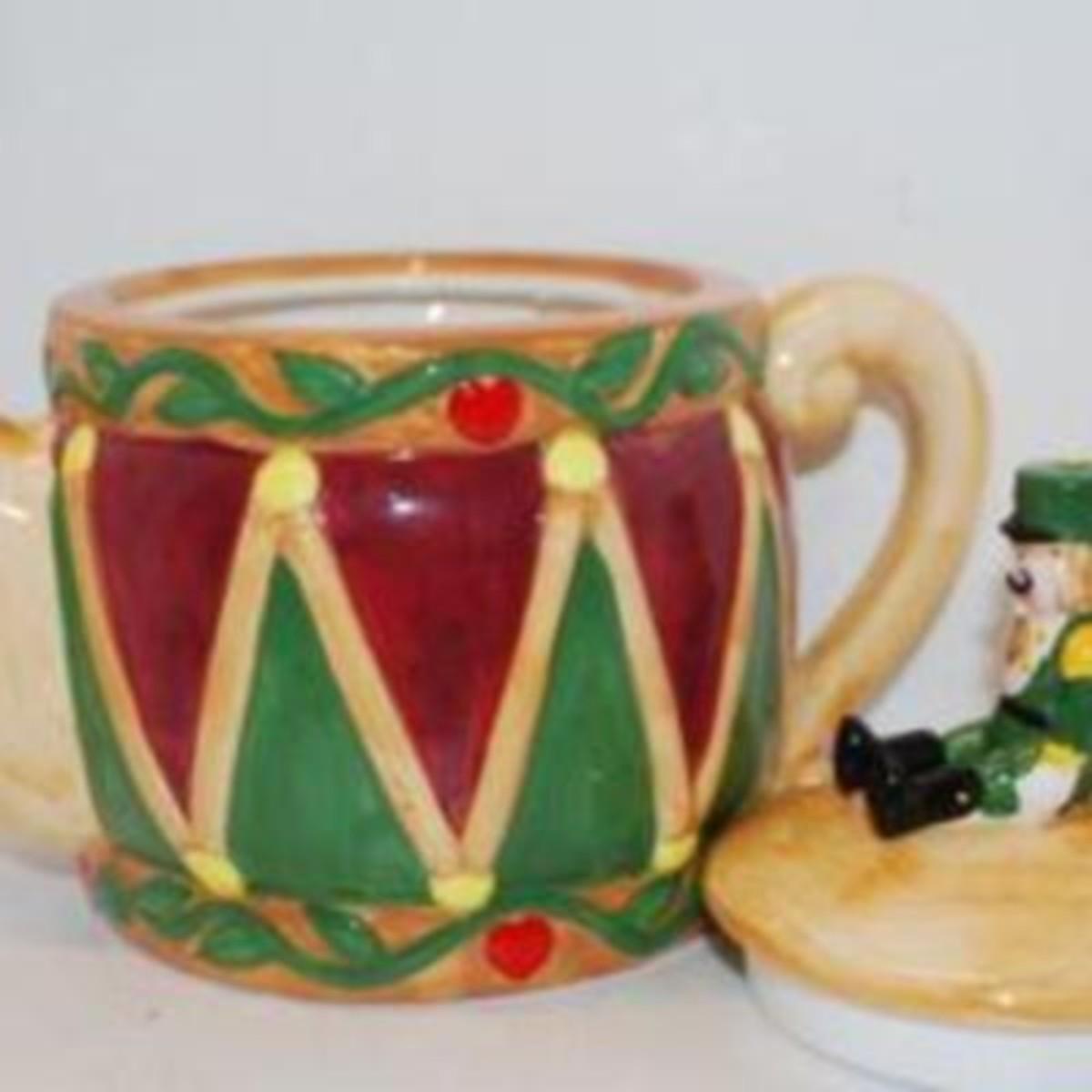 Large "Mustached Nutcracker" Colorful Tea Pot 6" H & Acorn Dish and Tea Pot - Total 3 Pcs.
