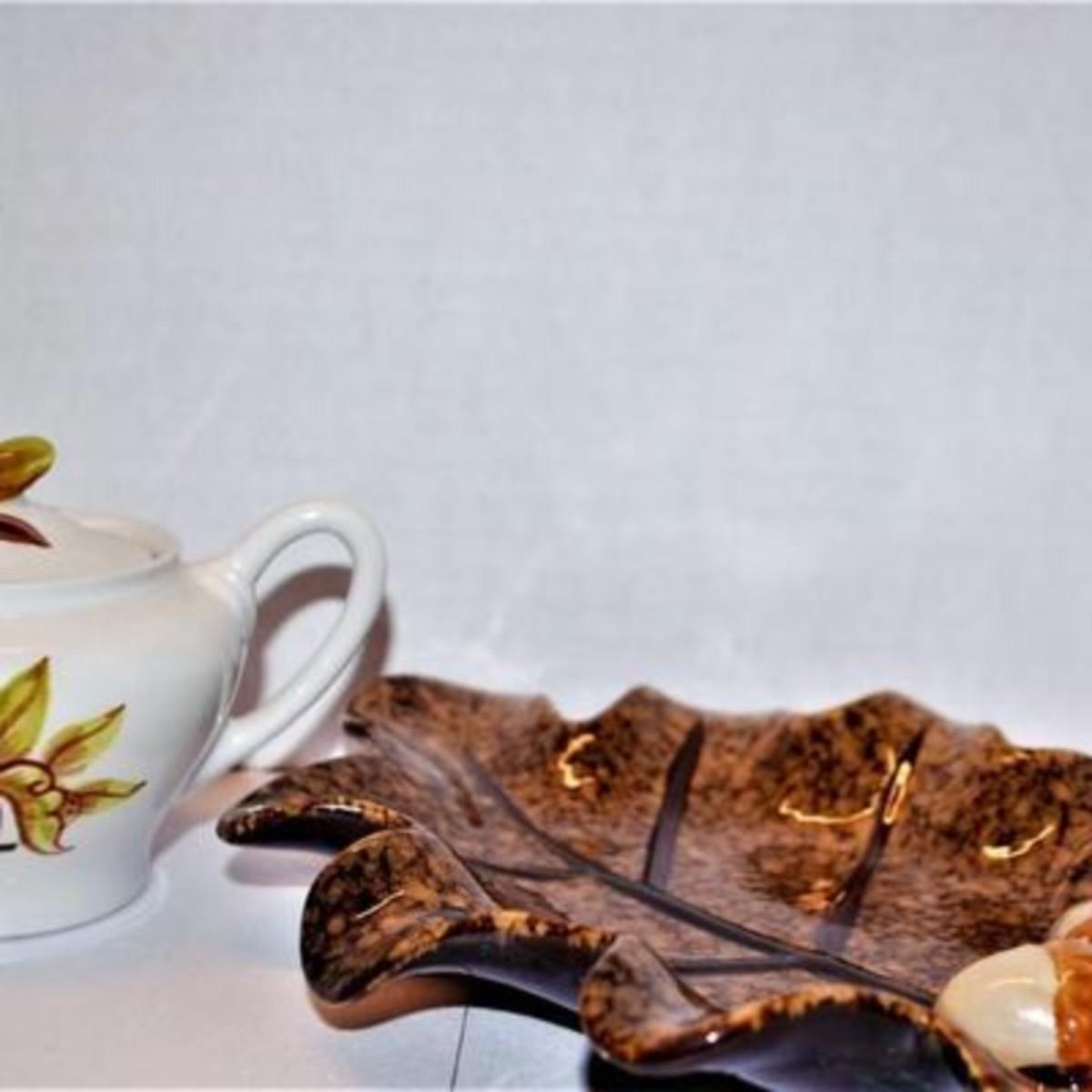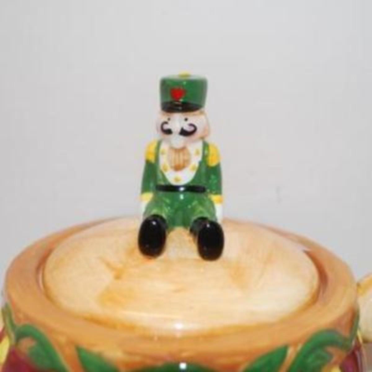 Large "Mustached Nutcracker" Colorful Tea Pot 6" H & Acorn Dish and Tea Pot Total 3 Pcs.