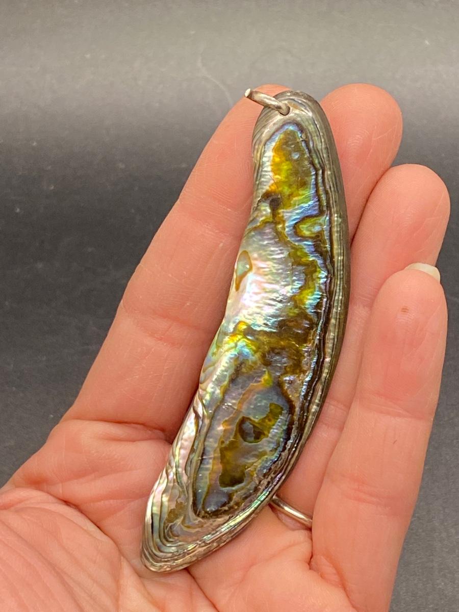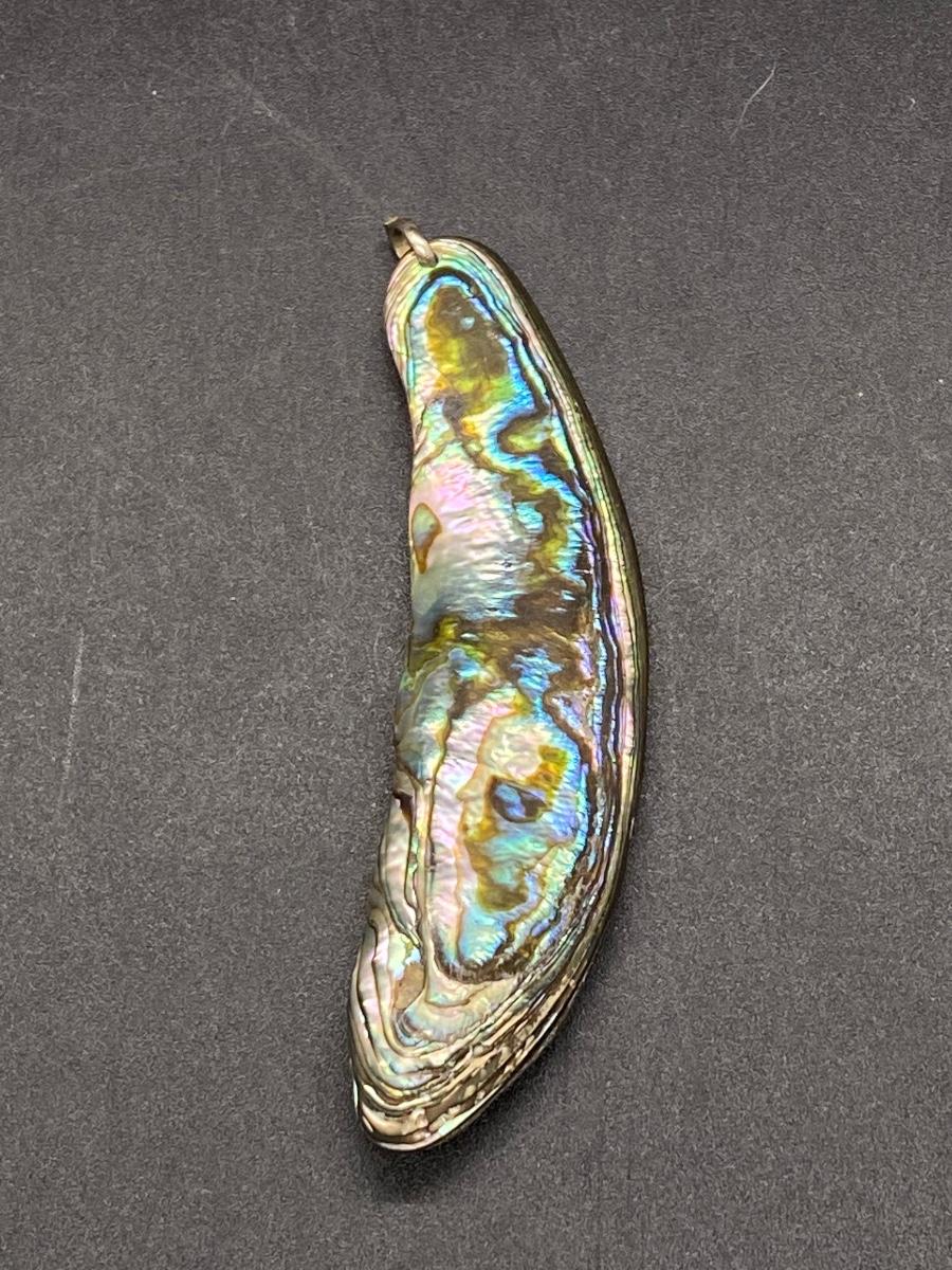 Large abalone shell pendant. Slightly polished natural form. About 3.5" size.
