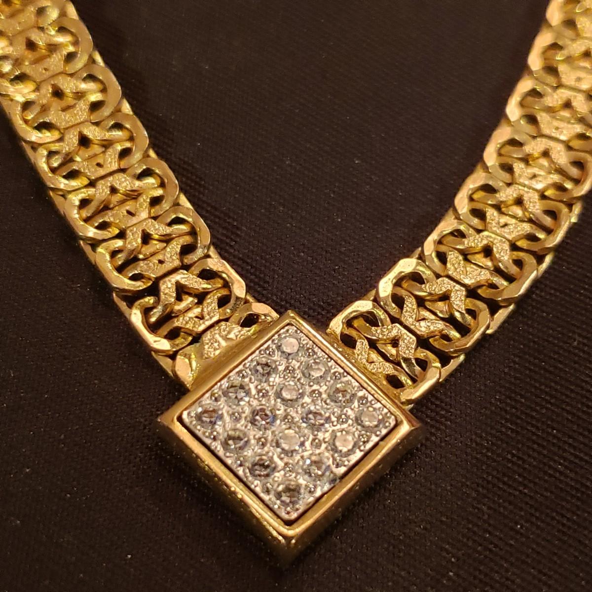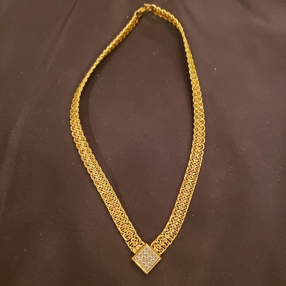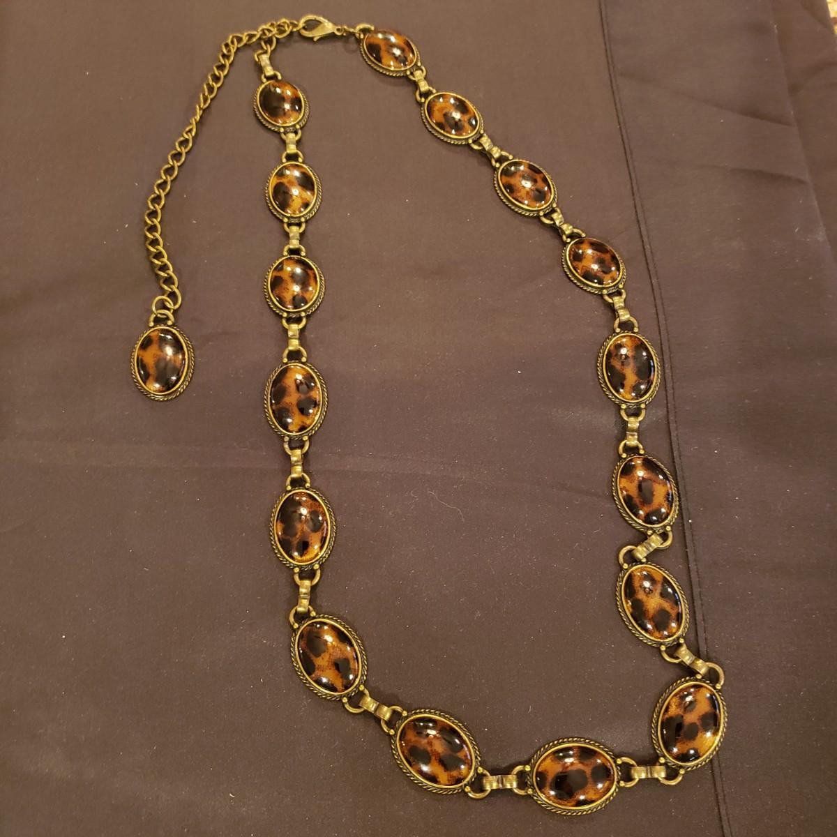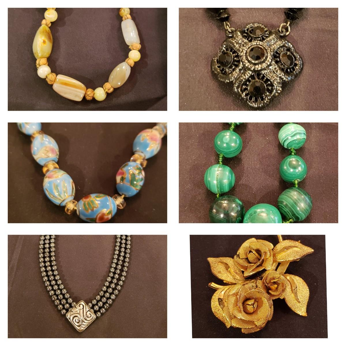 This large jewelry lot features gold like necklaces, pendants, a silver elastic belt, scarf cuff and a set of clip on earrings. See pictures for details. All sales are final. No returns or refunds. Please bid accordingly.