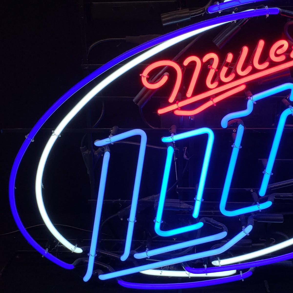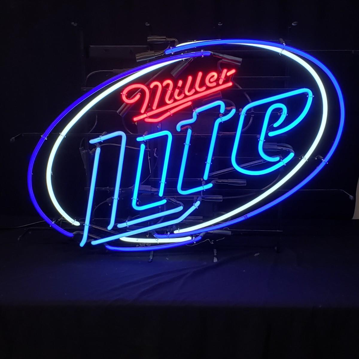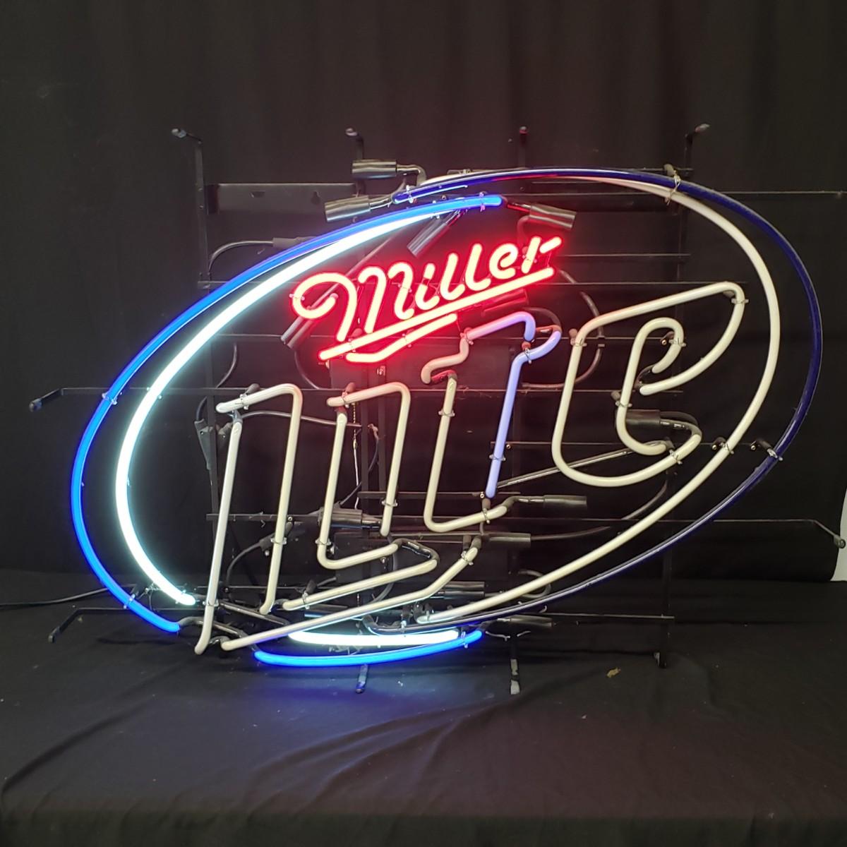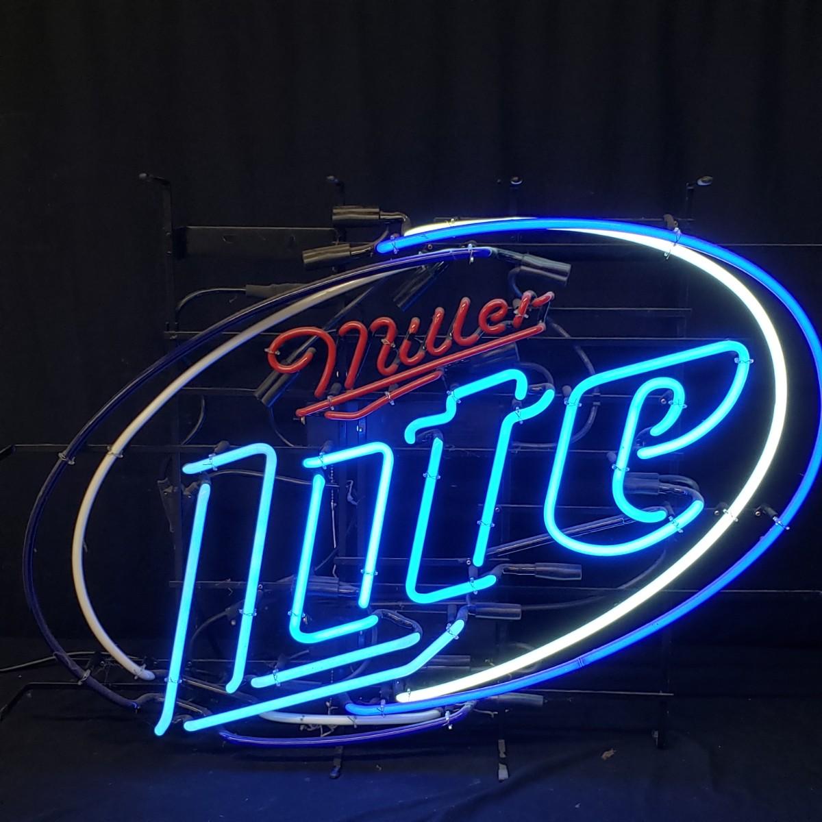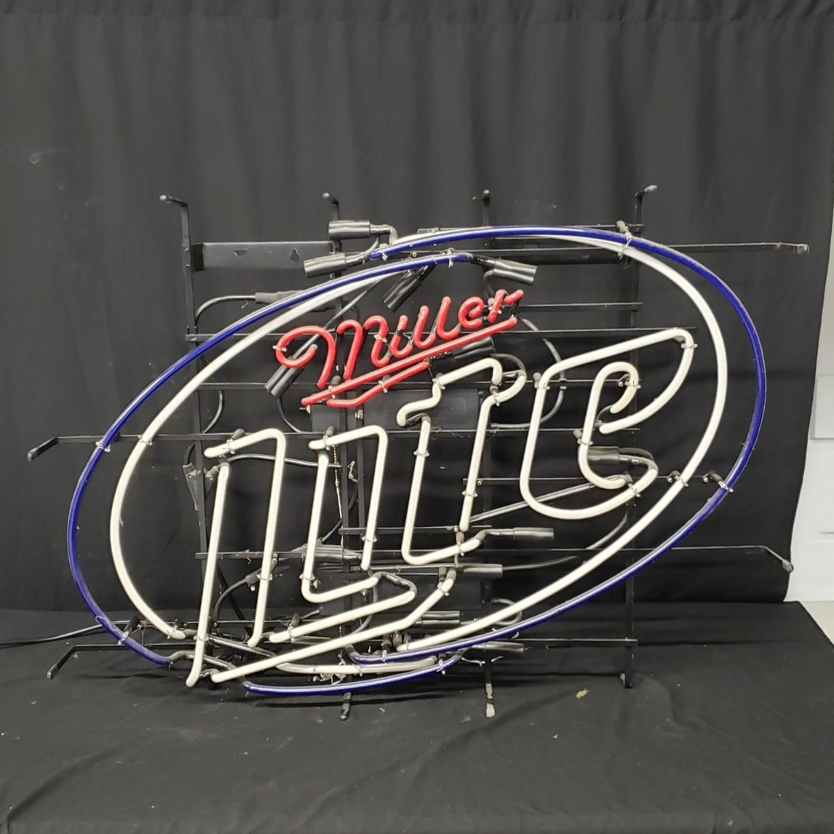 This a large Miller Lite Sign measures 40"x7"x28". The sign has two pull cords for partial lighting, or turn them both on to feel the glow! Shipping available. Shipping Art can be costly please call UPS store at 828-252-6930 for quote.