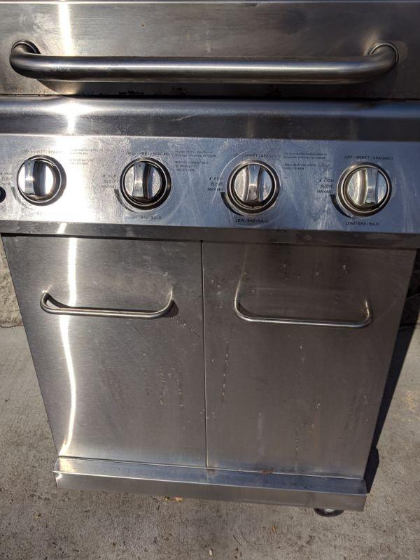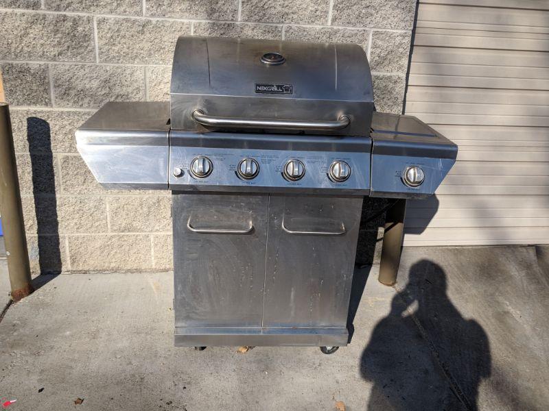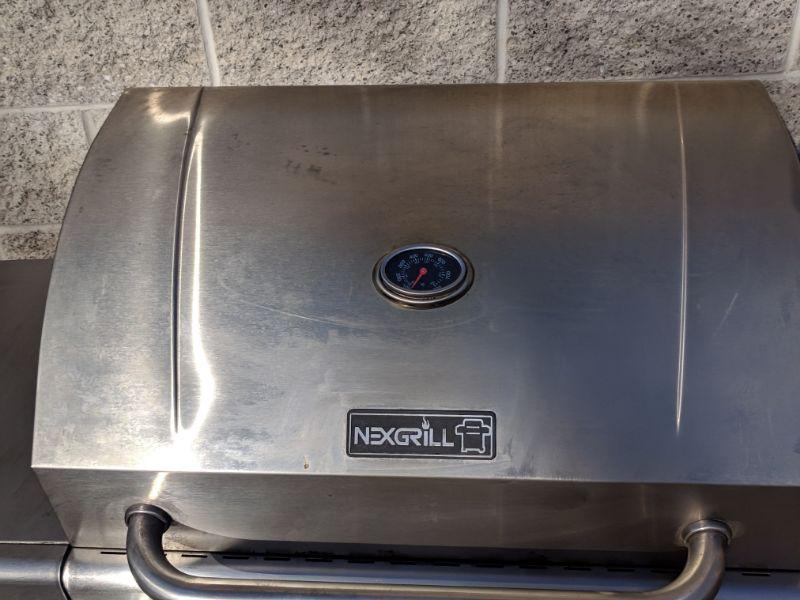 Large Nexgrill Grill, in Good Working Condition. Includes Propane Tank (Has Some Gas) and Cover. 4 Burners in Main + 1 Burner on Side