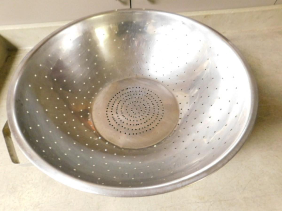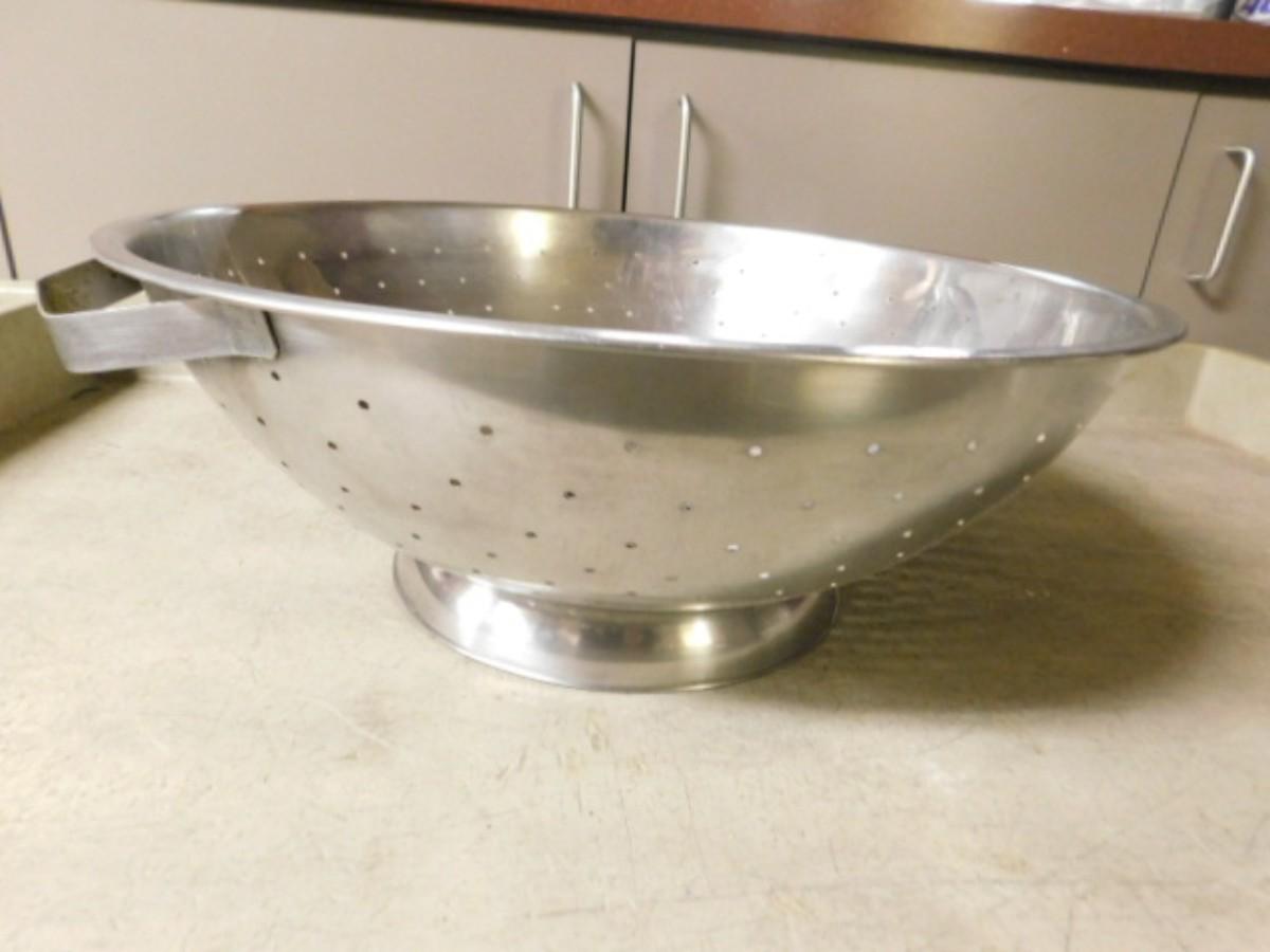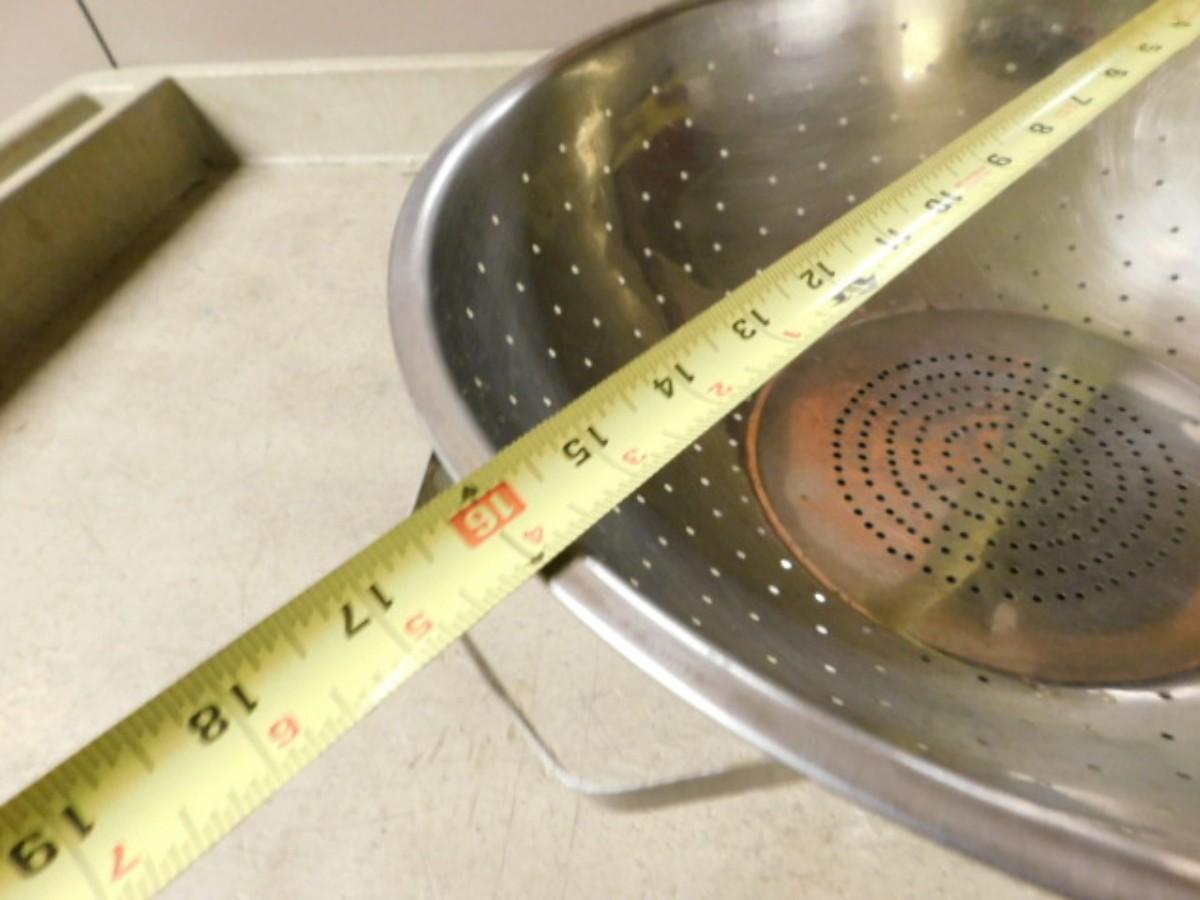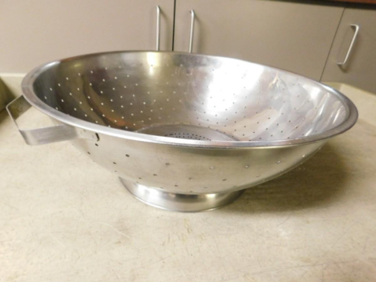 Large NSF Commercial Kitchen Metal Strainer Expect some wear or scratches to finish. Shipping option available via freight or local mover at Buyer's expense. Buyer must have all shipping scheduled within the stated dates and times of pickup. Recommended local mover is Beaty Bros. Moving 828-201-2982