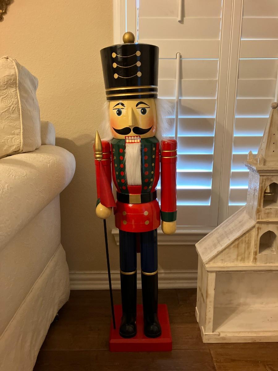 Awesome 42" tall wooden nutcracker in excellent condition. Great holiday decor!