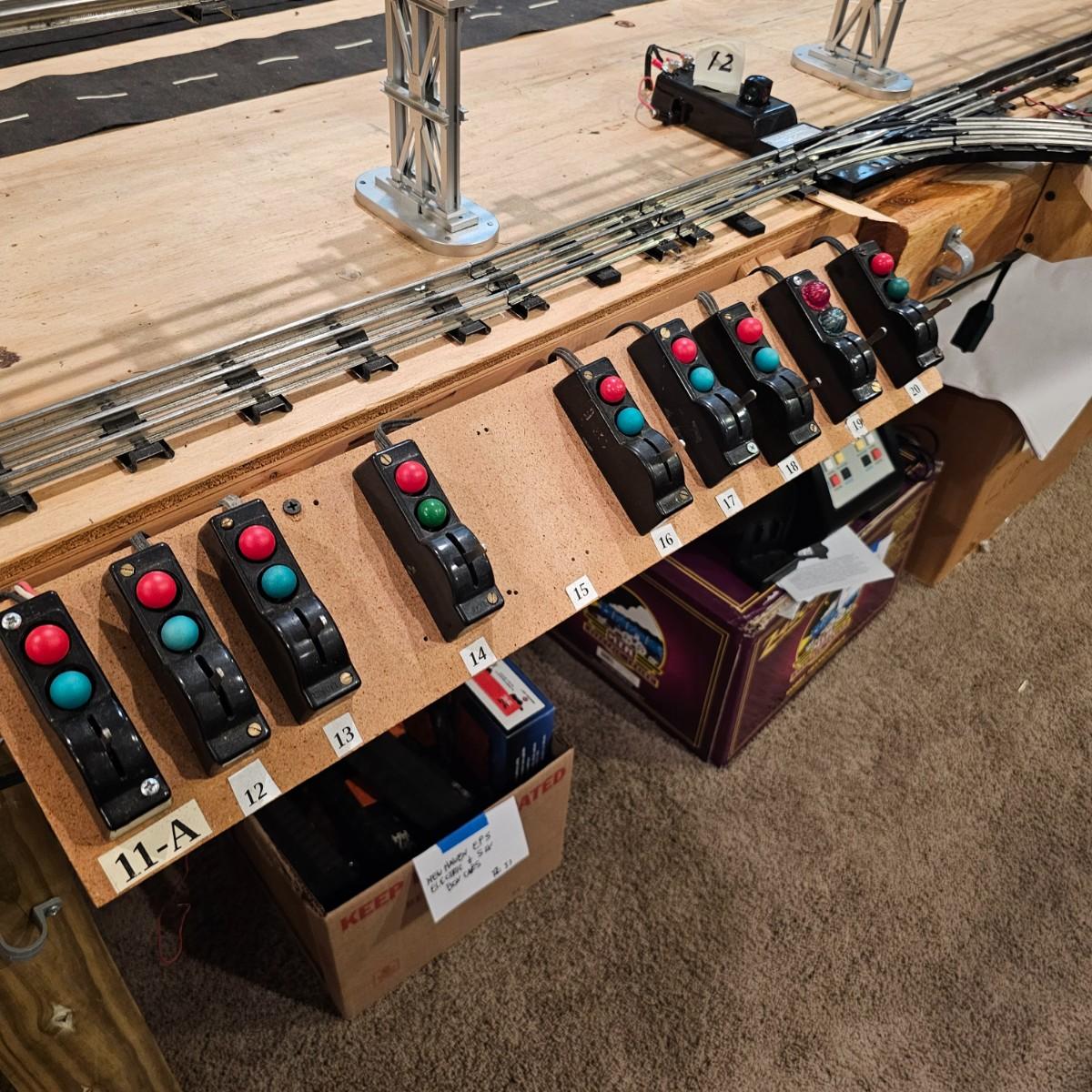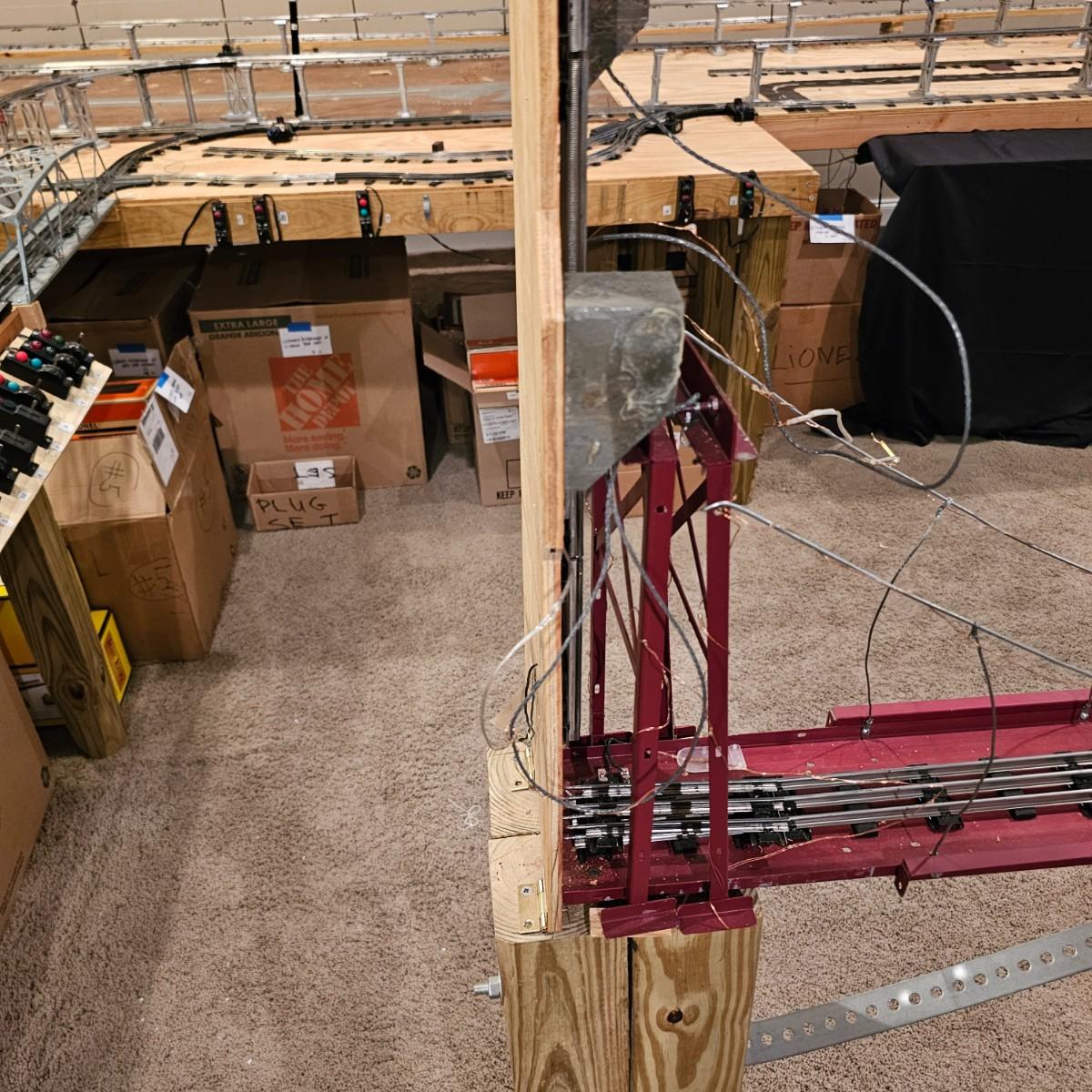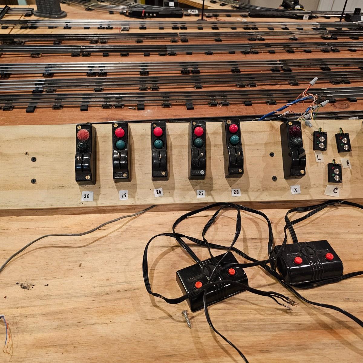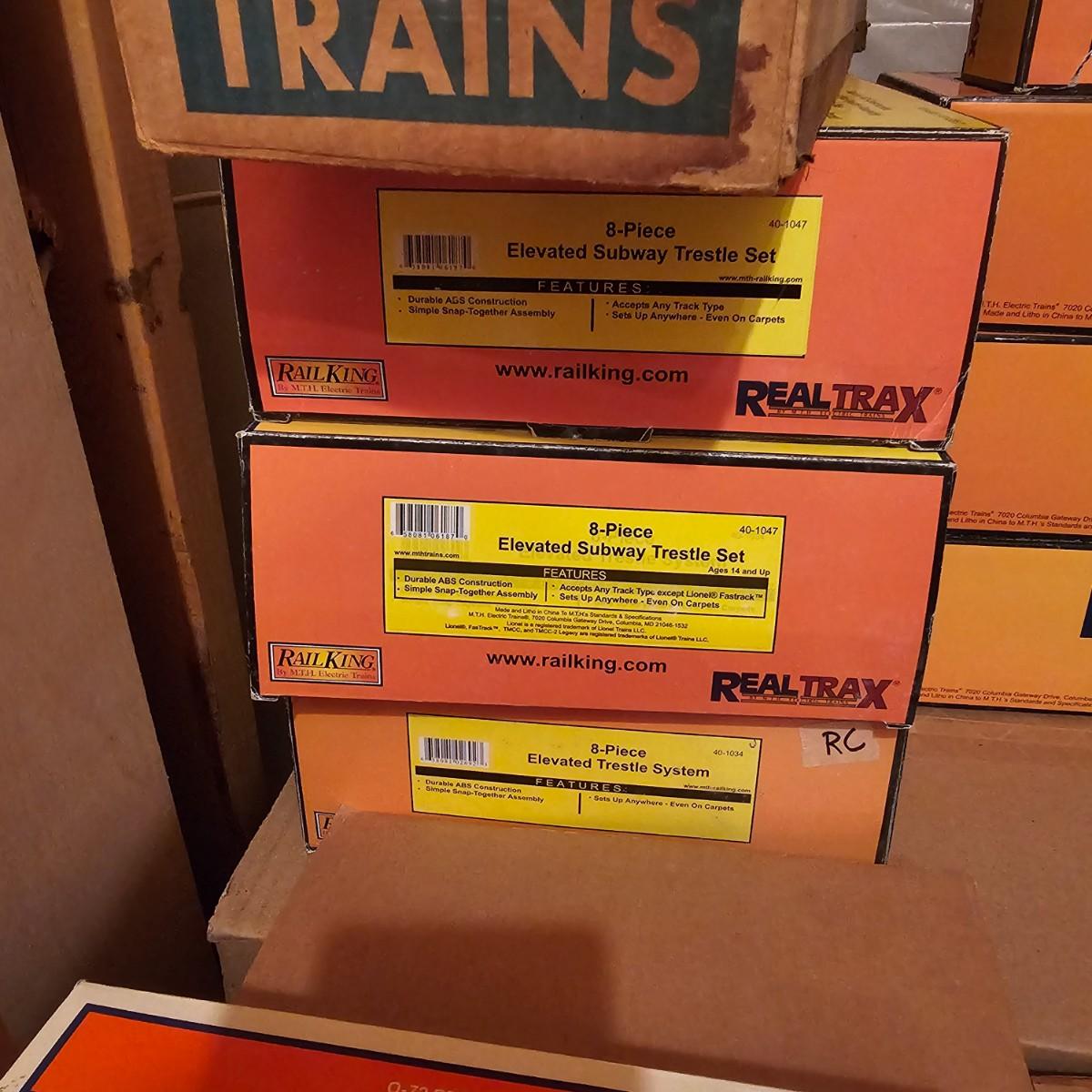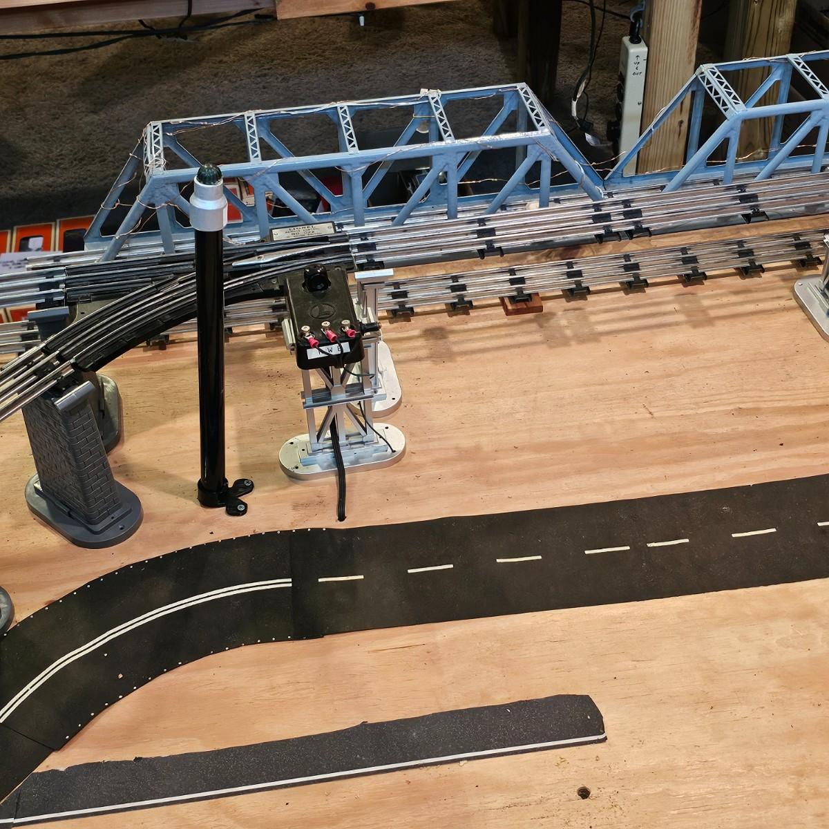 A complete O gauge layout with all the elements to go except rolling stock and power. Layout overall is approximately 13' x 32' with extra yard areas and an elevated section as well, mounted on trestle supports. There are over 40 switches and controllers and approximately 300' or more of track, both sectional pieces and long straights. The bench work is 36" in height, is composed of several separate sections mounted on 4" x 4" treated legs. Most of the benches are 48" x 96', some are 24" x 96" and some smaller. Also includes some original items used on layout, switches, bridges and trestle sets. All can be disassembled for removal. Winning buyer must coordinate pickup on Thursday August 28th, ideally taking everything but open to discussion. You must disassemble items yourself, bring tools, screwdrivers, drills, etc. Layout is located in basement of home but has outside access door. See photos for details. Local pickup only.