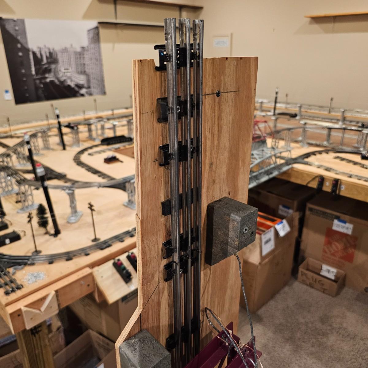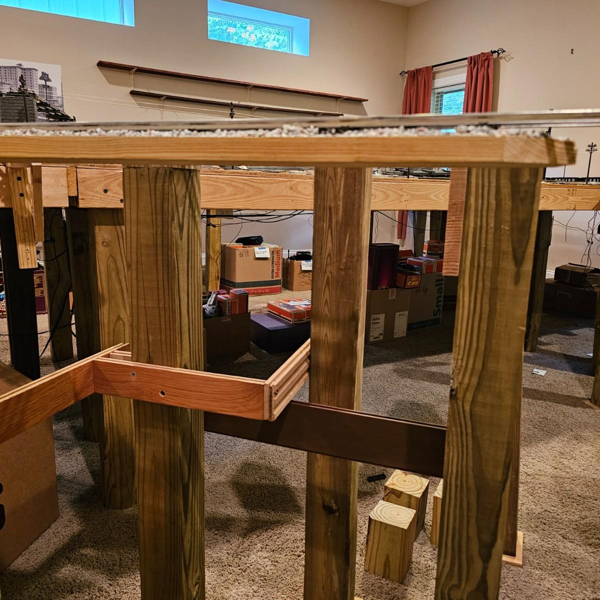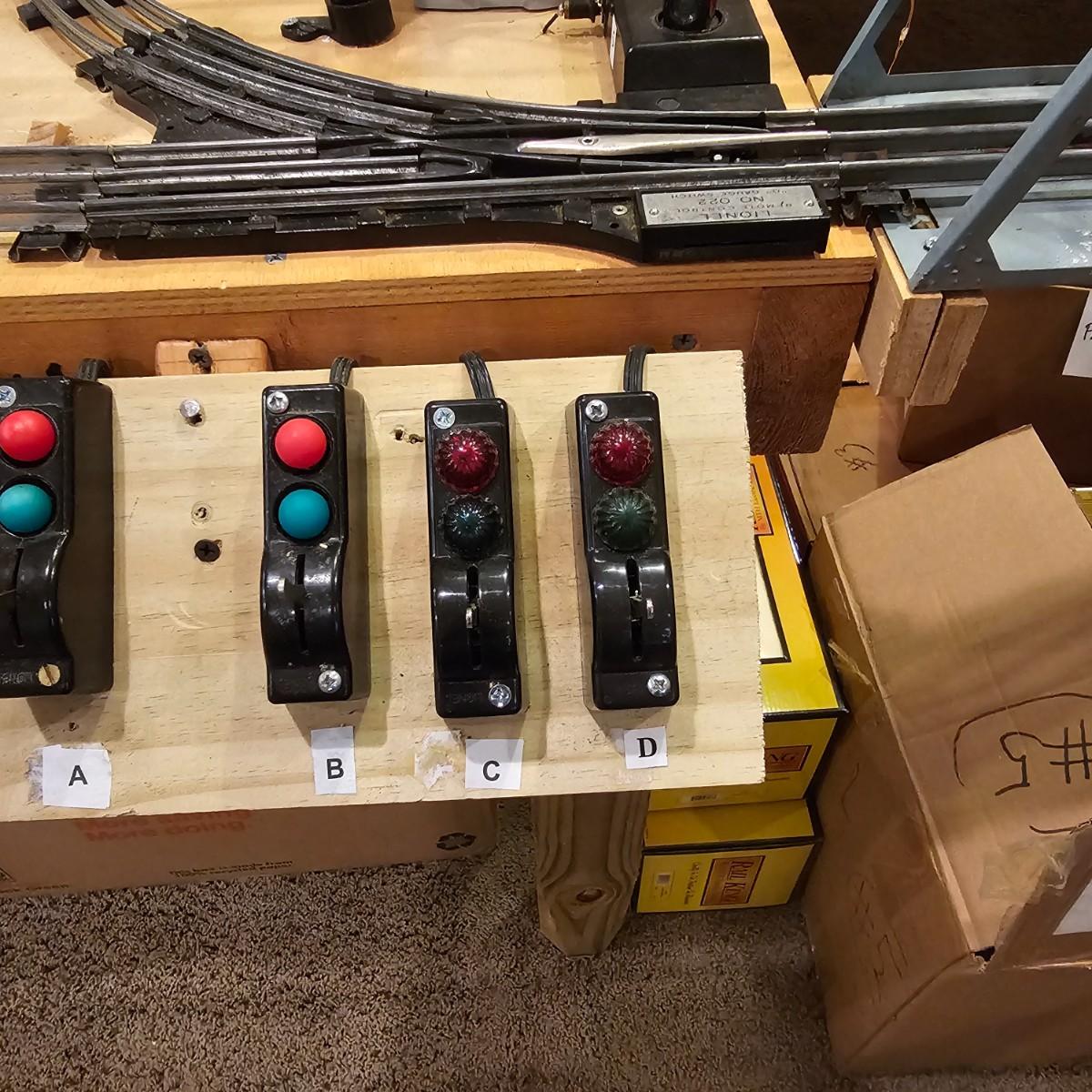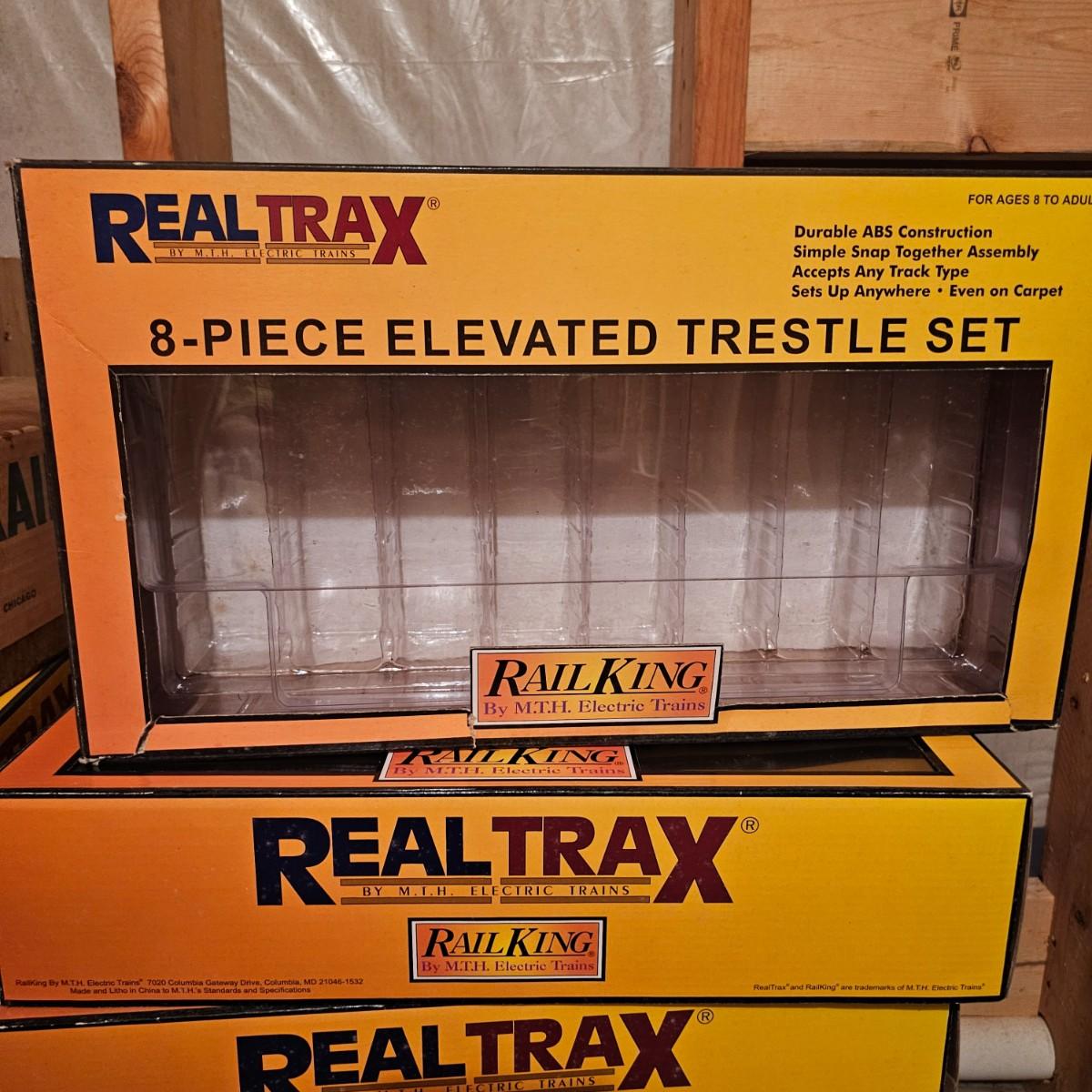 A complete O gauge layout with all the elements to go except rolling stock and power. Layout overall is approximately 13' x 32' with extra yard areas and an elevated section as well, mounted on trestle supports. There are over 40 switches and controllers and approximately 300' or more of track, both sectional pieces and long straights. The bench work is 36" in height, is composed of several separate sections mounted on 4" x 4" treated legs. Most of the benches are 48" x 96', some are 24" x 96" and some smaller. Also includes some original items used on layout, switches, bridges and trestle sets. All can be disassembled for removal. Winning buyer must coordinate pickup on Thursday August 28th, ideally taking everything but open to discussion. You must disassemble items yourself, bring tools, screwdrivers, drills, etc. Layout is located in basement of home but has outside access door. See photos for details. Local pickup only.