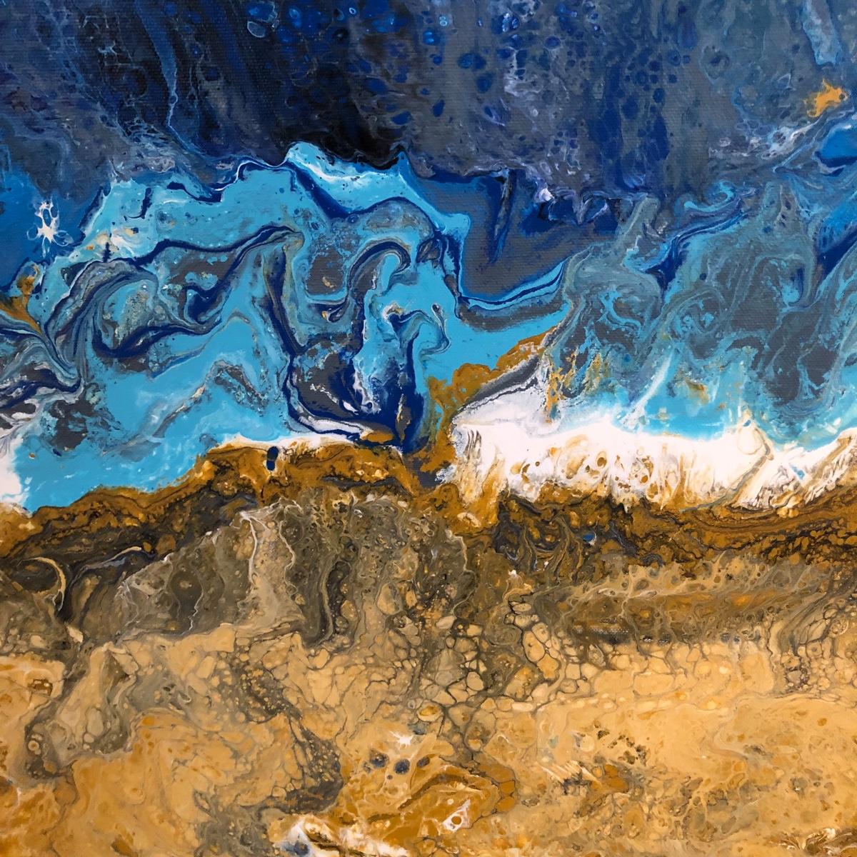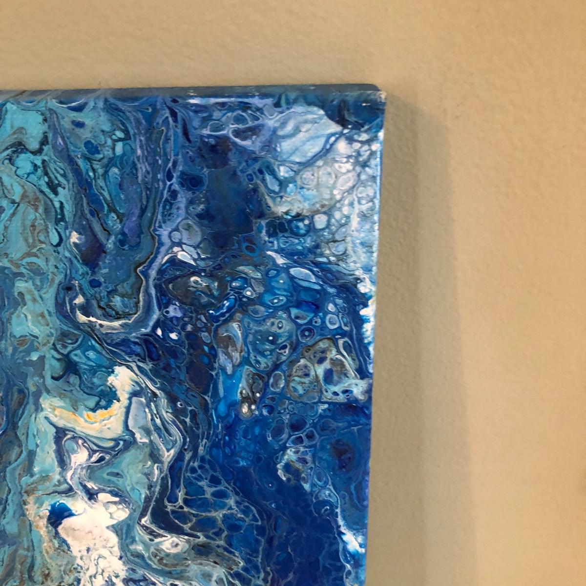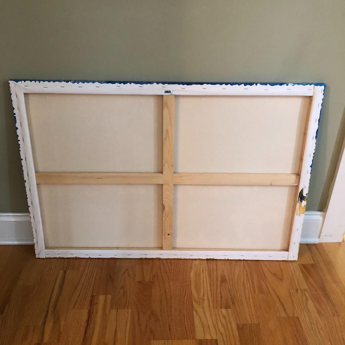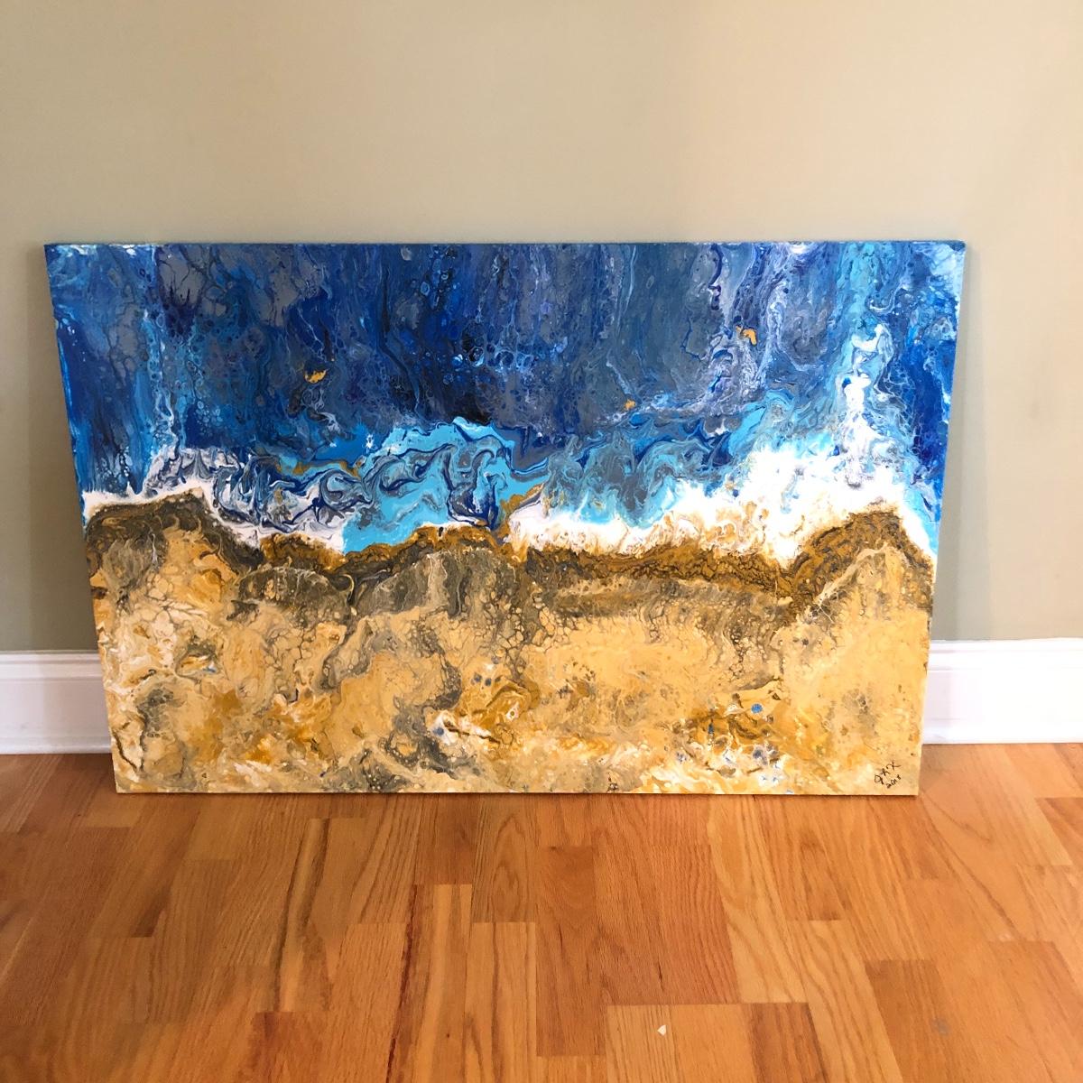 Measuring 36” x 24” this is a large stretched canvas over a wood frame of an ocean/beach scene.