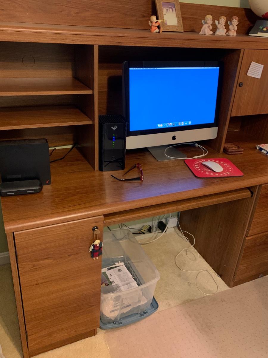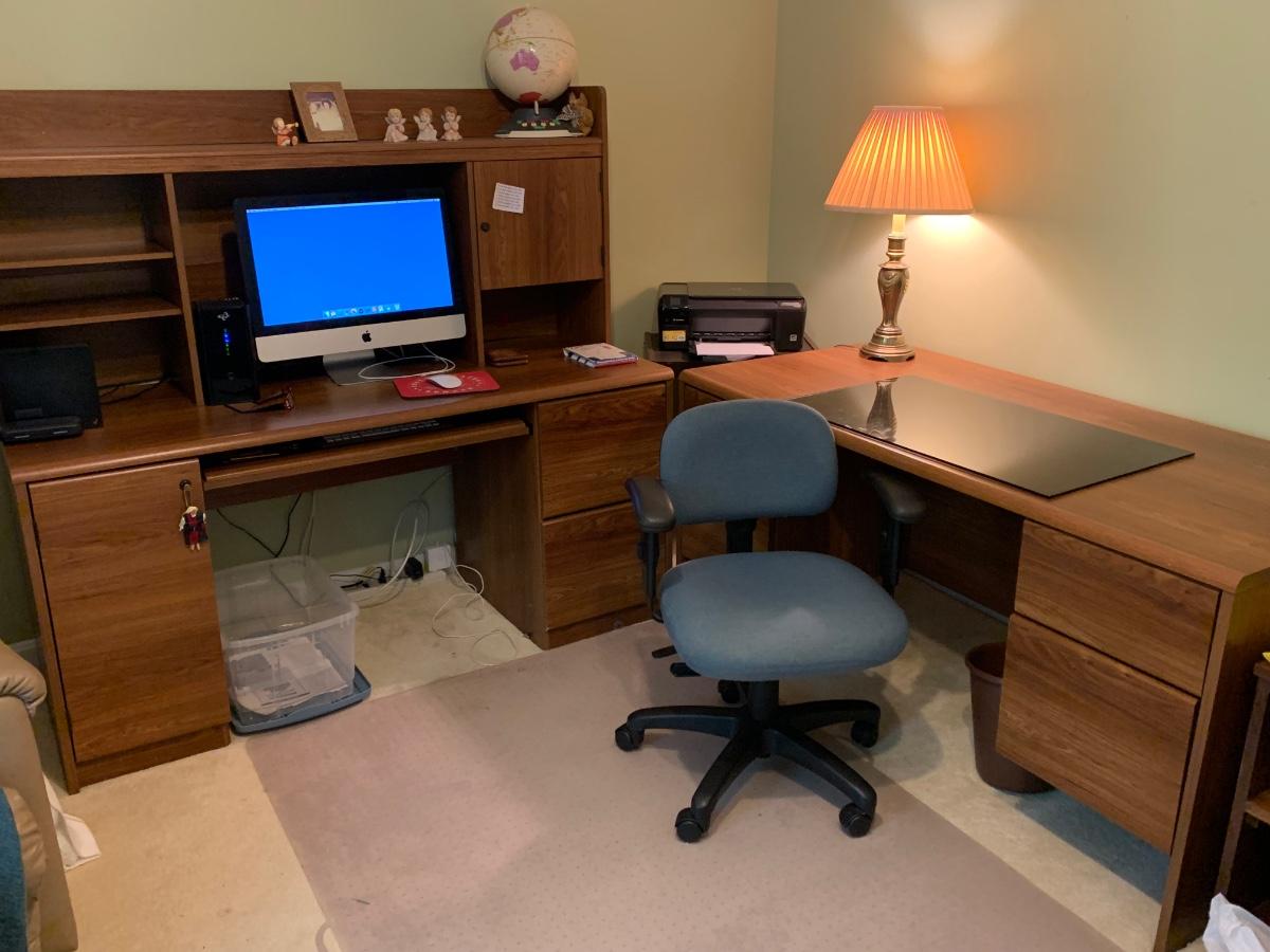 Just the desk and chair only - computer and other personal items shown not included. Please bring lots of help to move and any tools necessary to disassemble.