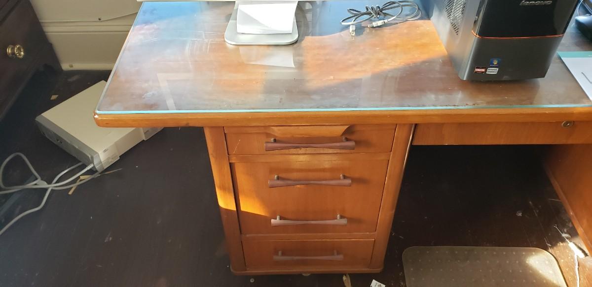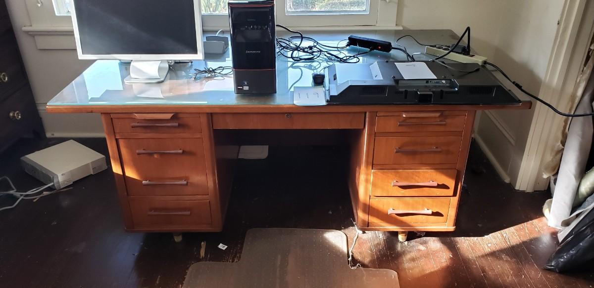 Large Office Desk with Glass Lot, Desk Size 42 1/2 x 75 1/2