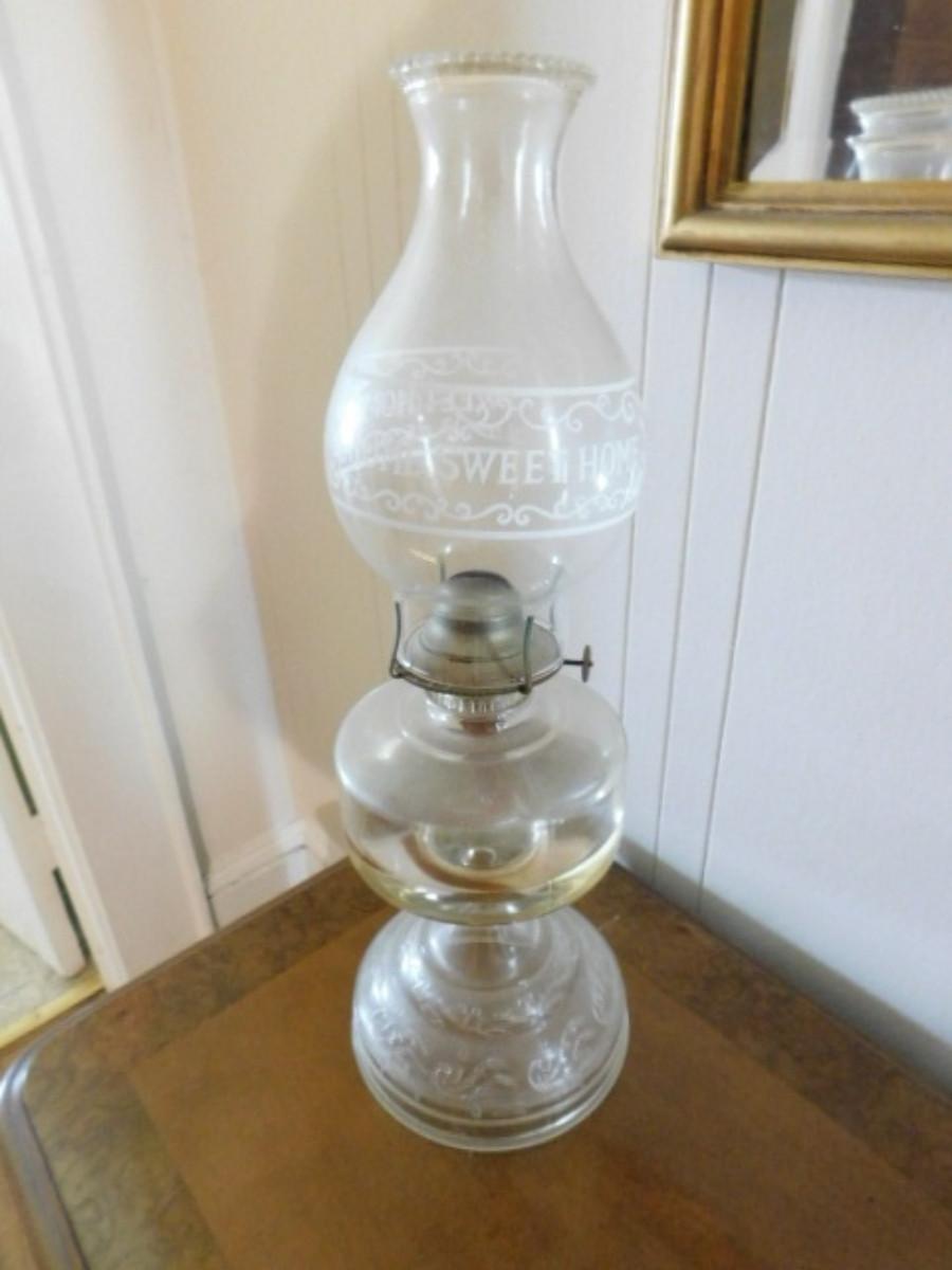 Large Oil Lamp with Shade Marked 'Home Sweet Home'