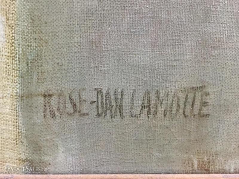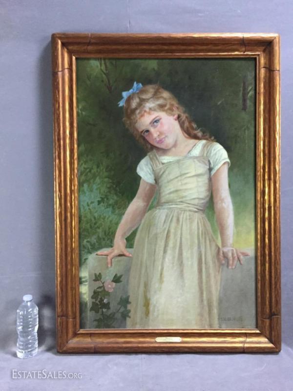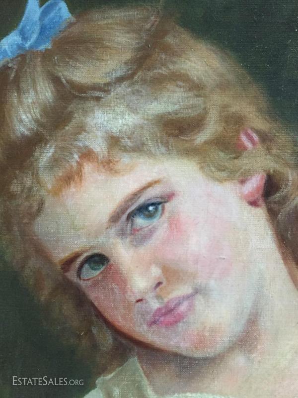Large oil on canvas portrait of young girl rose signed by Daniel Lamotte