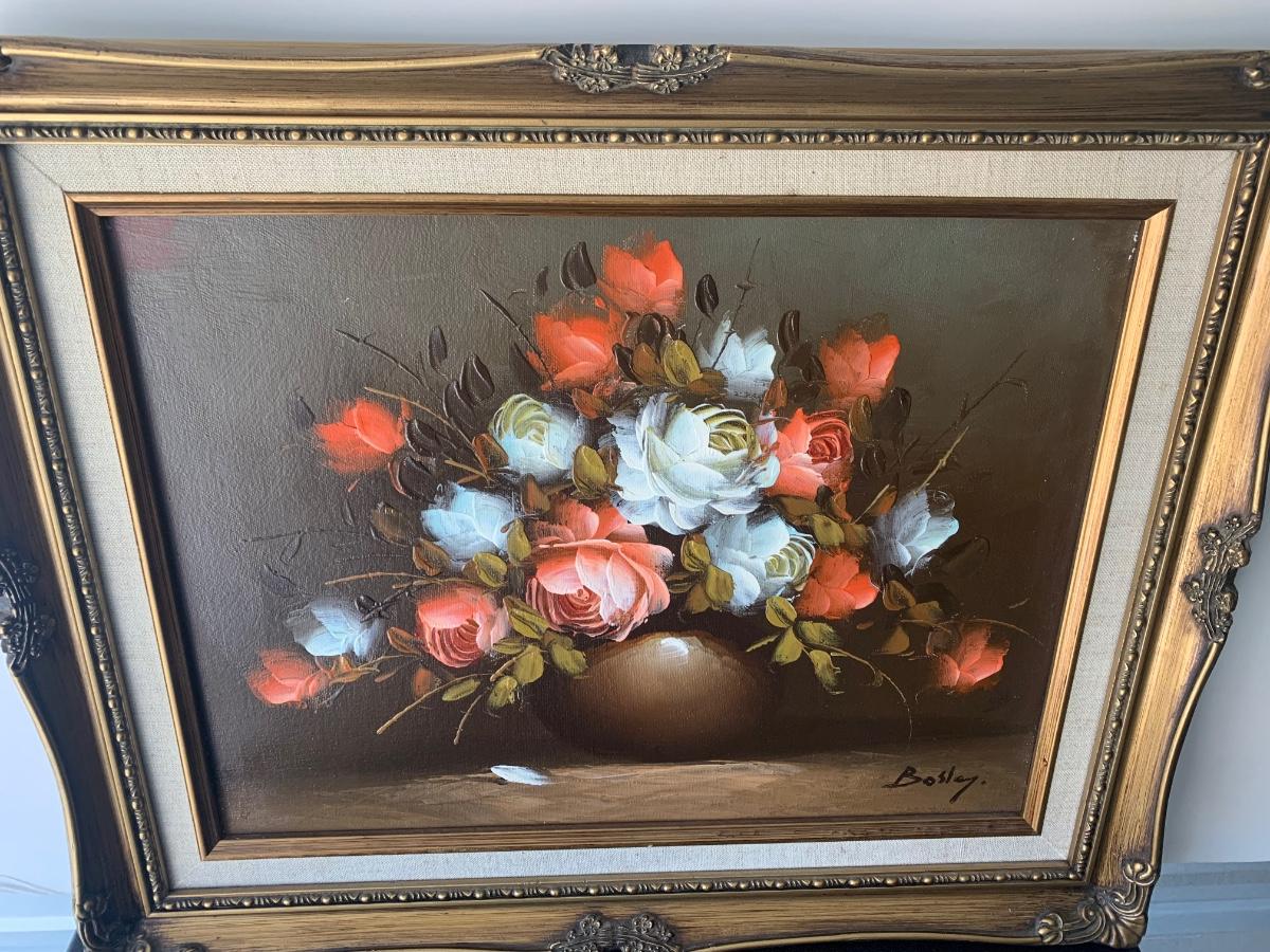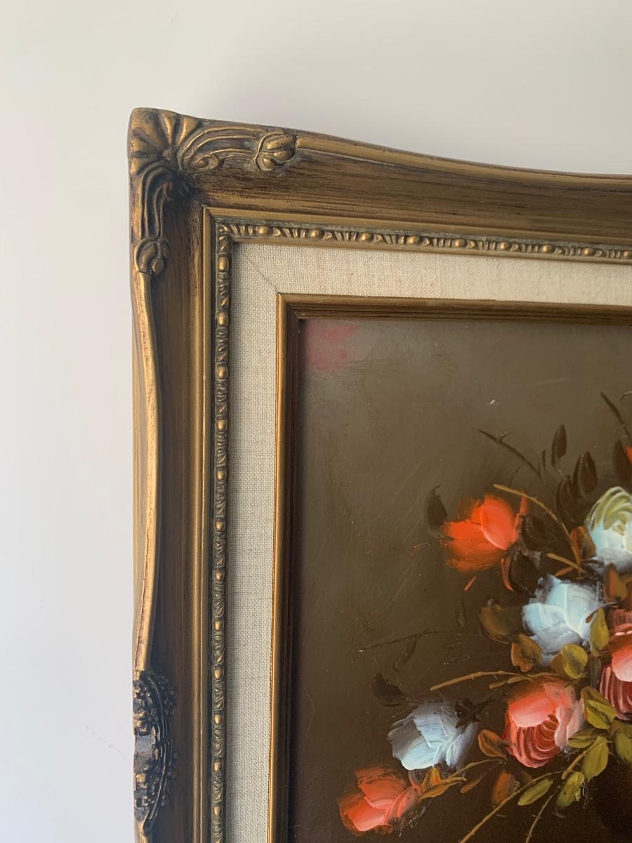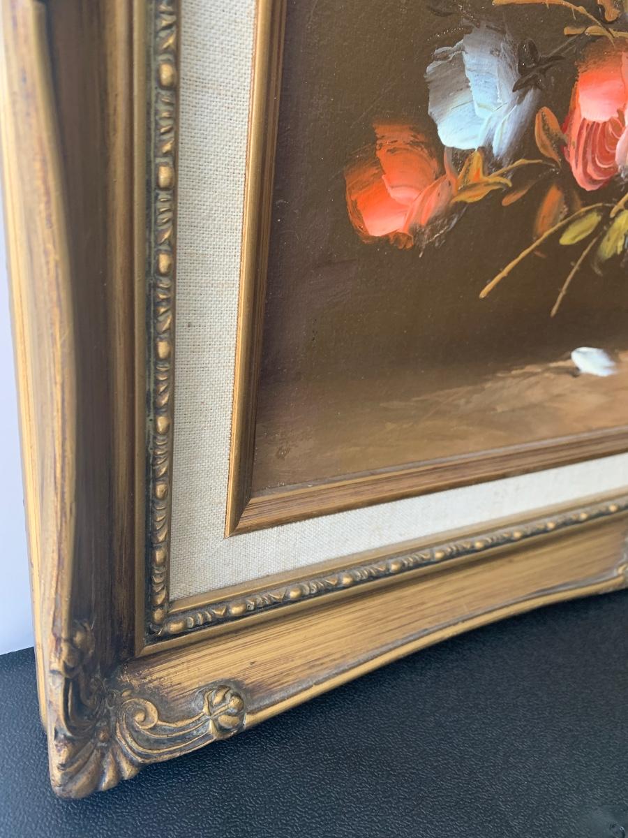 Large Oil On Canvas Signed Floral Art Gold Gilt Frame