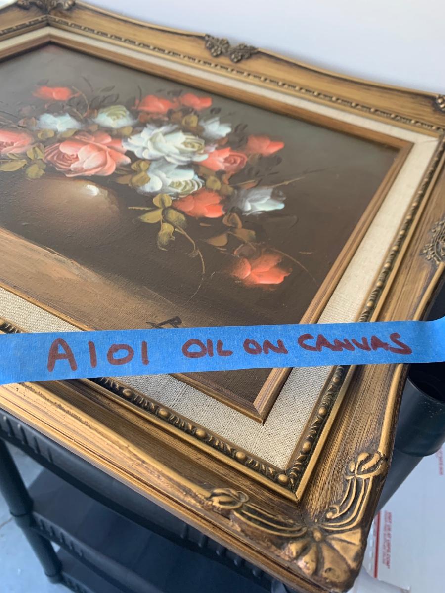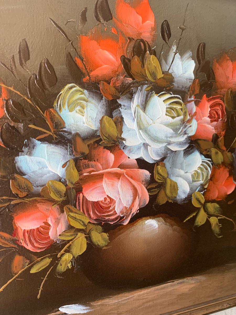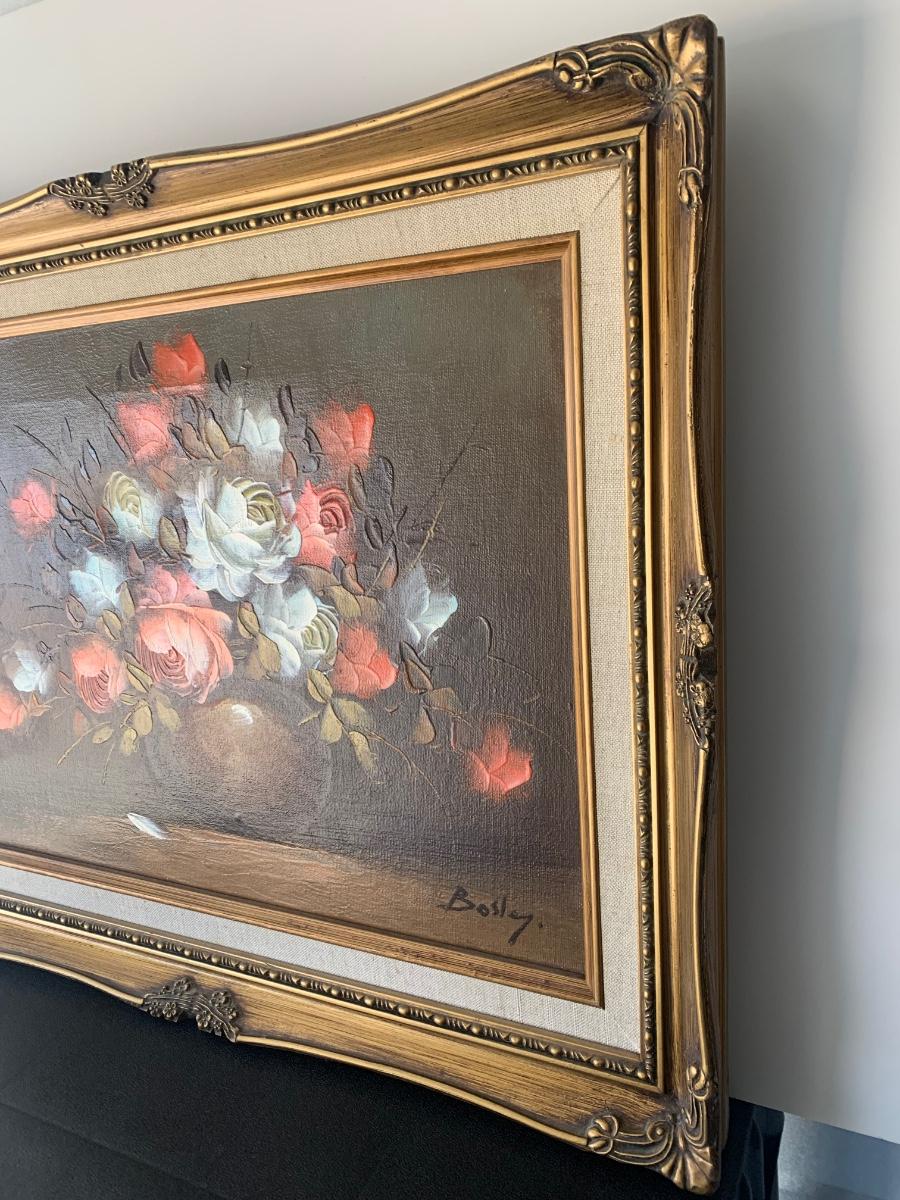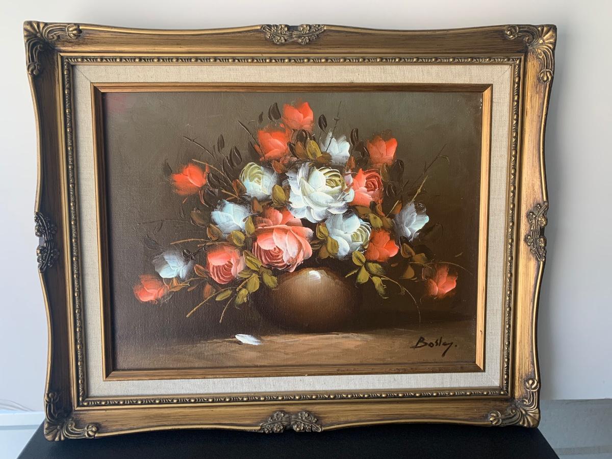 Large Oil On Canvas Signed Floral Art Gold Gilt Frame