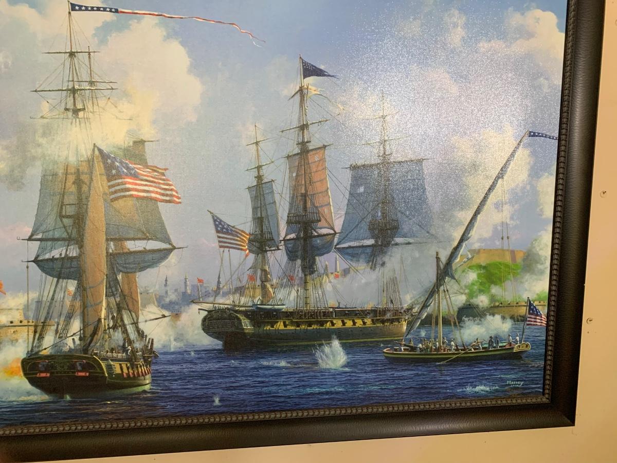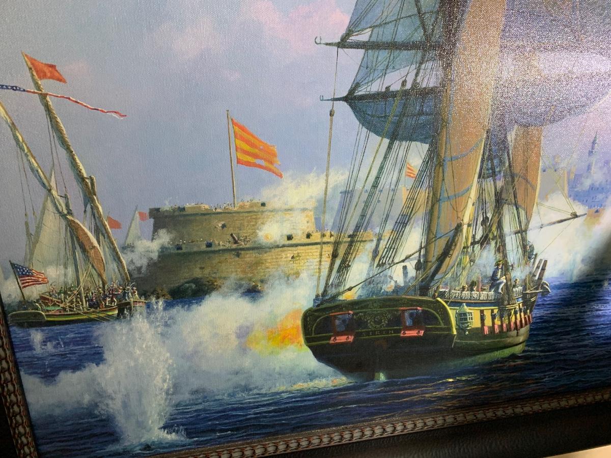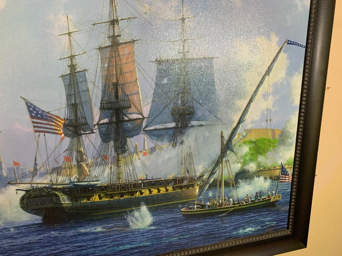 Large Oil On Canvas USS Constitution In Battle Raymond A. Massey