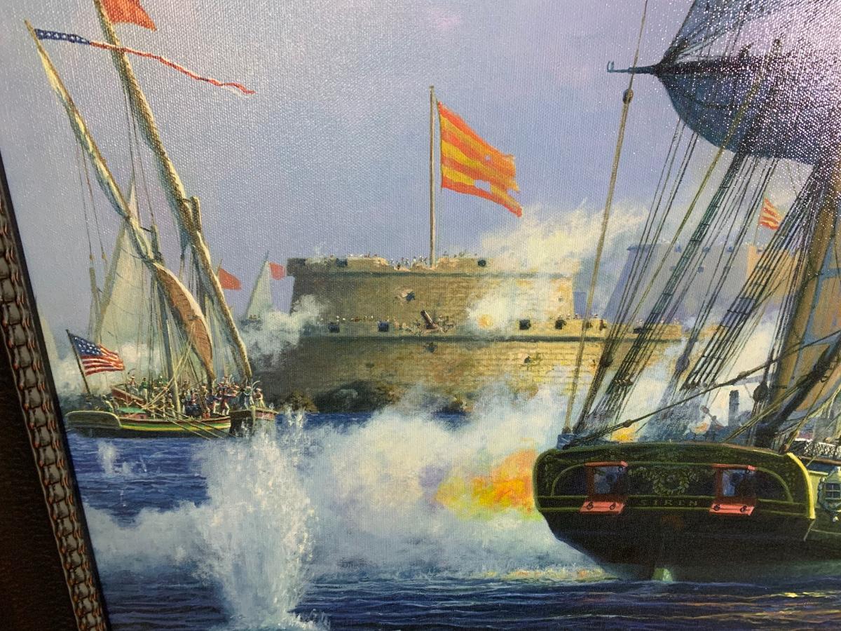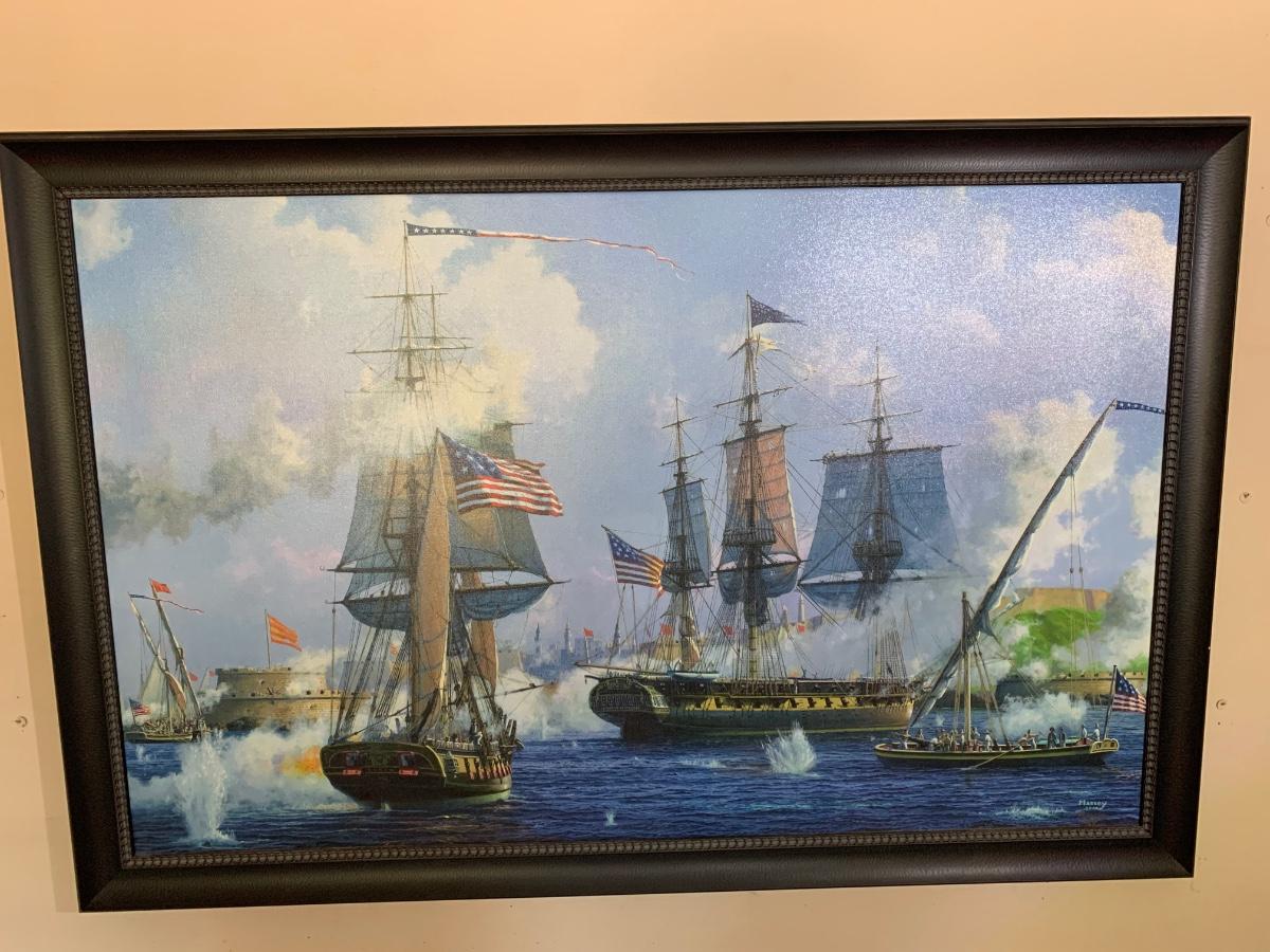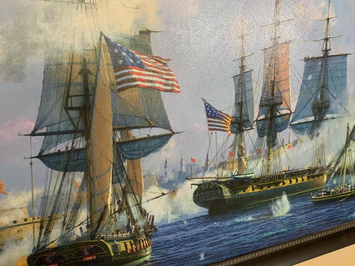 Large Oil On Canvas USS Constitution In Battle Raymond A. Massey