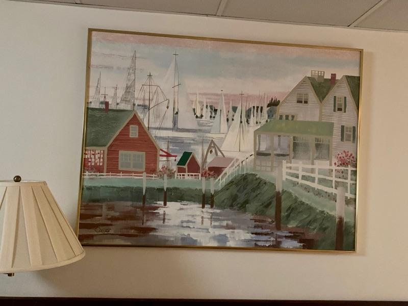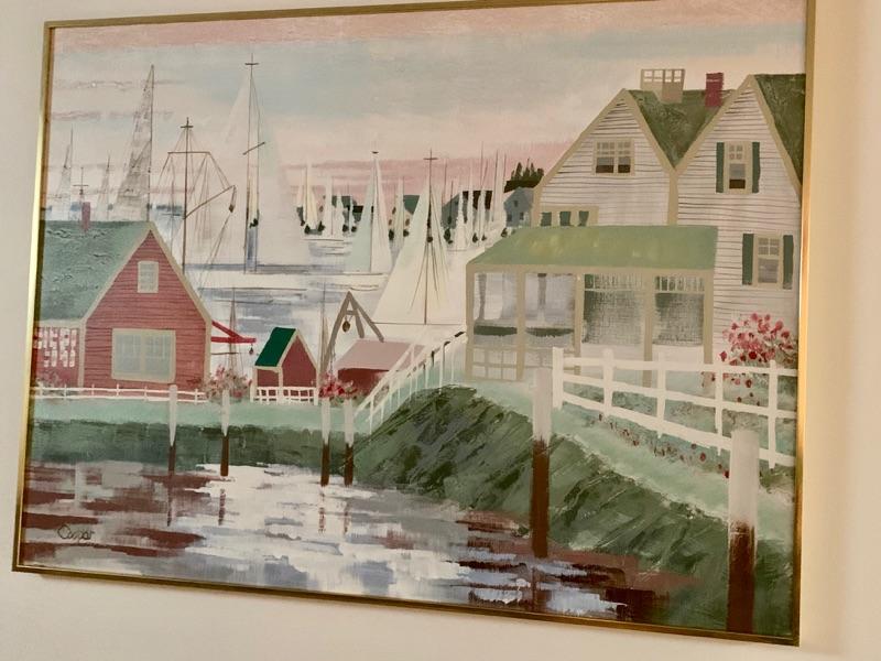 Large vintage oil on canvas of seaport scene, purchased in the 1980's in Cape Cod, Signed "Coopar"