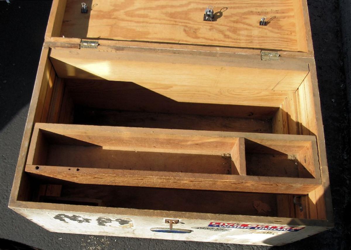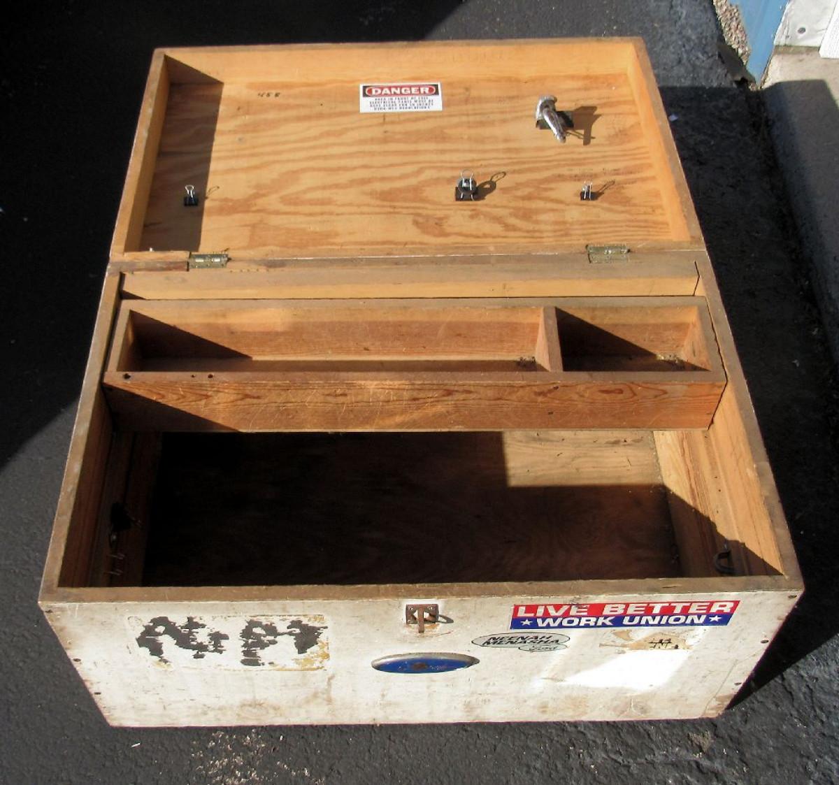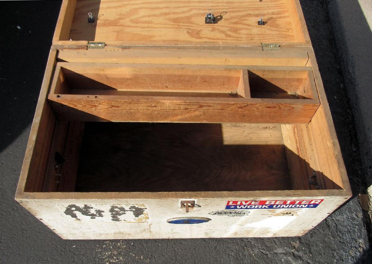 Large Old Wood Toolbox With Tray, 16" x 19" x 30"