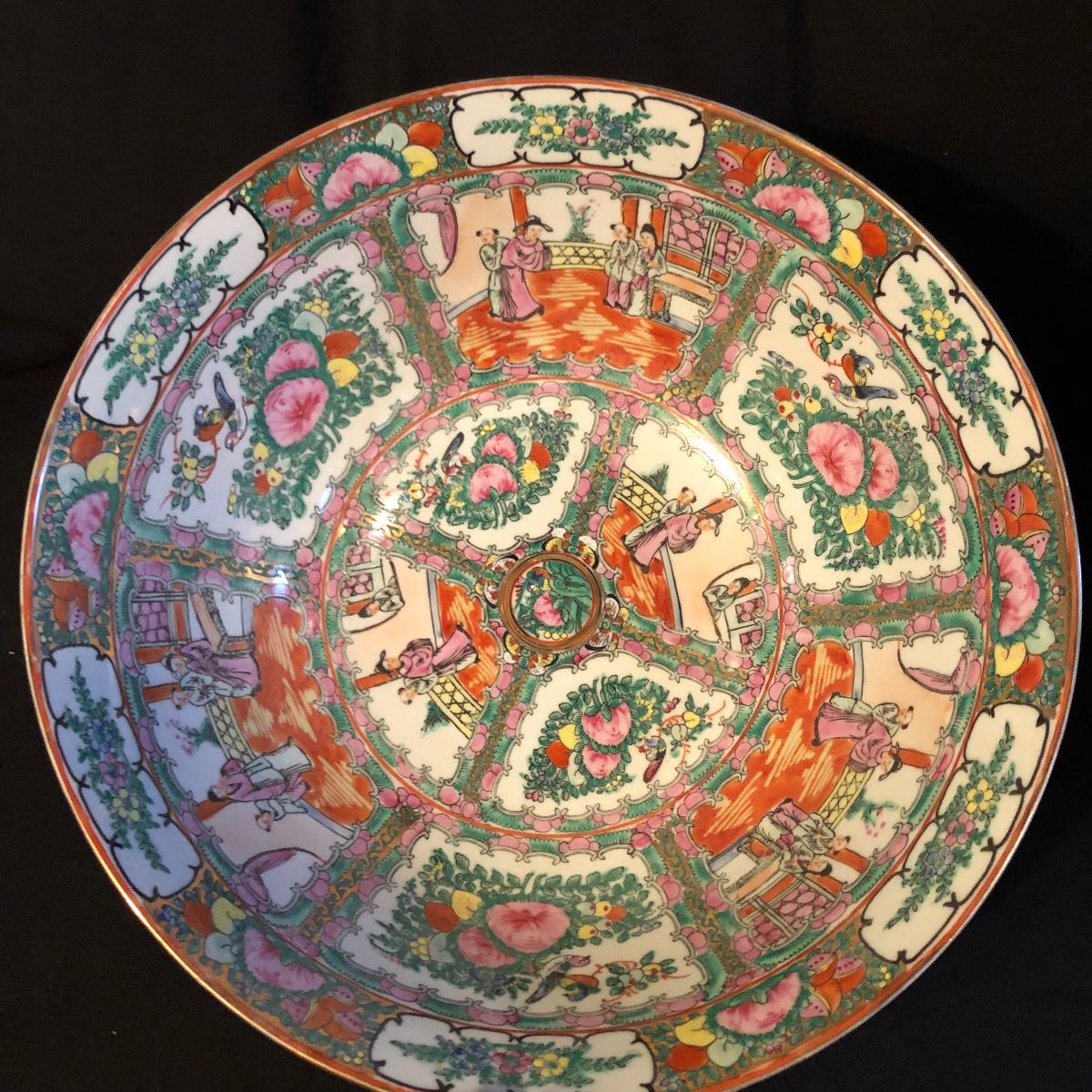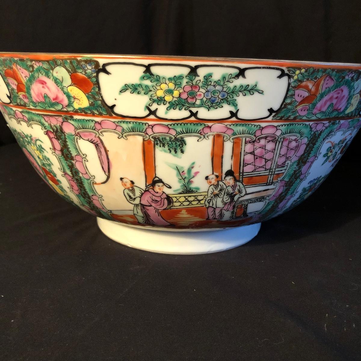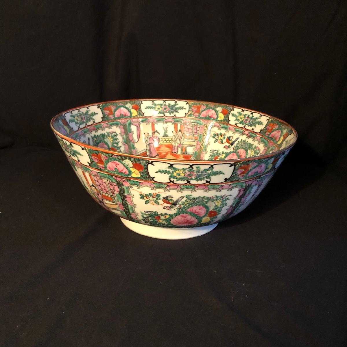 Lot includes a large oriental bowl that appears to be porcelain and has a makers mark on the bottom. Bowl measures 14”D x 6.5” tall.