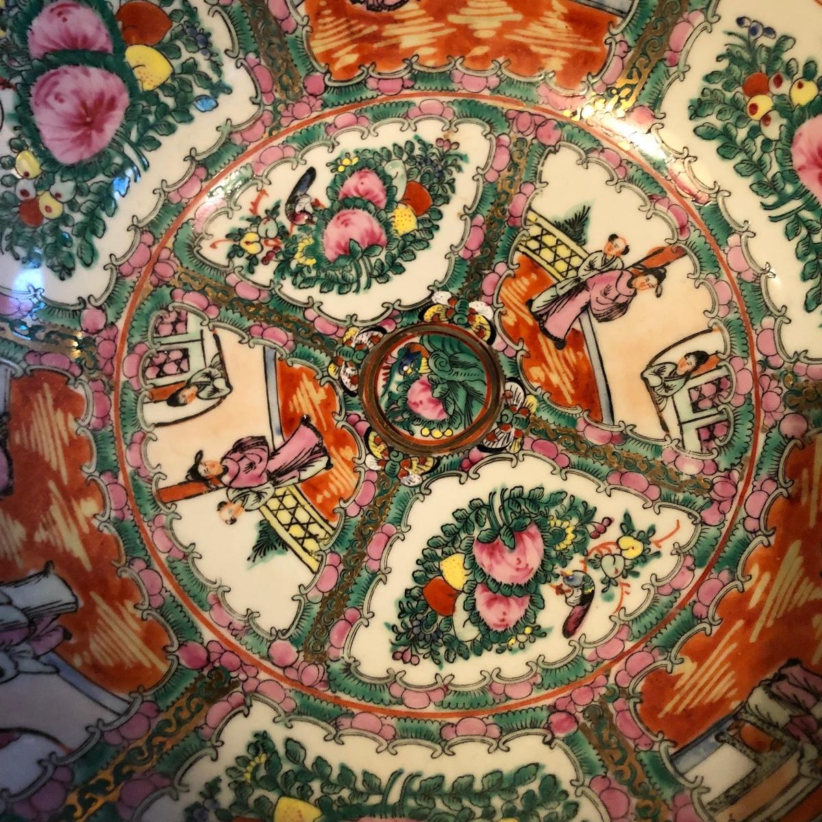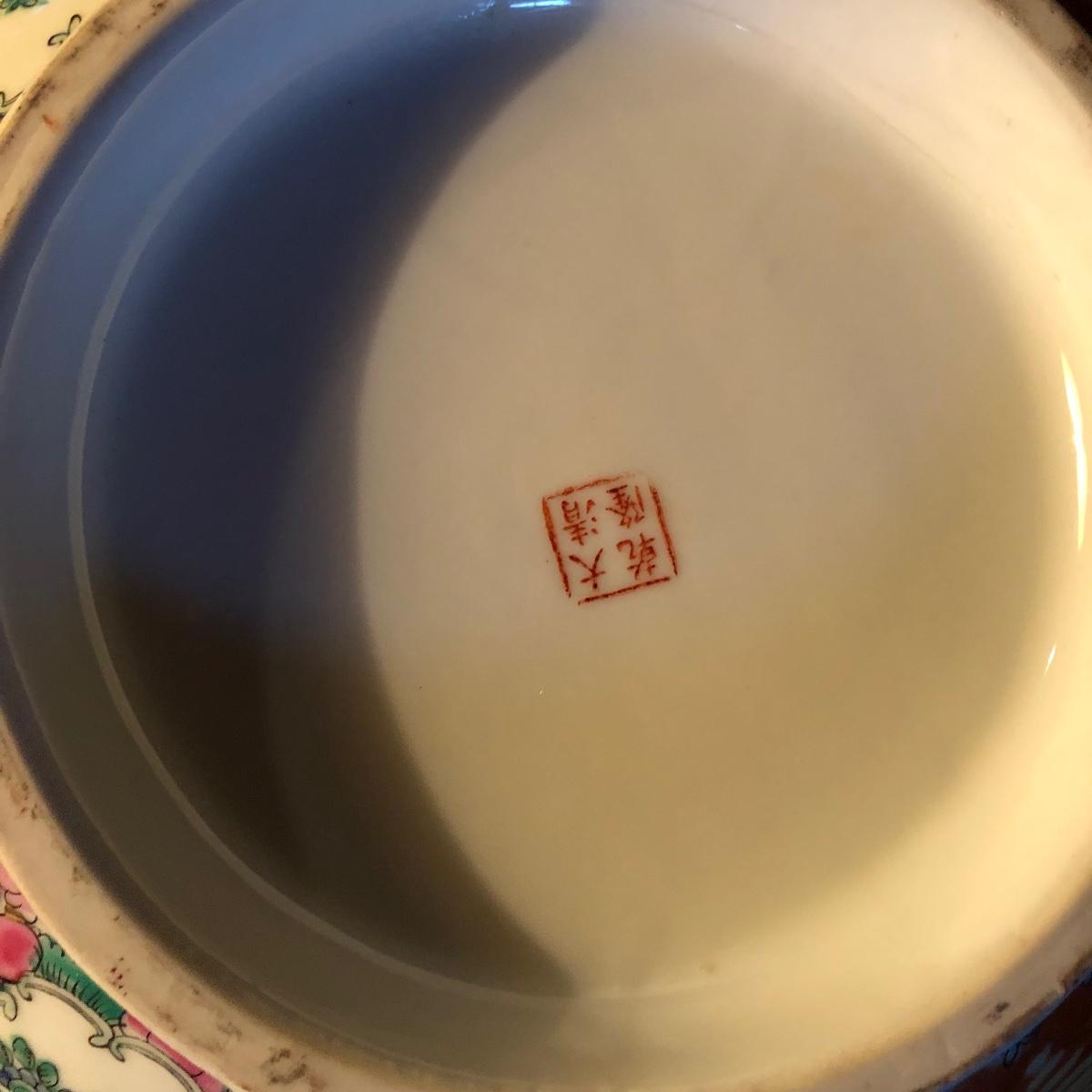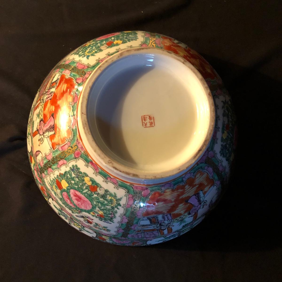 Lot includes a large oriental bowl that appears to be porcelain and has a makers mark on the bottom. Bowl measures 14”D x 6.5” tall.