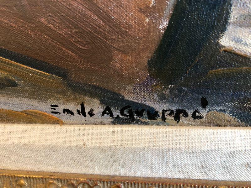 Emile Albert Gruppe was an American painter, known for his depictions of the autumnal and wintry landscapes of New England, as well as maritime port scenes and sailing ships. The artist’s work is associated with impressionist and post-impressionist styles. Born in 1896 in Rochester, New York, Gruppe spent his youth in the Netherlands, studying art under his renowned painter father Charles P. Gruppe (1860-1940), and returning to the United States at the onset of World War I. He studied painting at the National Academy in New York and the Académie de la Grande Chaumière in Paris, France. Gruppe would eventually move to Gloucester, MA, where he would remain until his death in 1978.