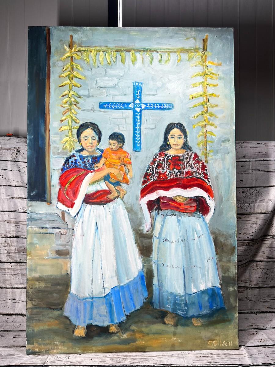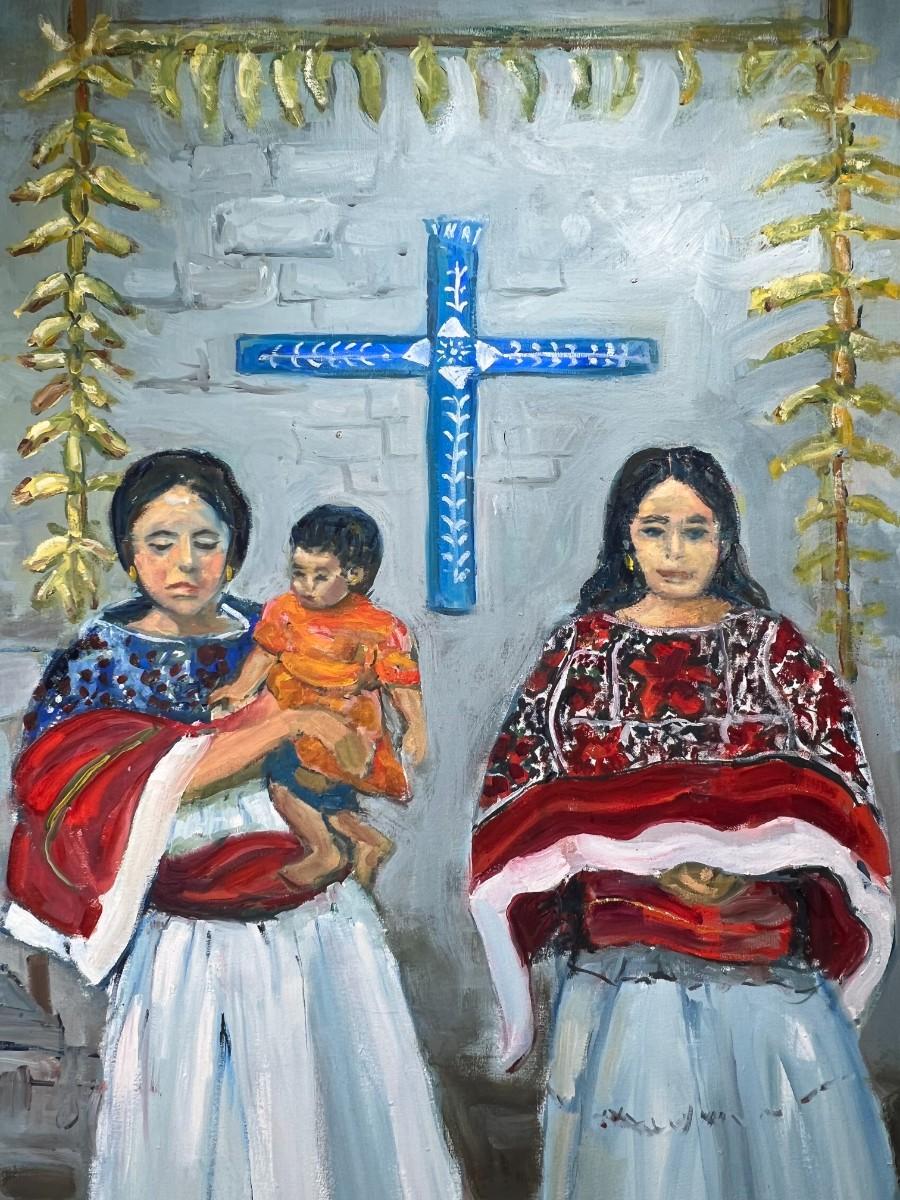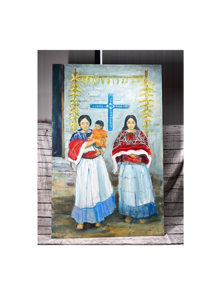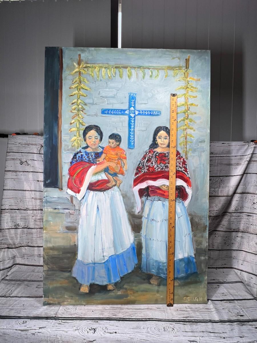 Large Original Oil Painting of Hispanic Indigenous Women with Child