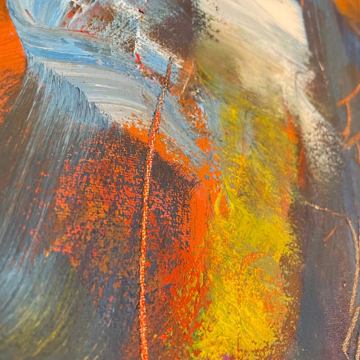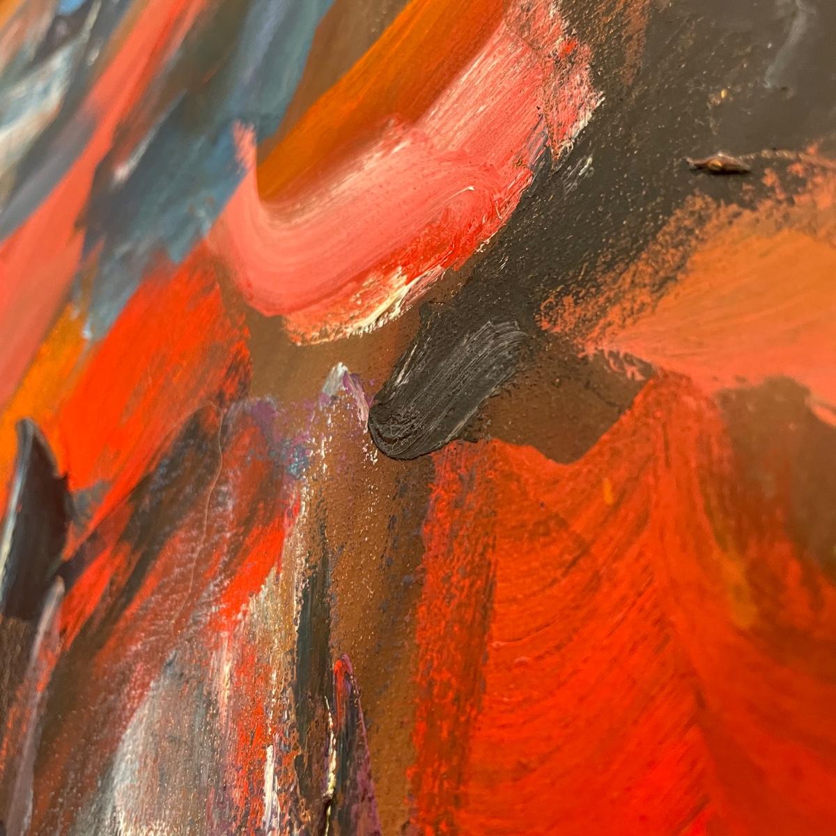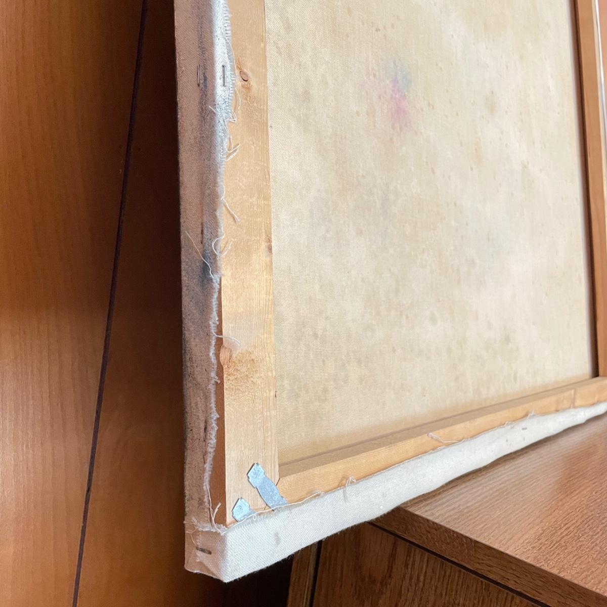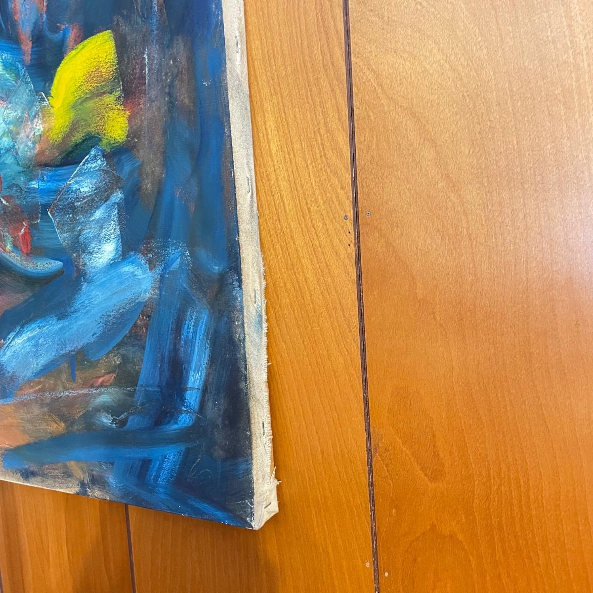 Large colorful original painting on canvas mounted onto wood frame. Piece measures 30” x 35.75”. See images. Shipping available. Shipping art can be costly. We suggest calling our local UPS with dimensions and getting an estimate before bidding: (828) 252-6930.