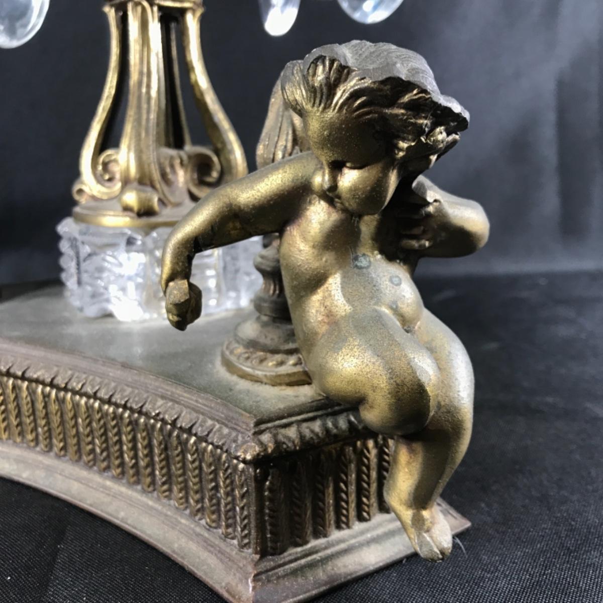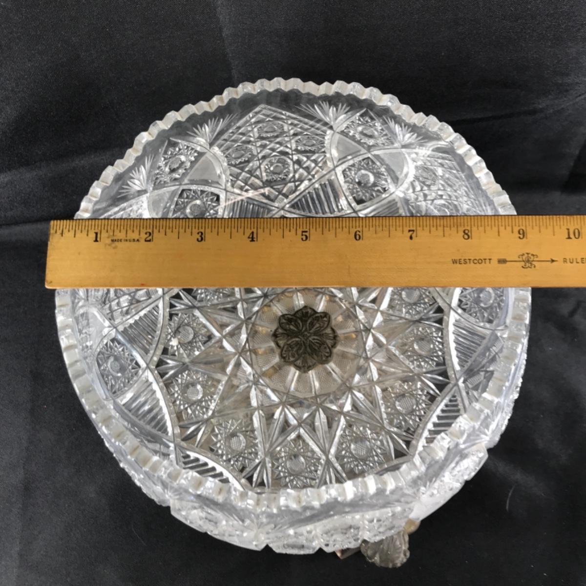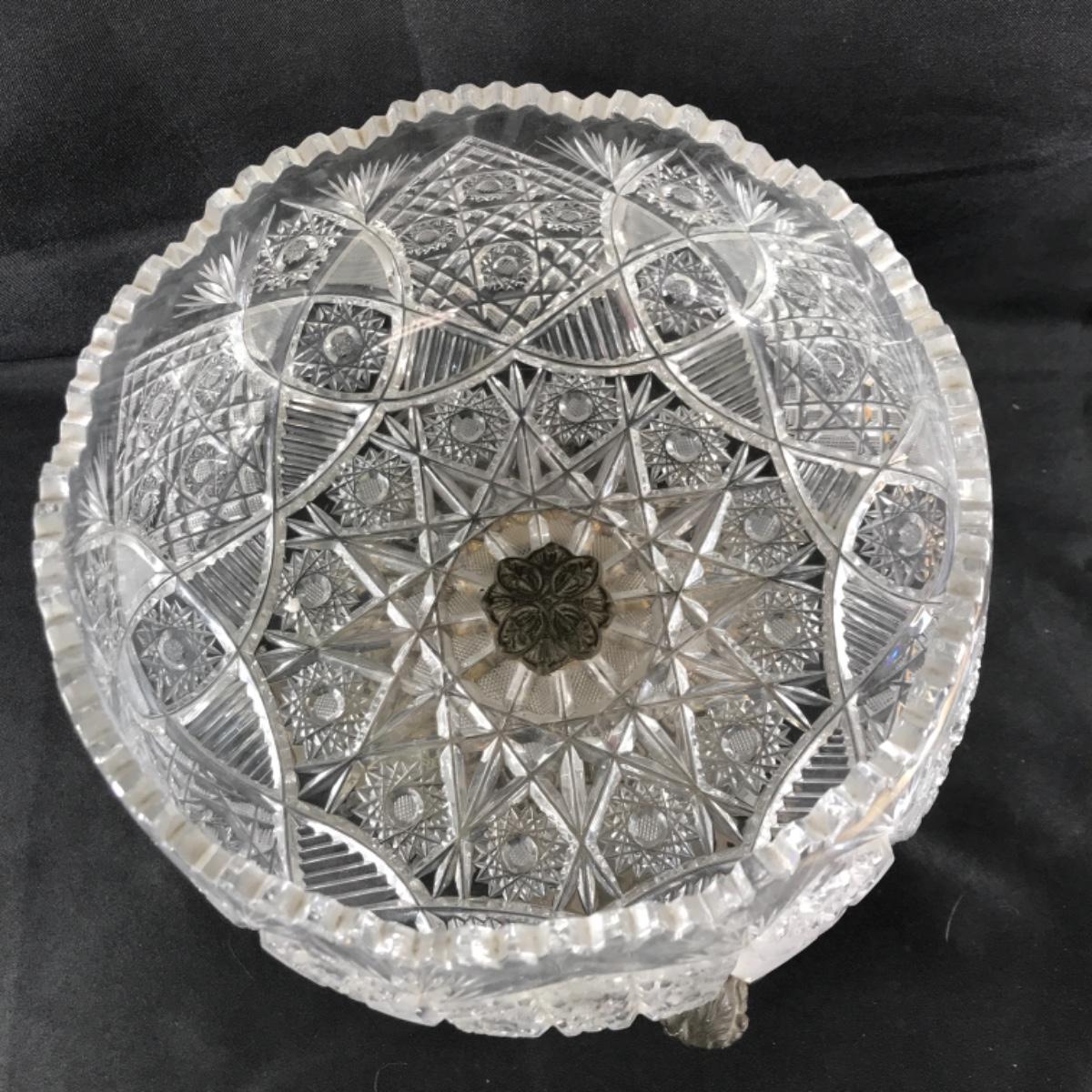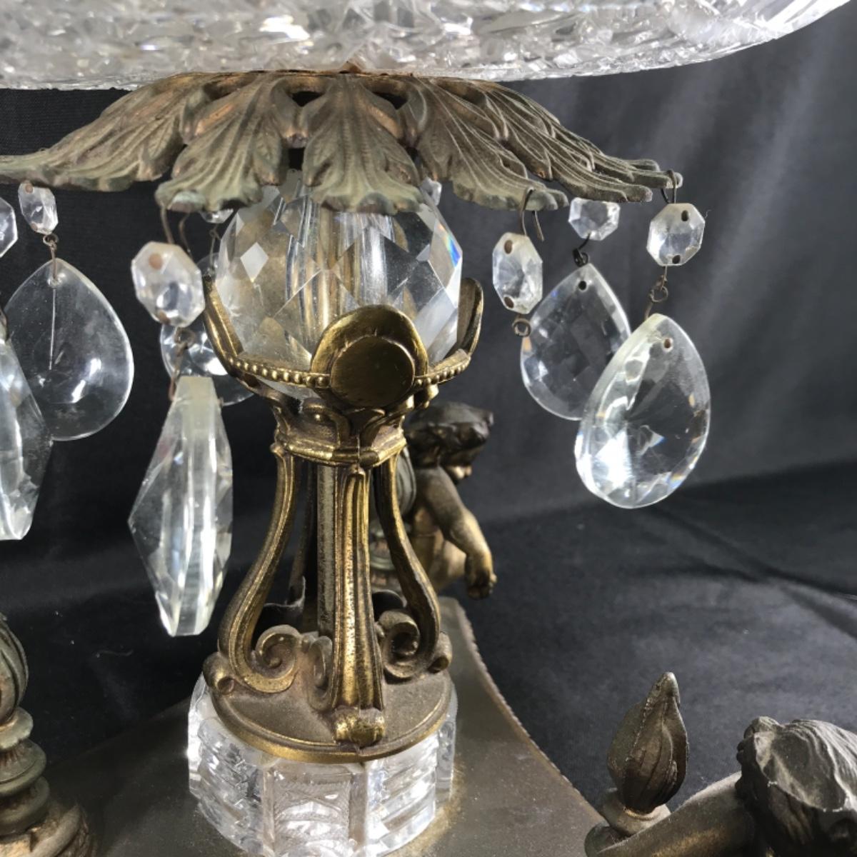 Large Ornate ABP Brass Cherub Pedestal Cut Crystal Bowl