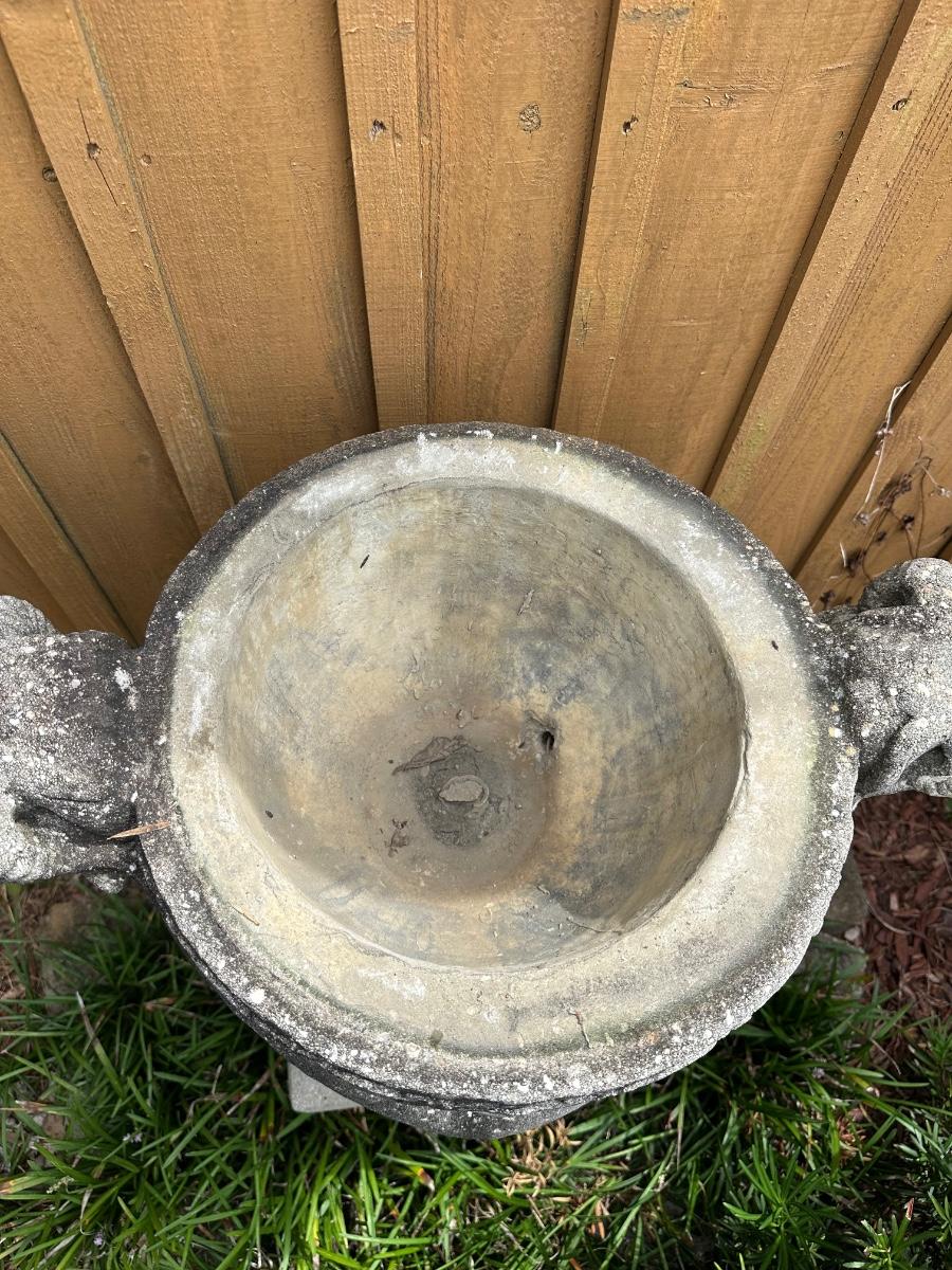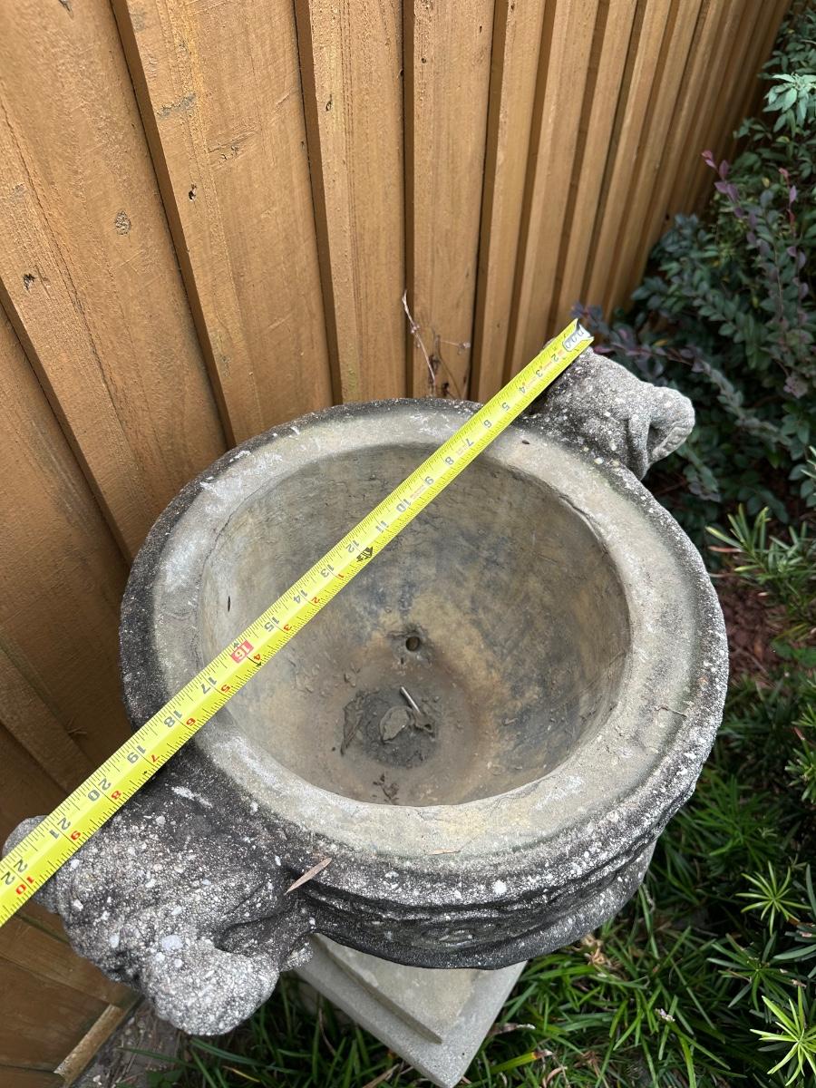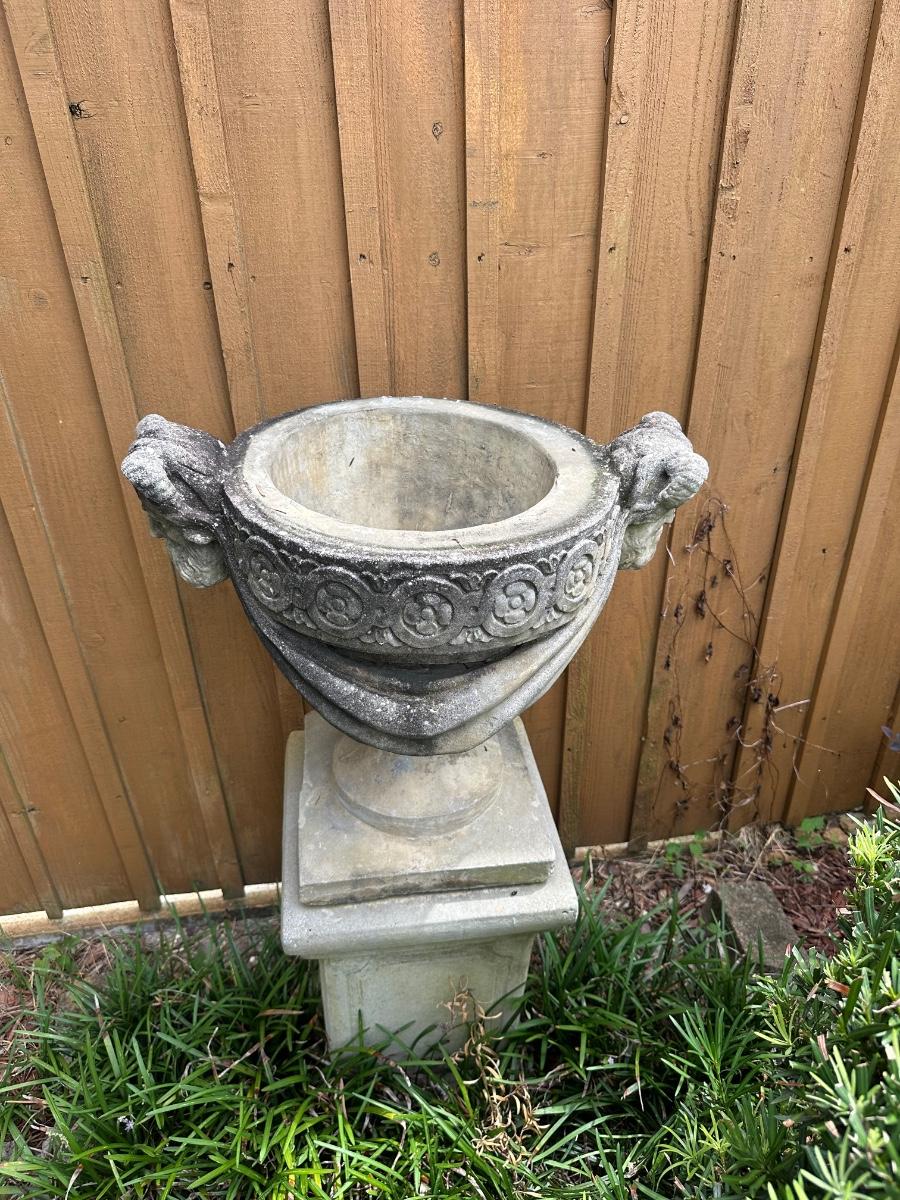 Large Ornate Vintage Concrete Garden Urn on Pedestal with Removable