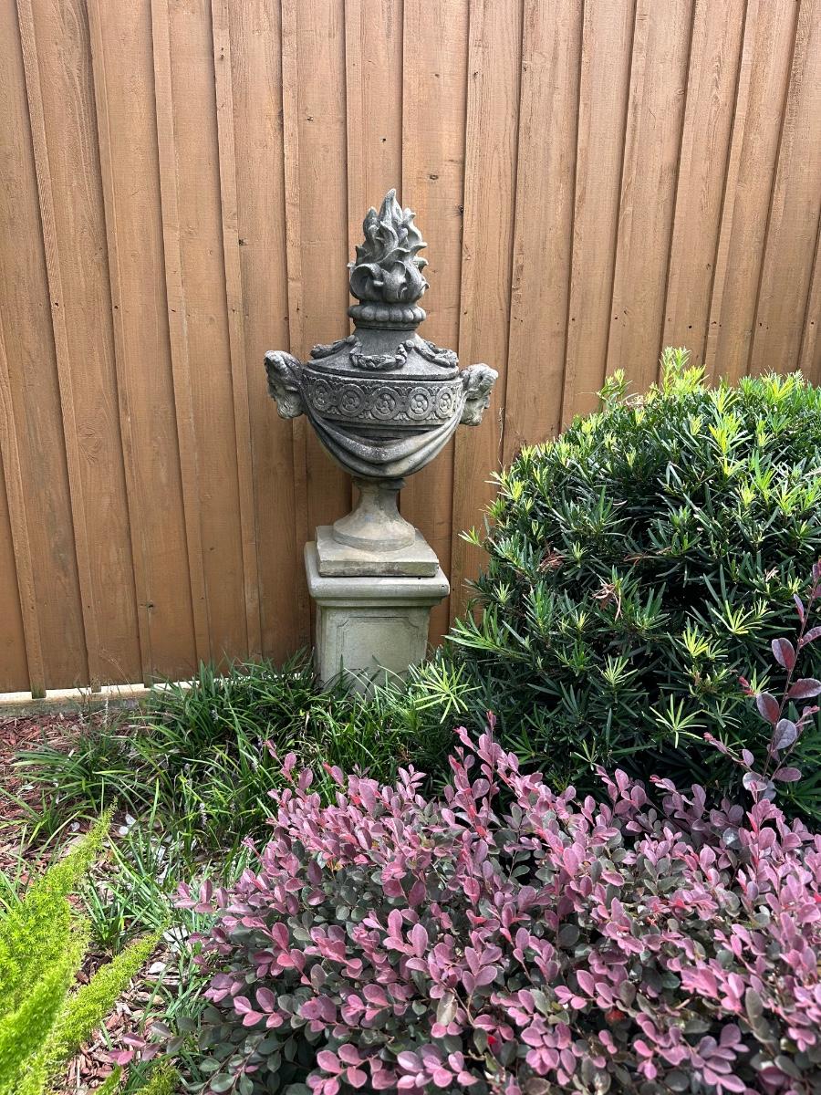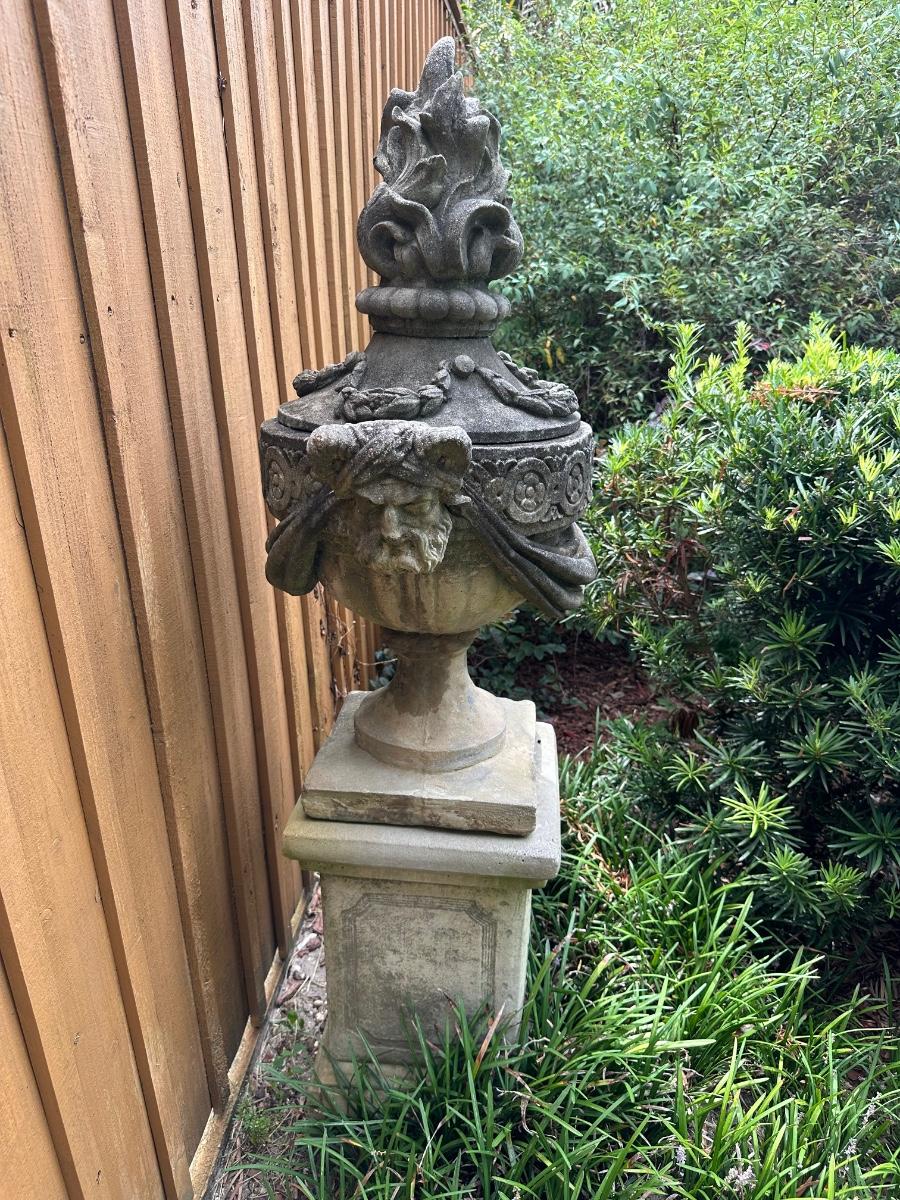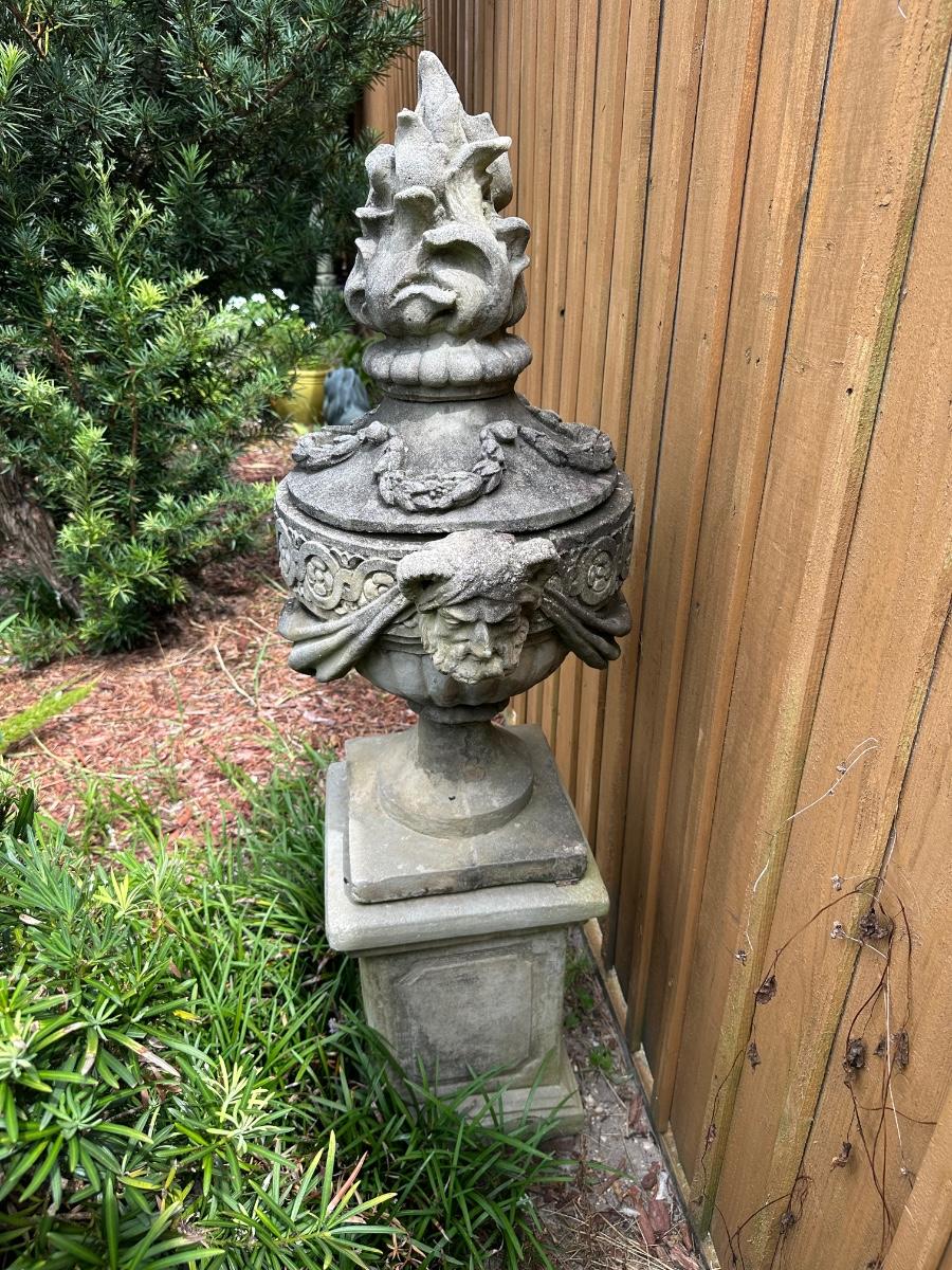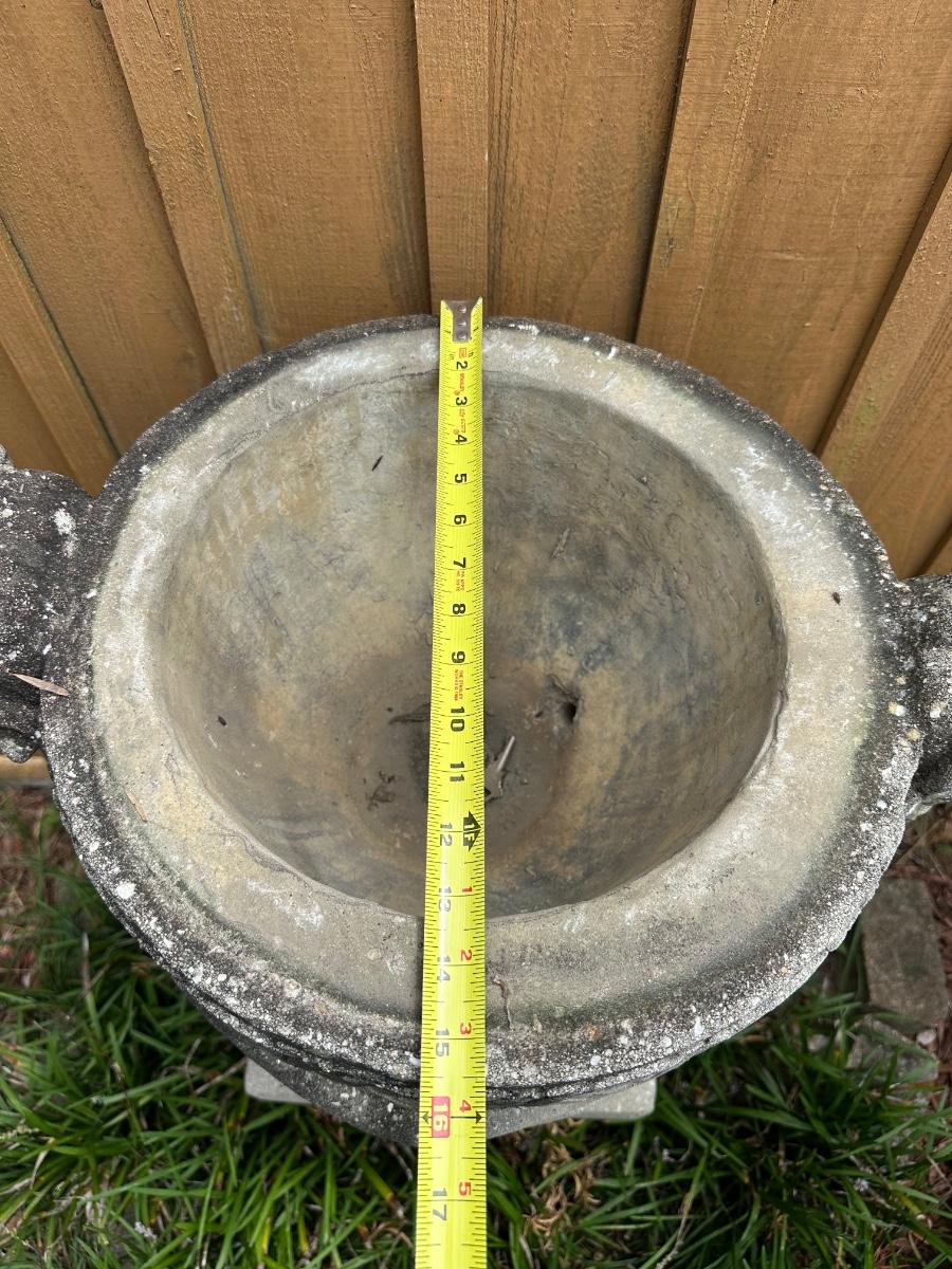 Large Ornate Vintage Concrete Garden Urn on Pedestal with Removable