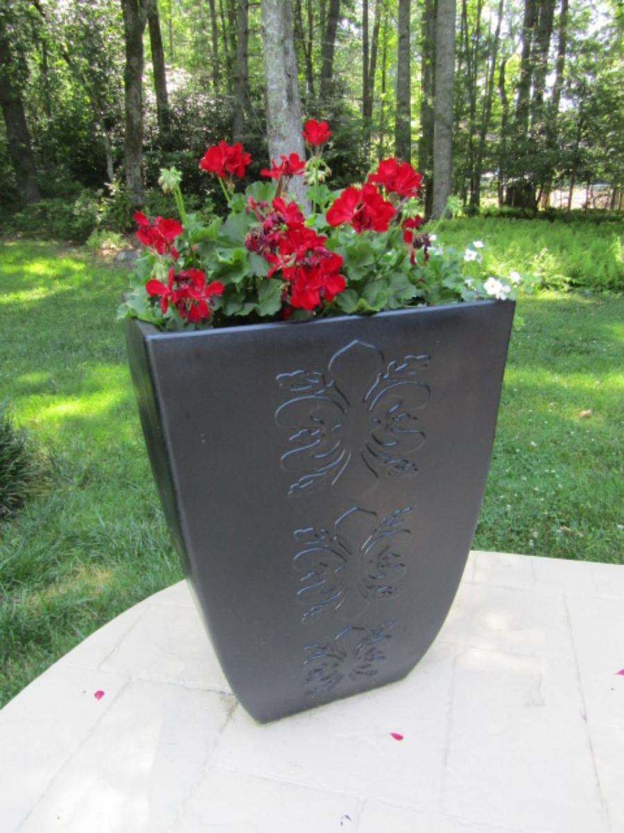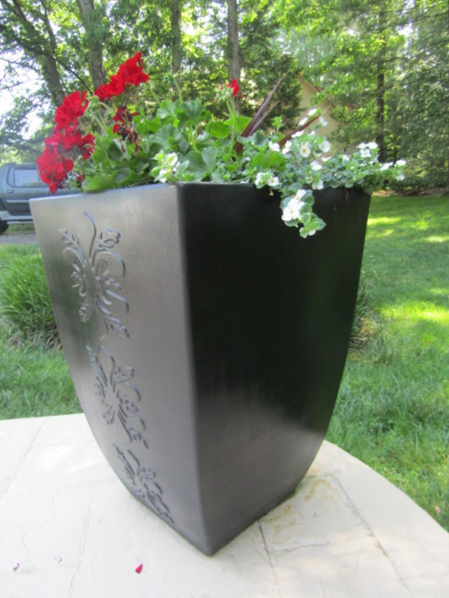 Large Outdoor Plastic Planter with Live Plants- Approx 28" Tall