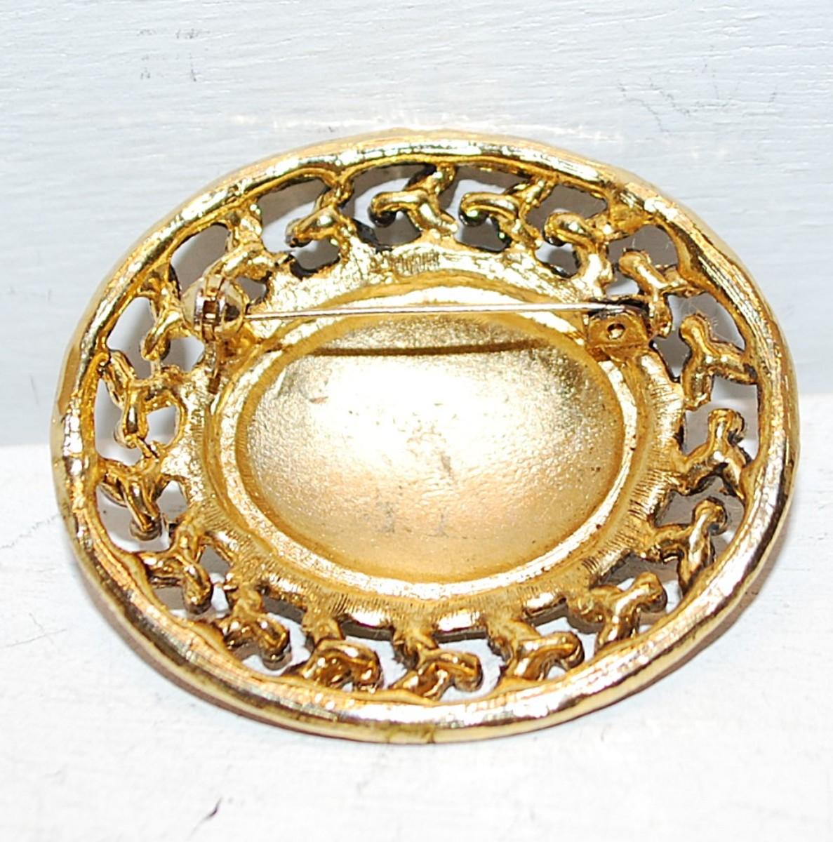 Large Oval BLACK Oval Shaped Stone BROOCH (2' x 1¾") on Heavy Gold Tone Mounting