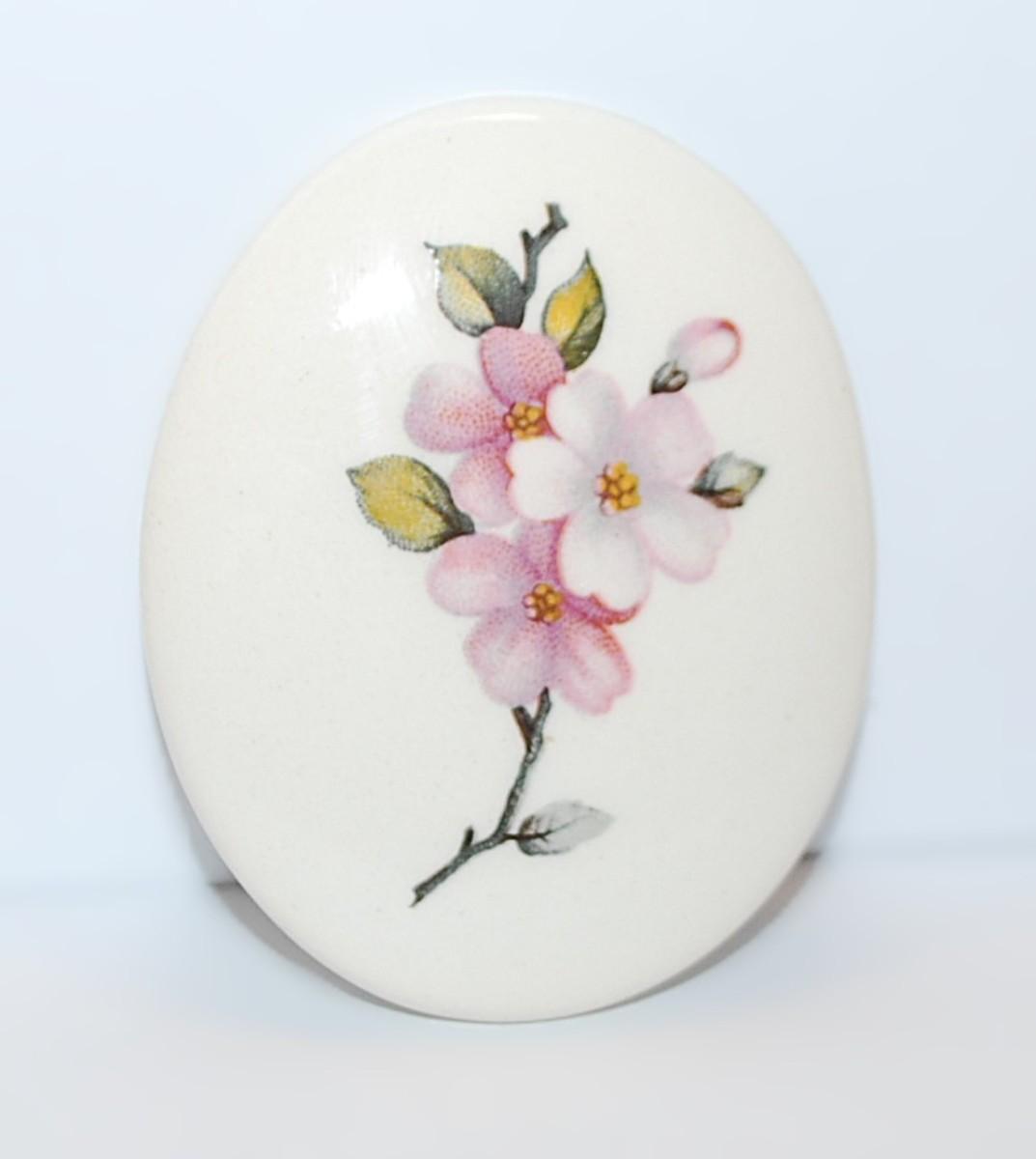 Large Oval Pink Flowers BROOCH (2¼" x 2") in Ceramic Style and Silver Tone Pin