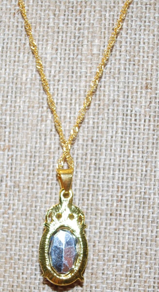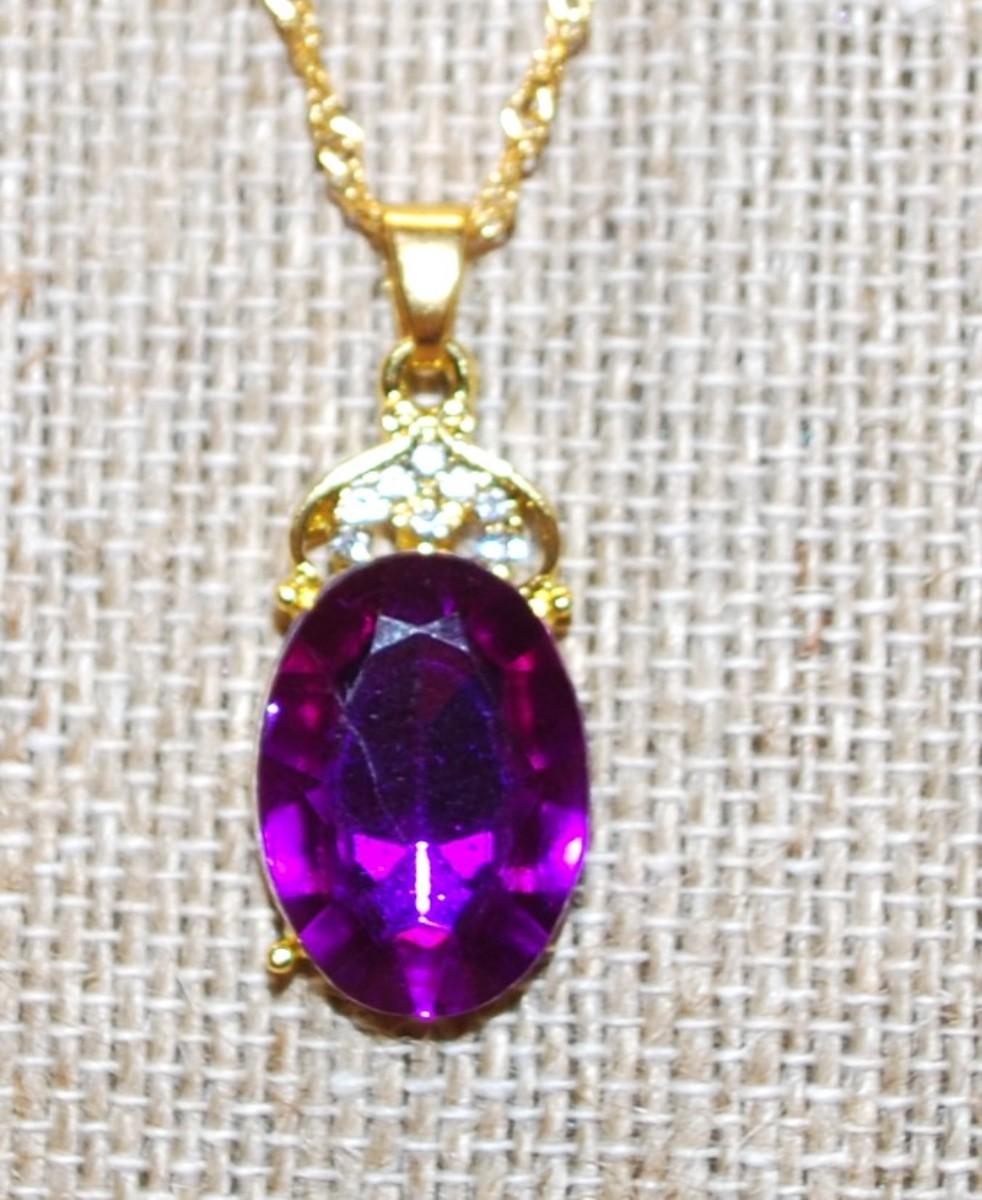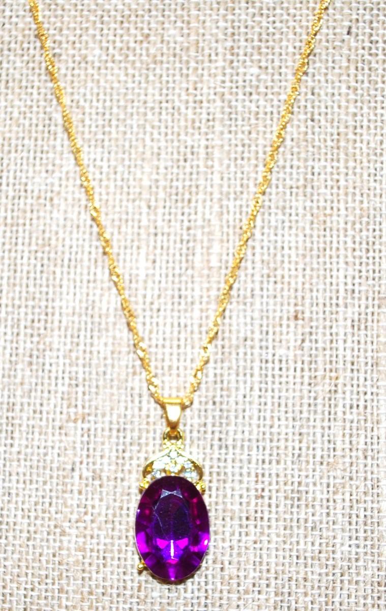Large Oval Purple Stone with a Top Crown Accent w/Clear Stones PENDANT (1 ¼" x ½") with Gold Chain Necklace 18" L