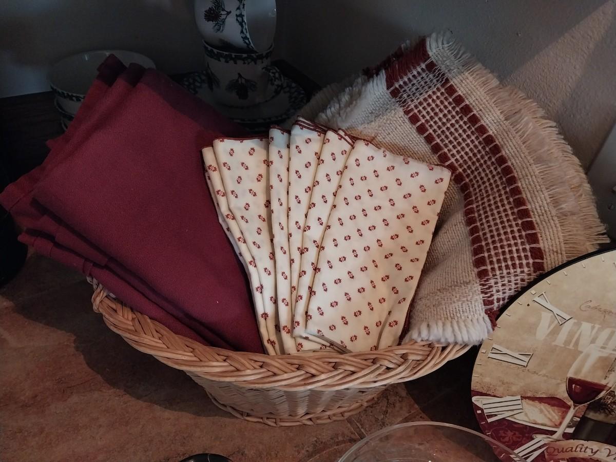 LARGE OVAL TABLECLOTH, 6 LINEN NAPKINS, 6 PLACEMATS AND MORE