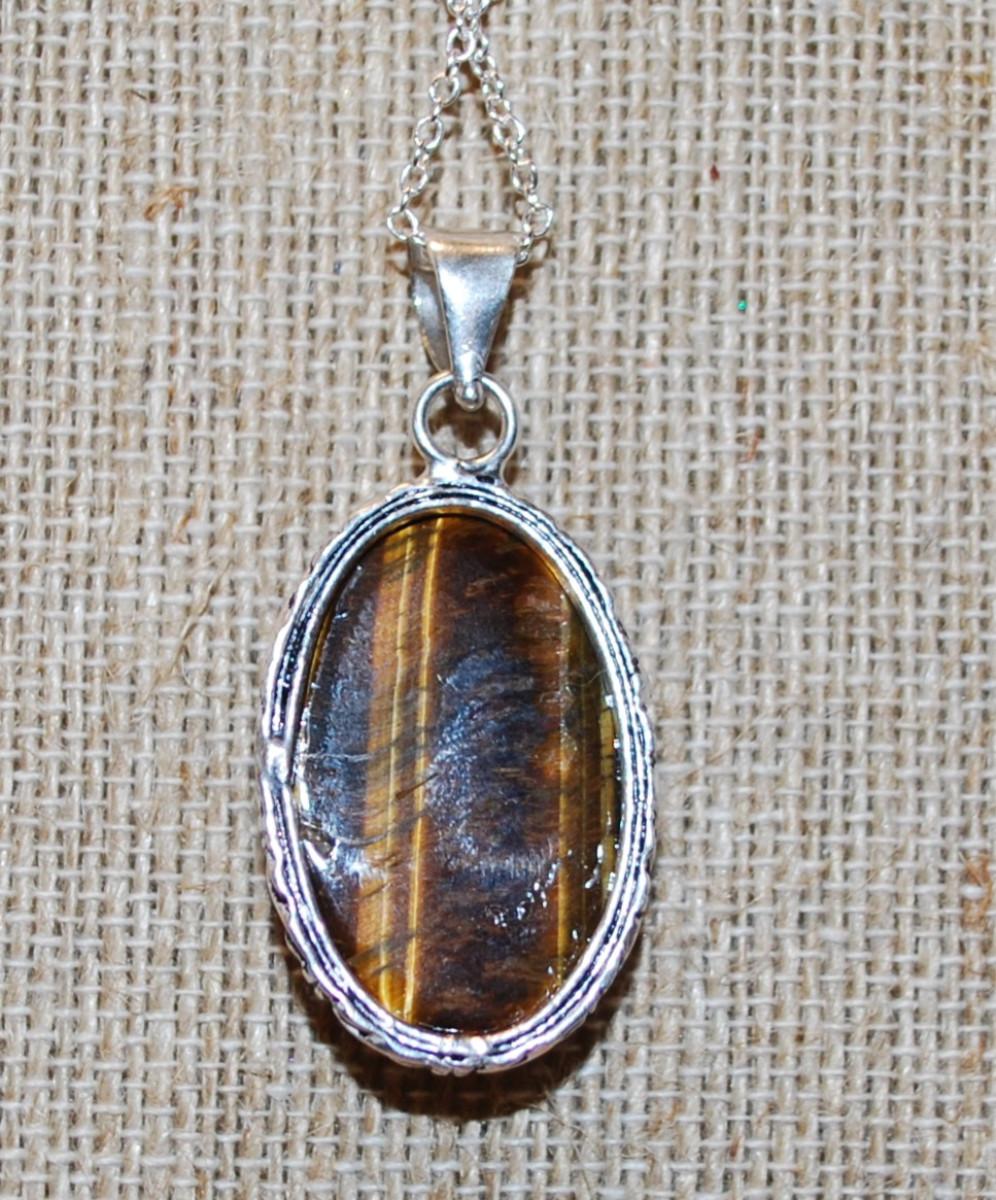 Large Oval Tiger Eye PENDANT (2" x 1") on an Adjustable Necklace Chain 14"-18" L