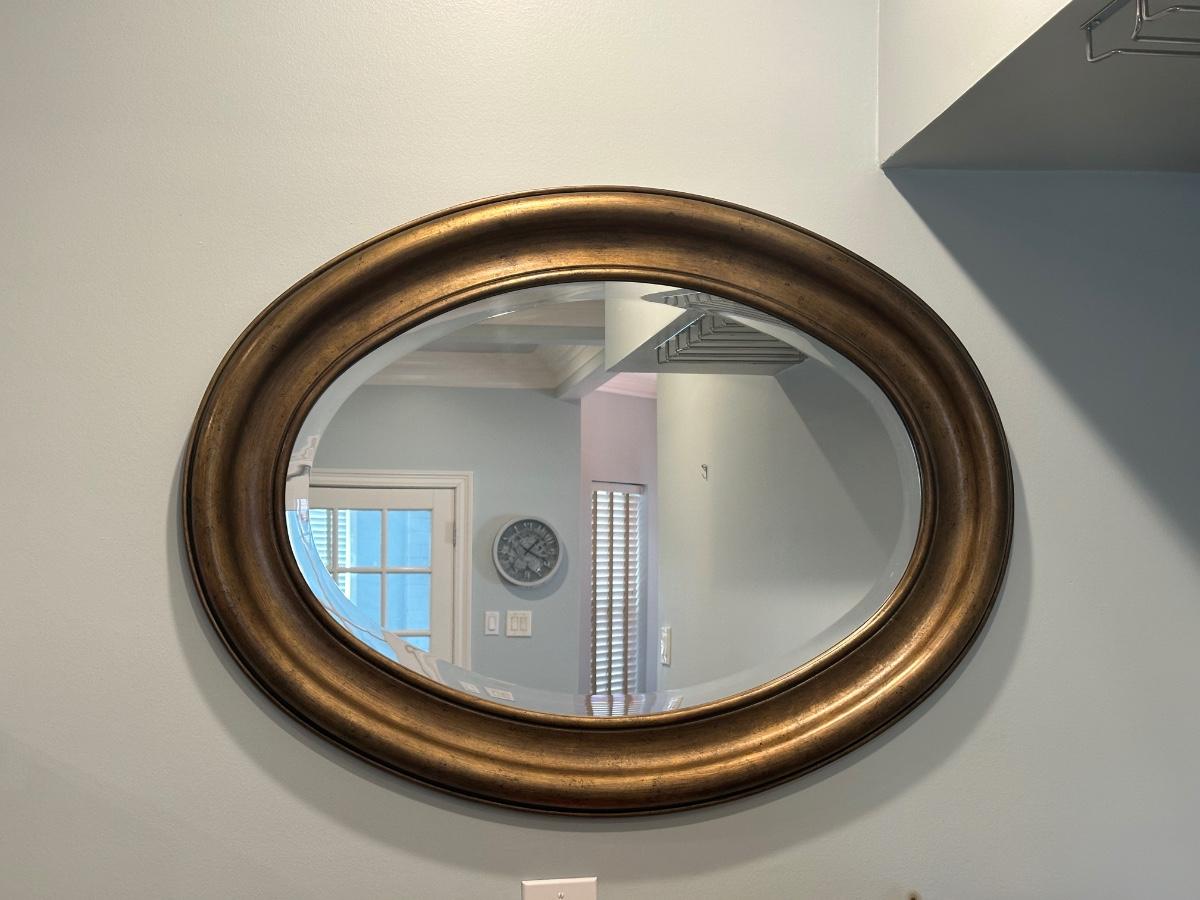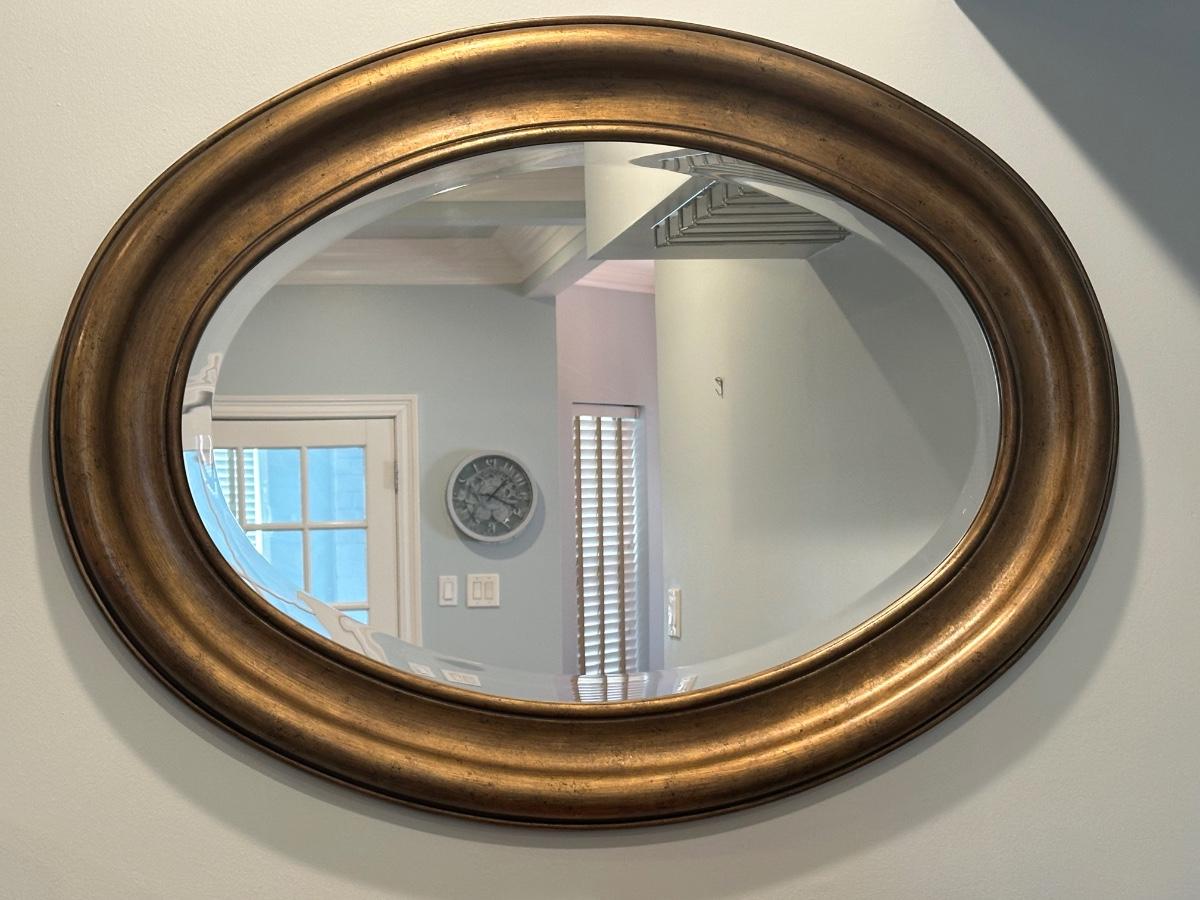 Large Oval Wall Mirror with Bronze-Tone Frame