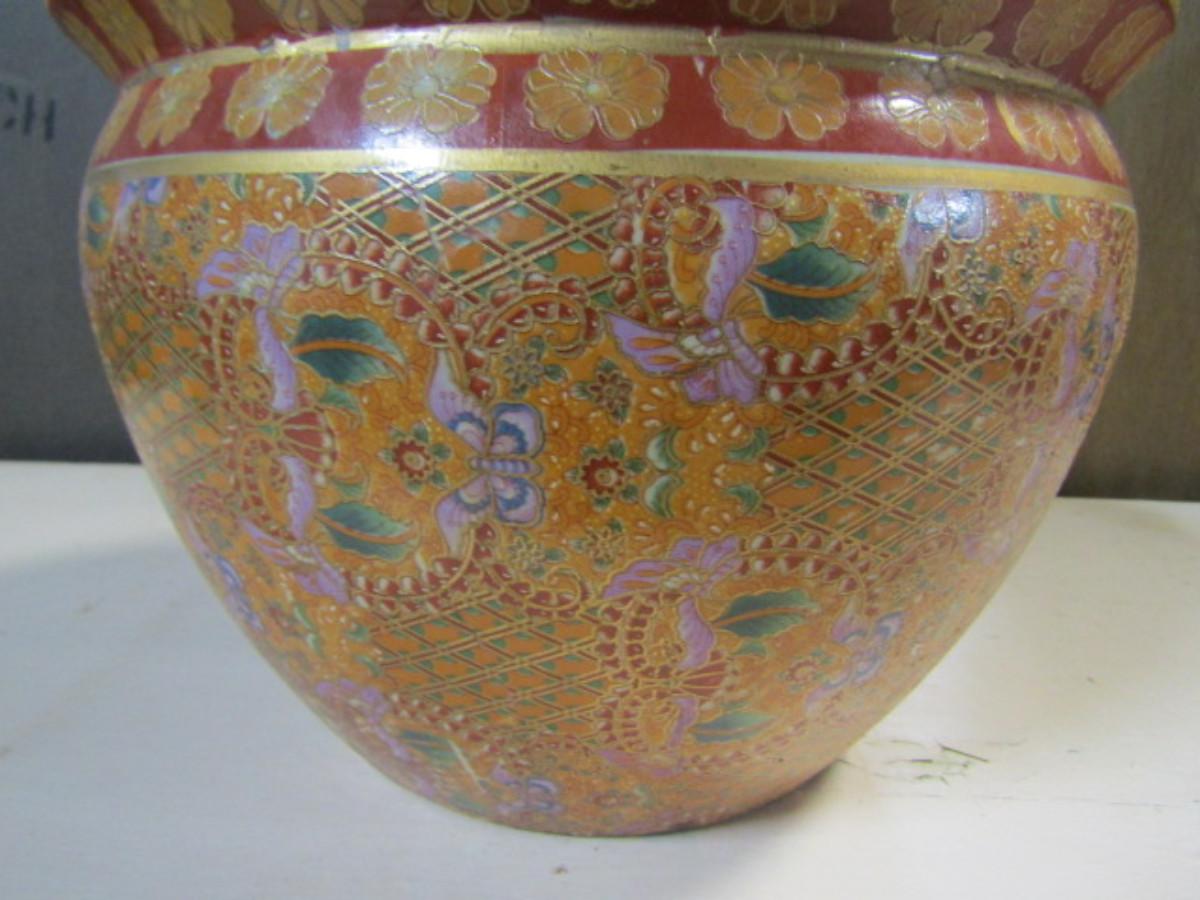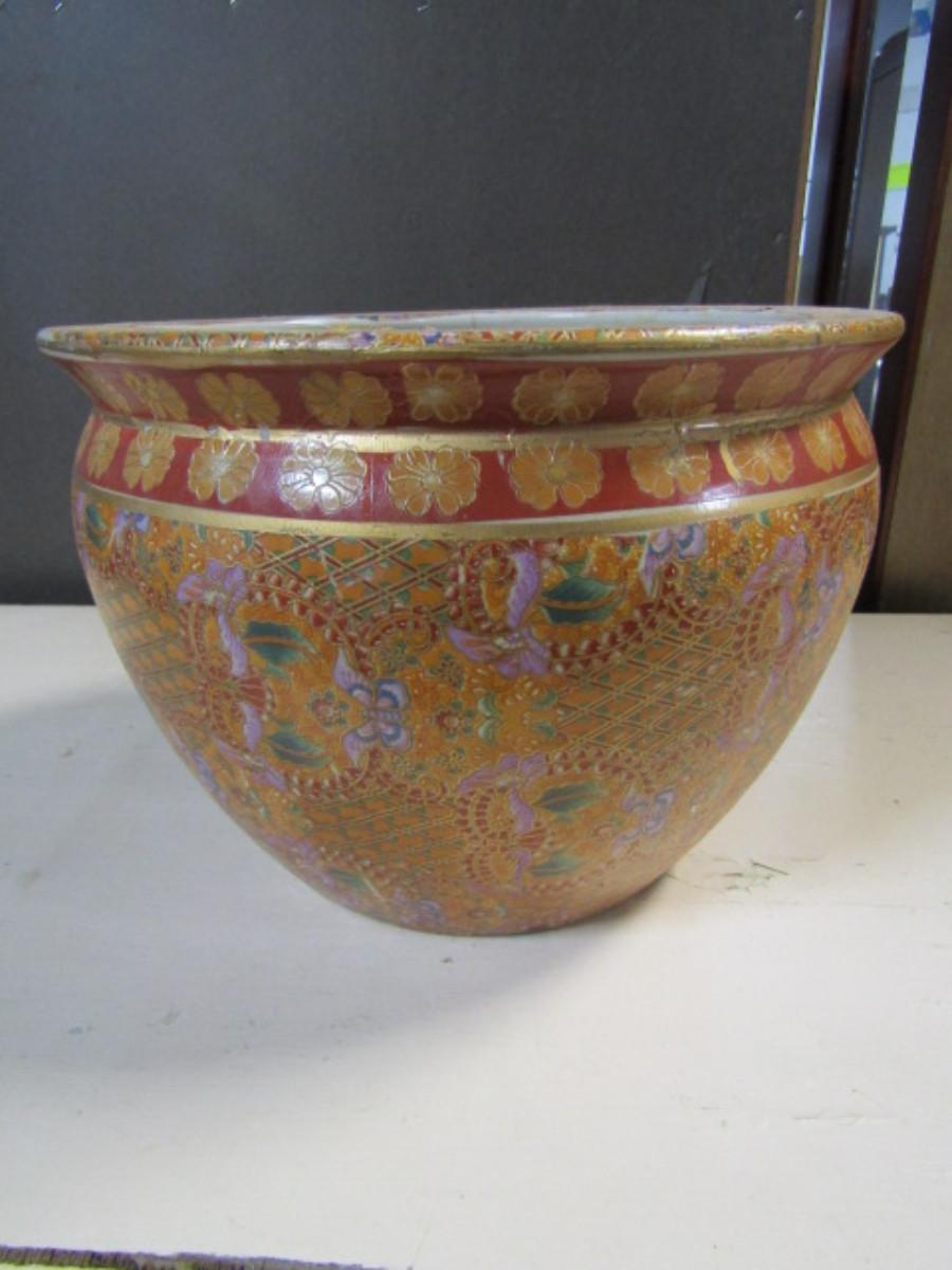 Large Painted Flower Pot- Butterfly Theme- Approx 10 1/2" Across