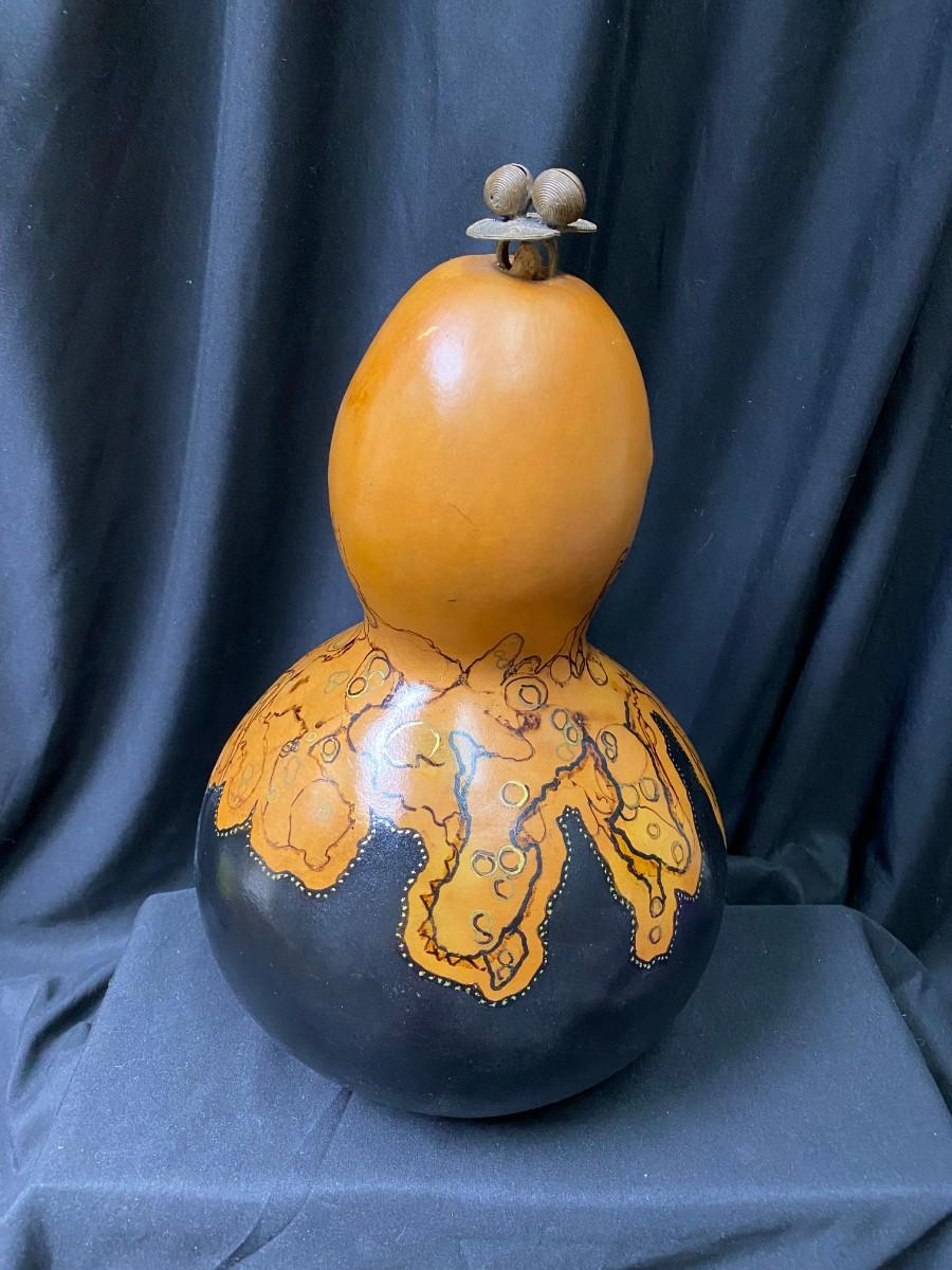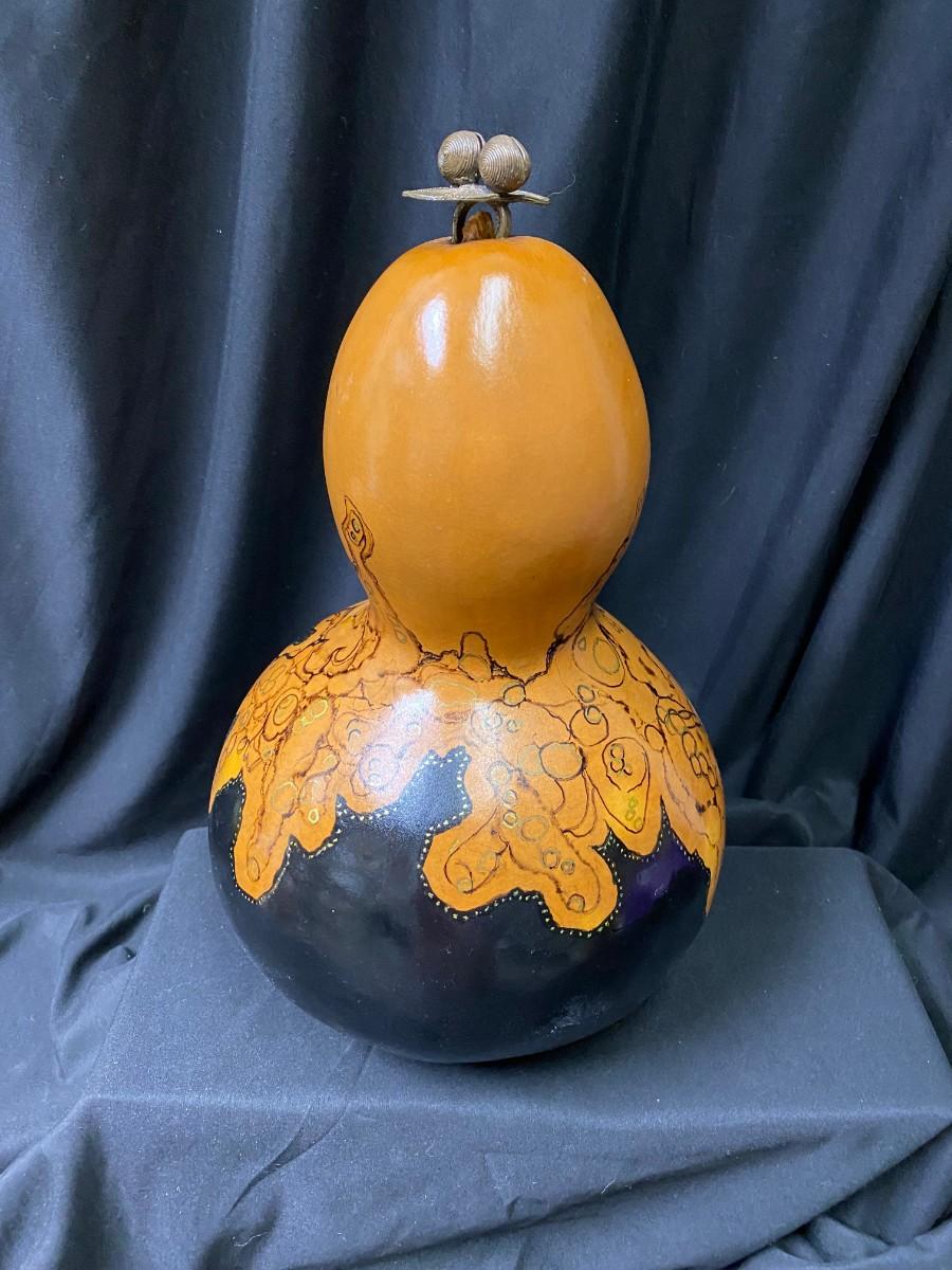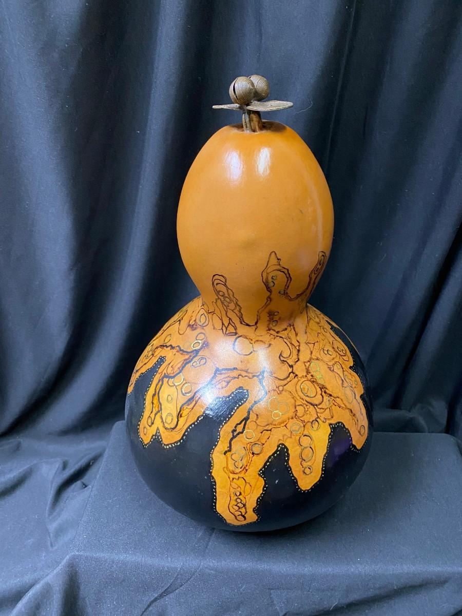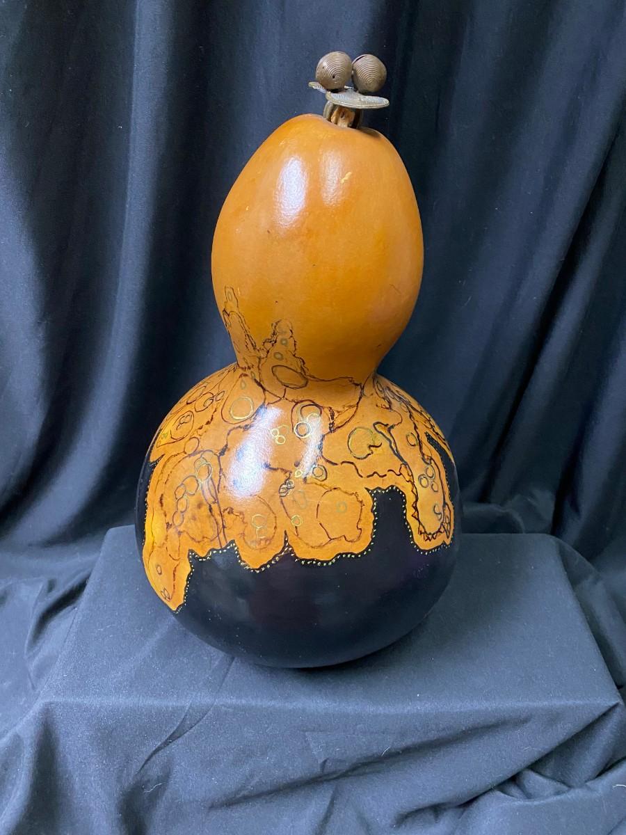 Brown tones with gold accents. Bell accent on top. Signed and Dated. Very good condition.